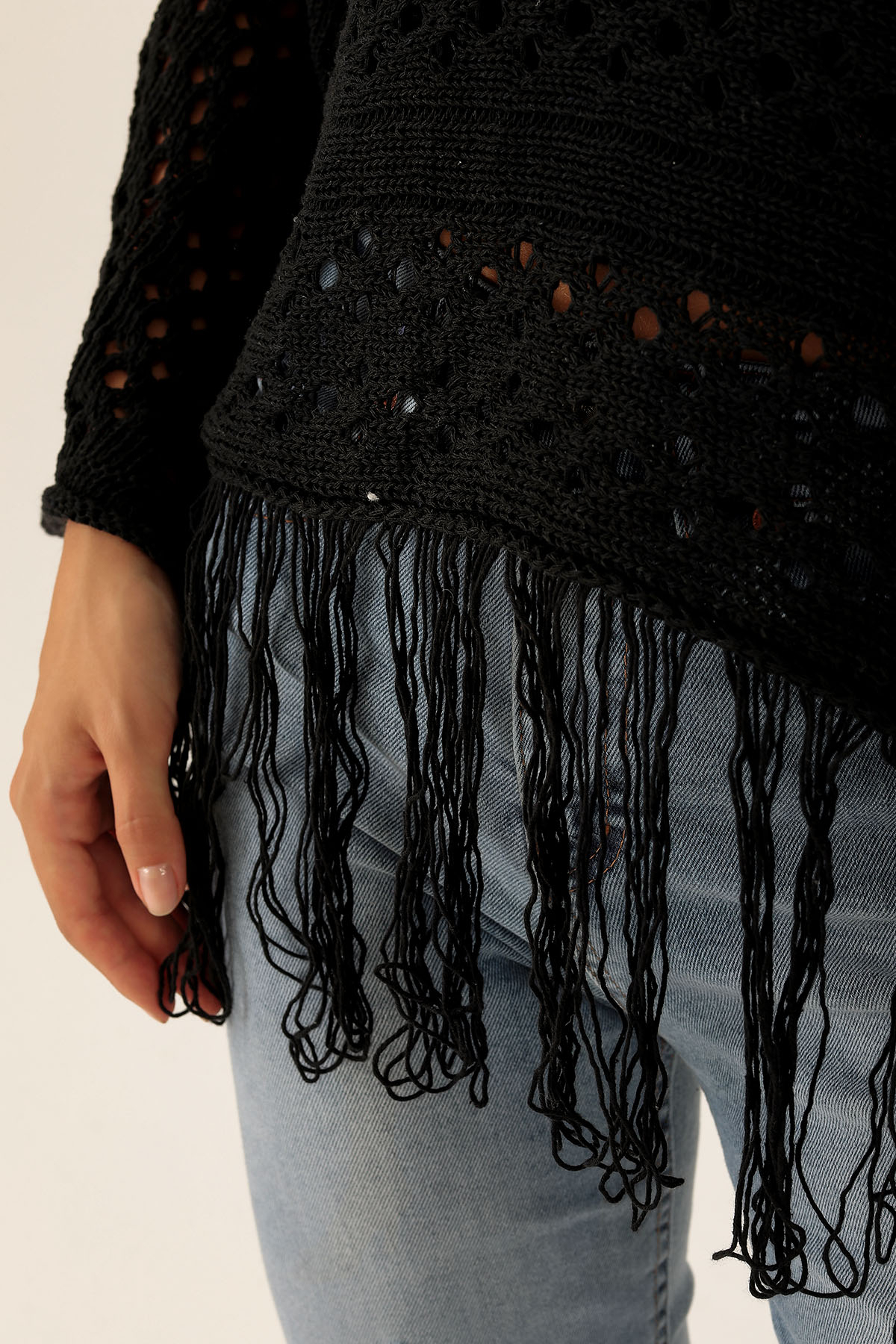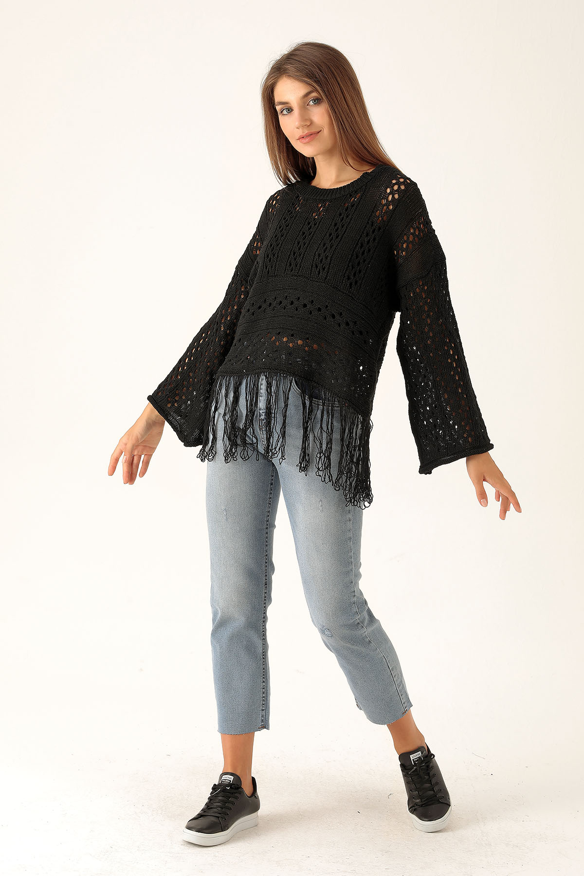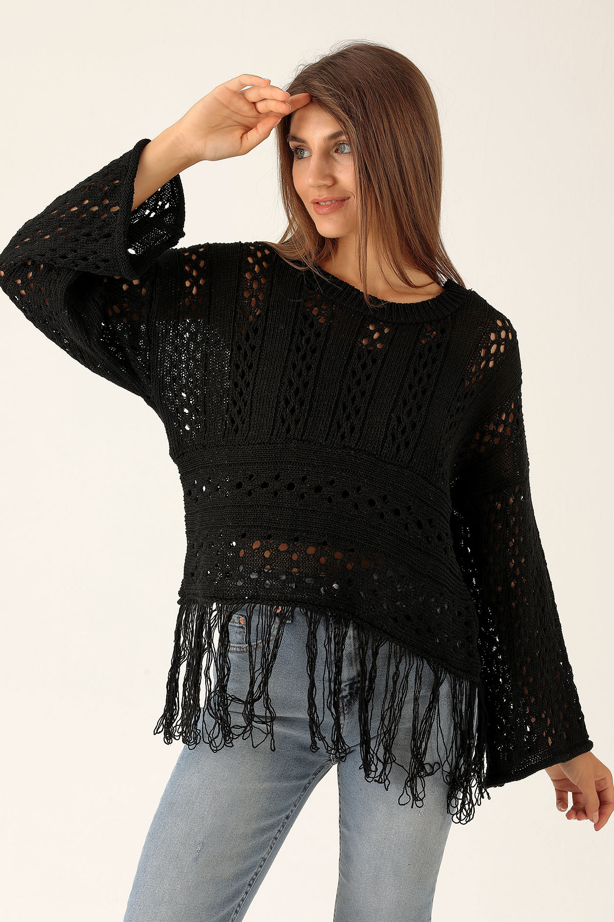 Püskül Detaylı Bayan Kazak - 1527 Siyah