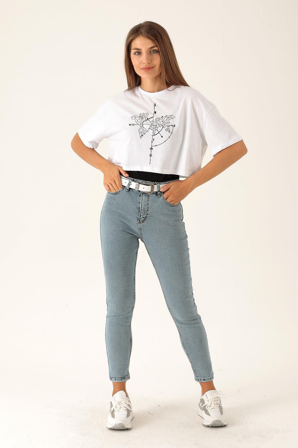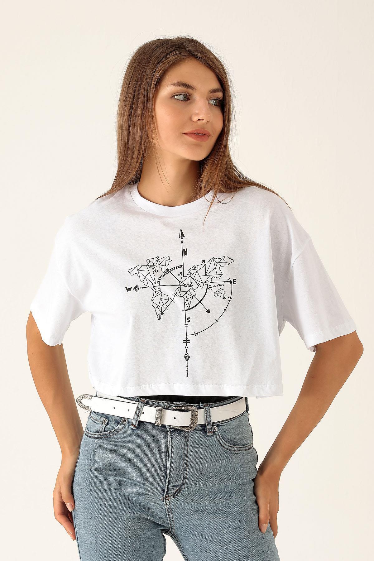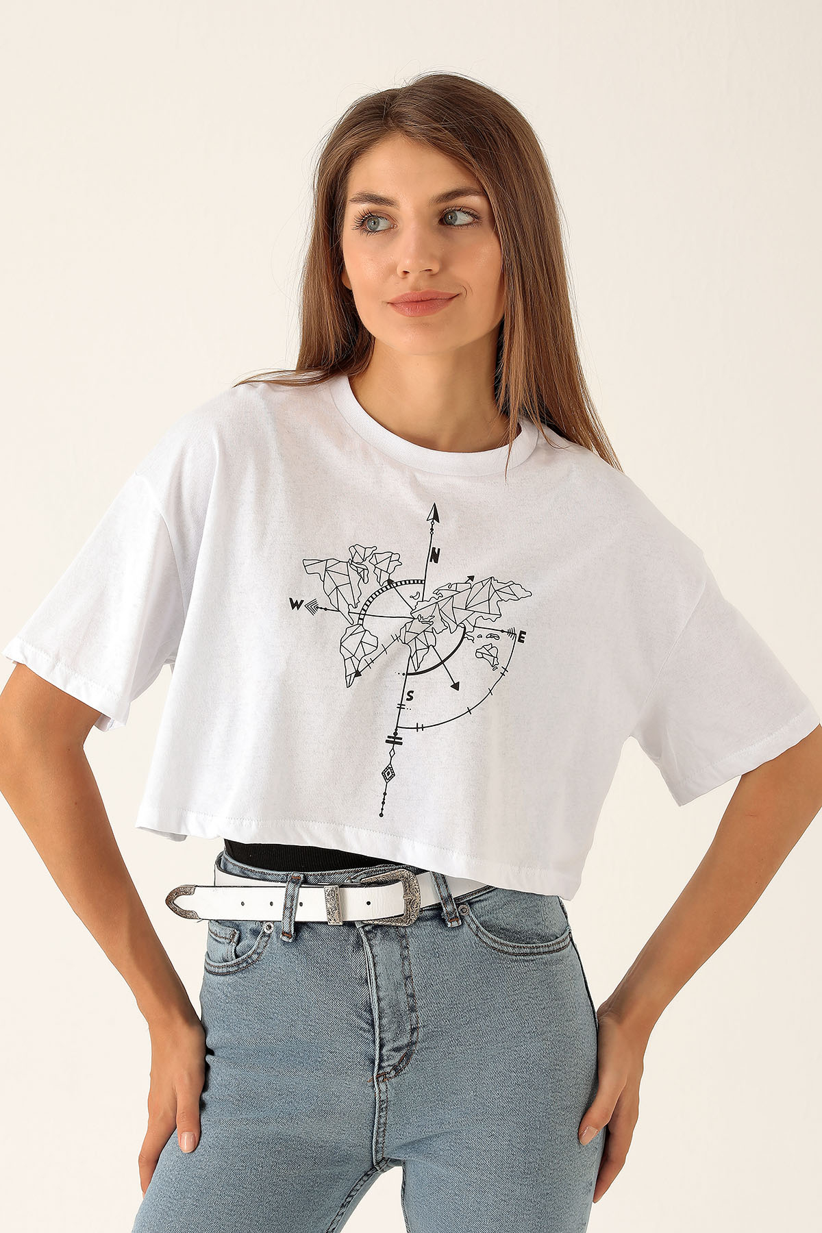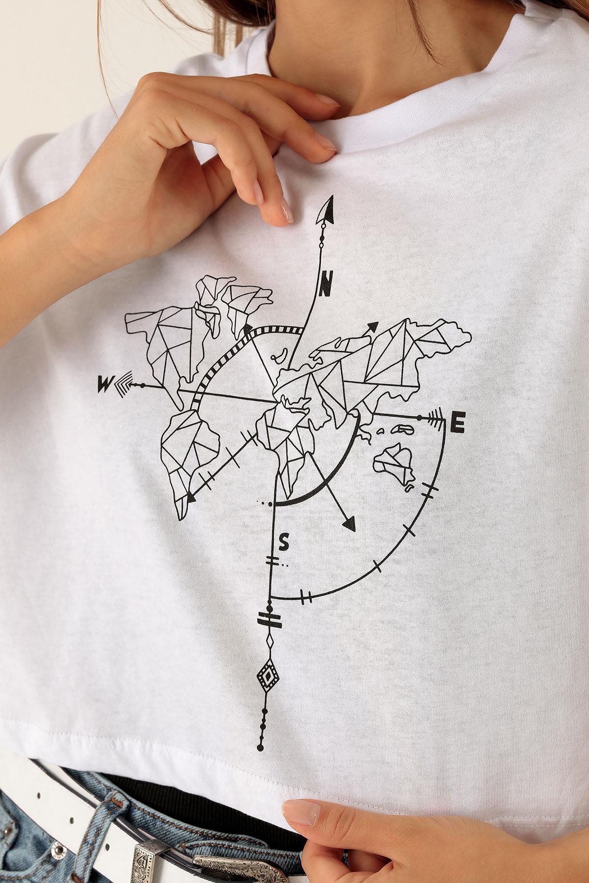 Pusula Baskı Bayan Atletli Tişört - 9360 Beyaz