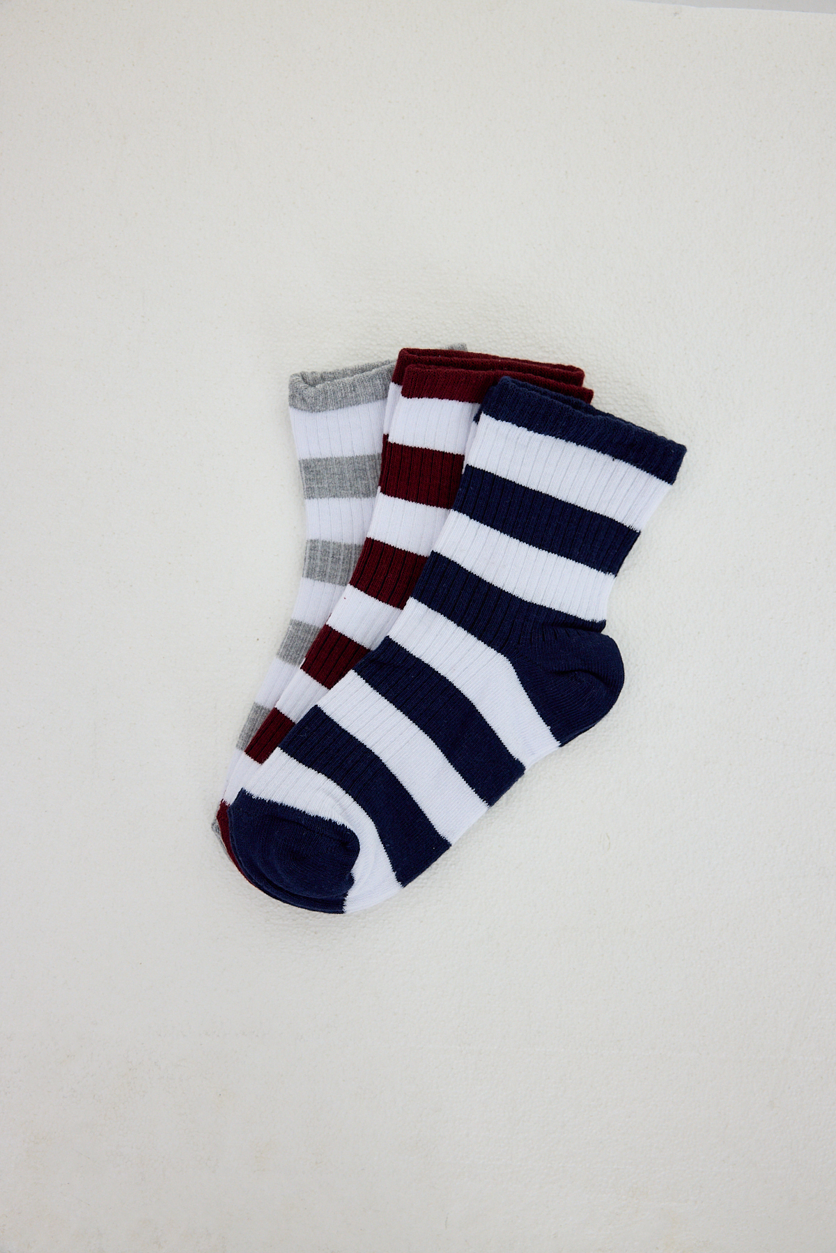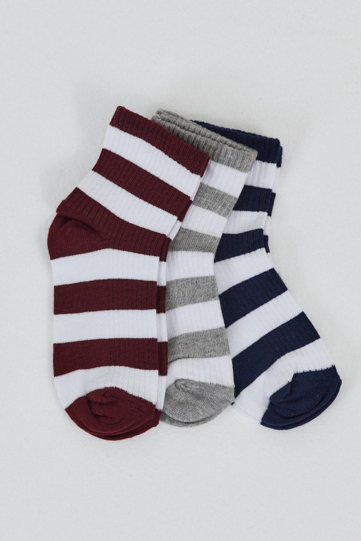 Renkli 3'lü Çizgili Örme Soket Çorap 1022