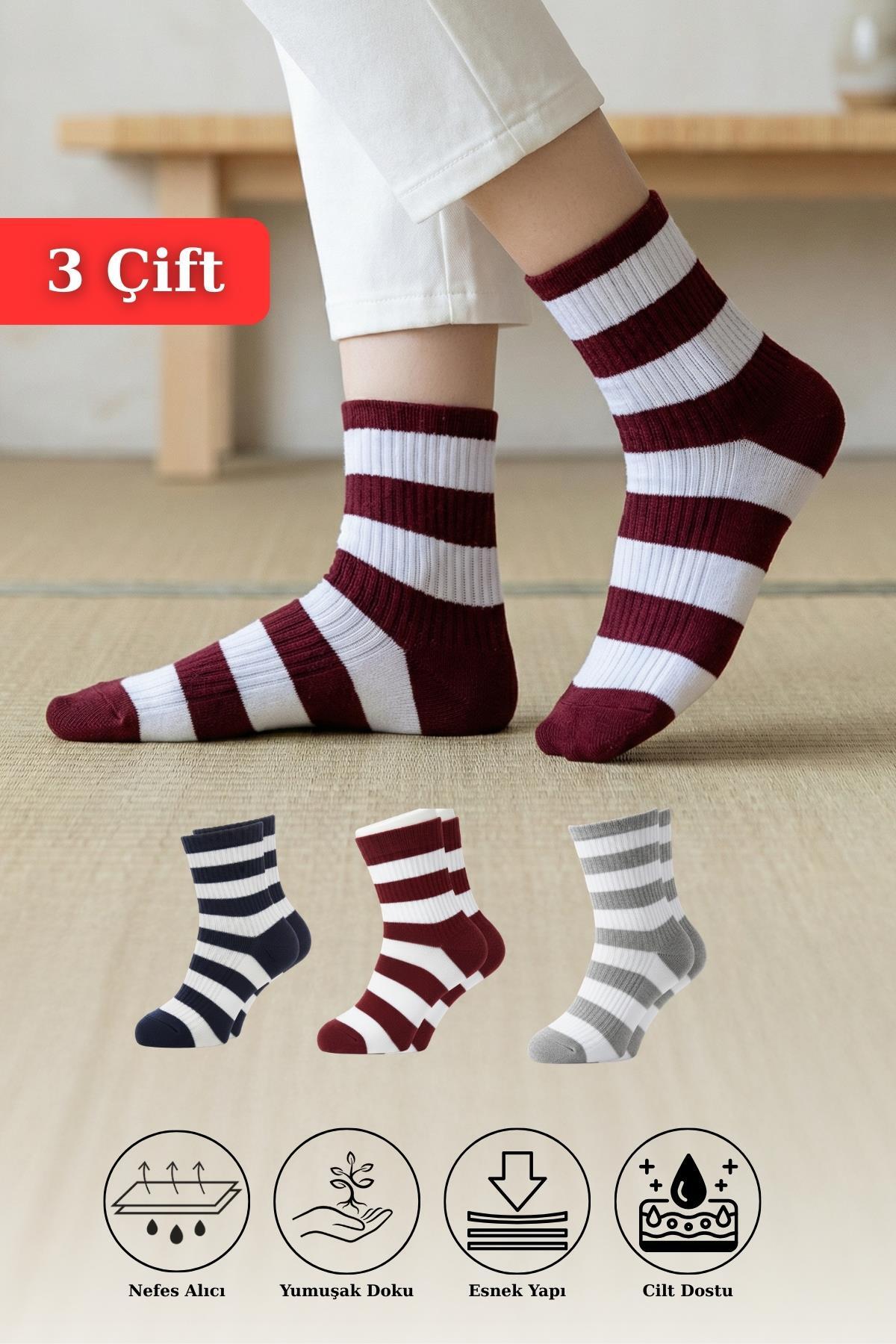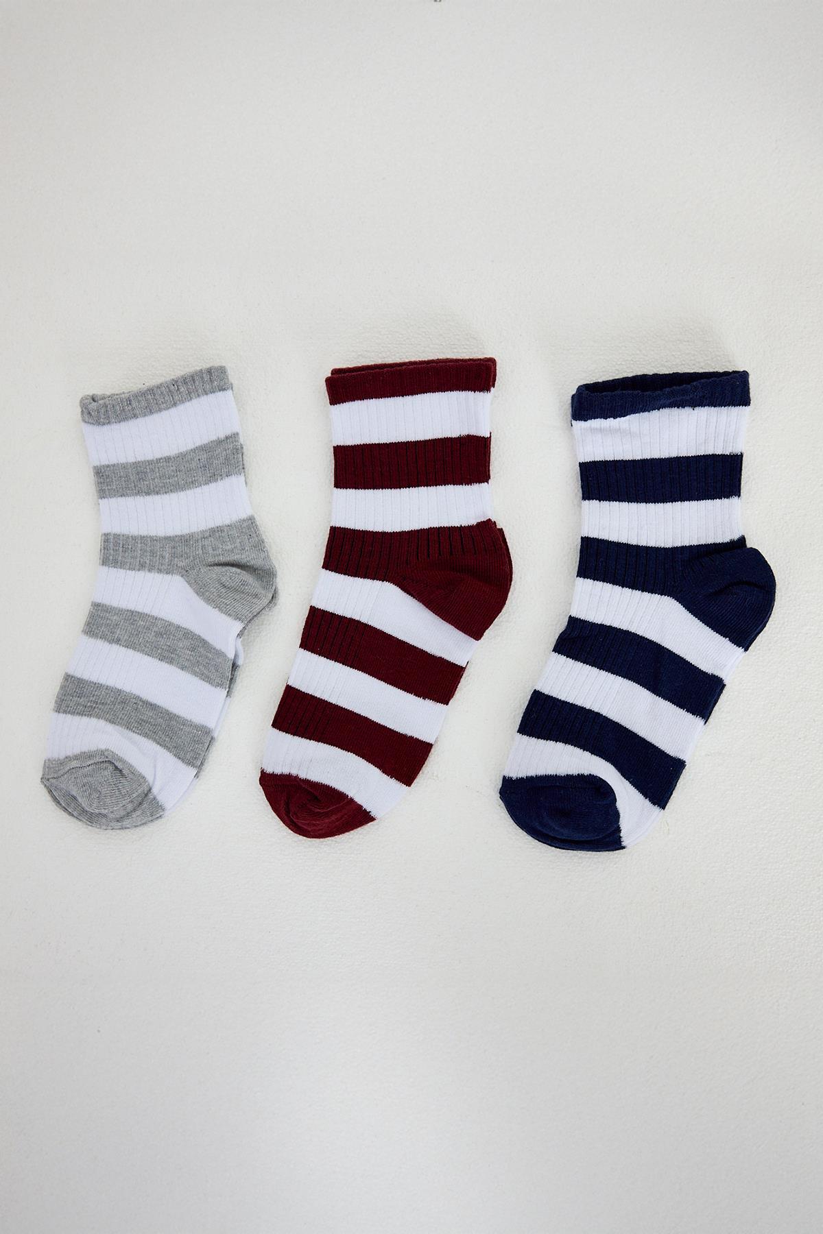 Renkli 3'lü Çizgili Soket Çorap 1022