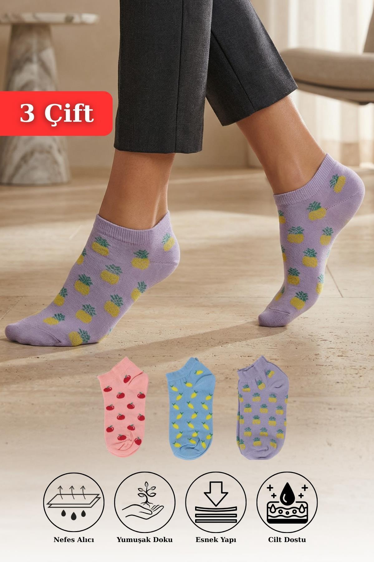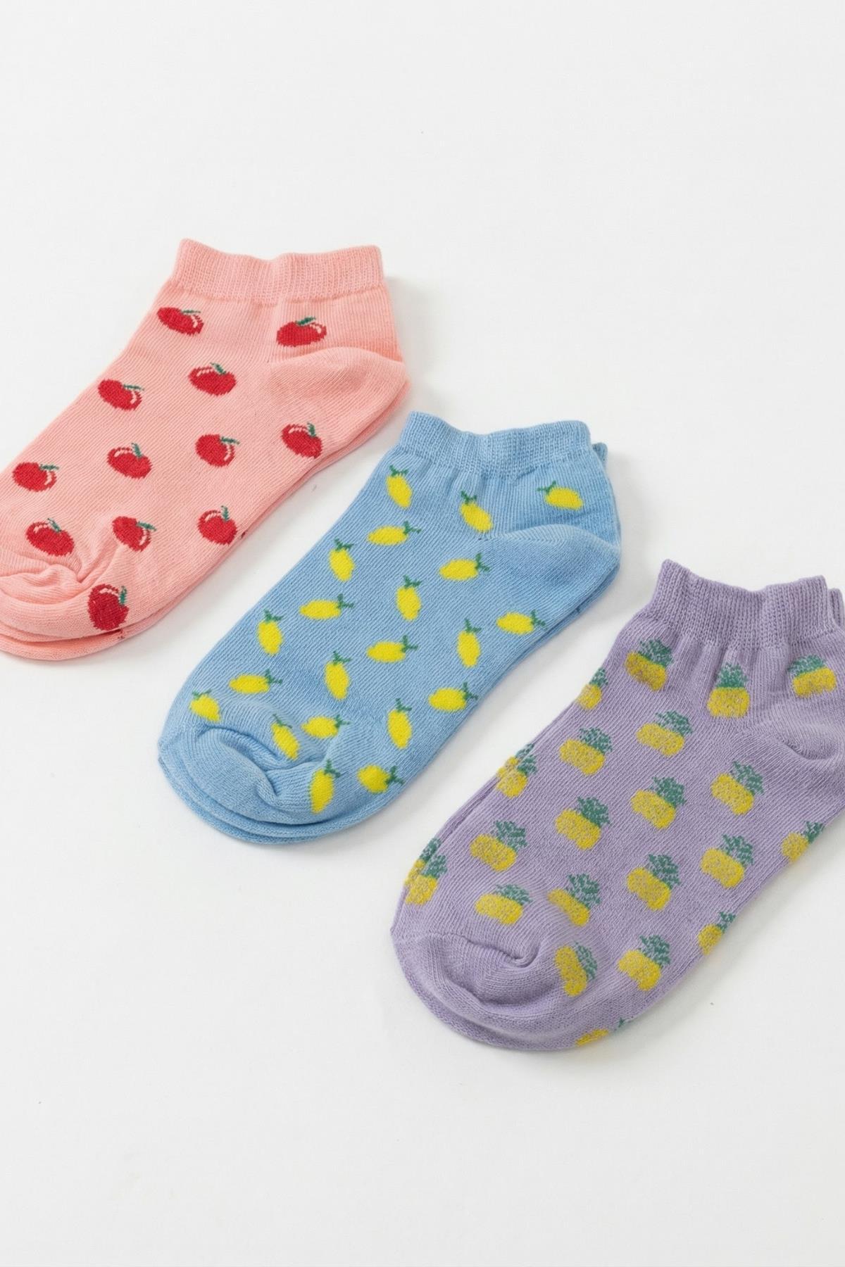 Renkli 3'lü Meyve Desenli Örme Patik Çorap 1117