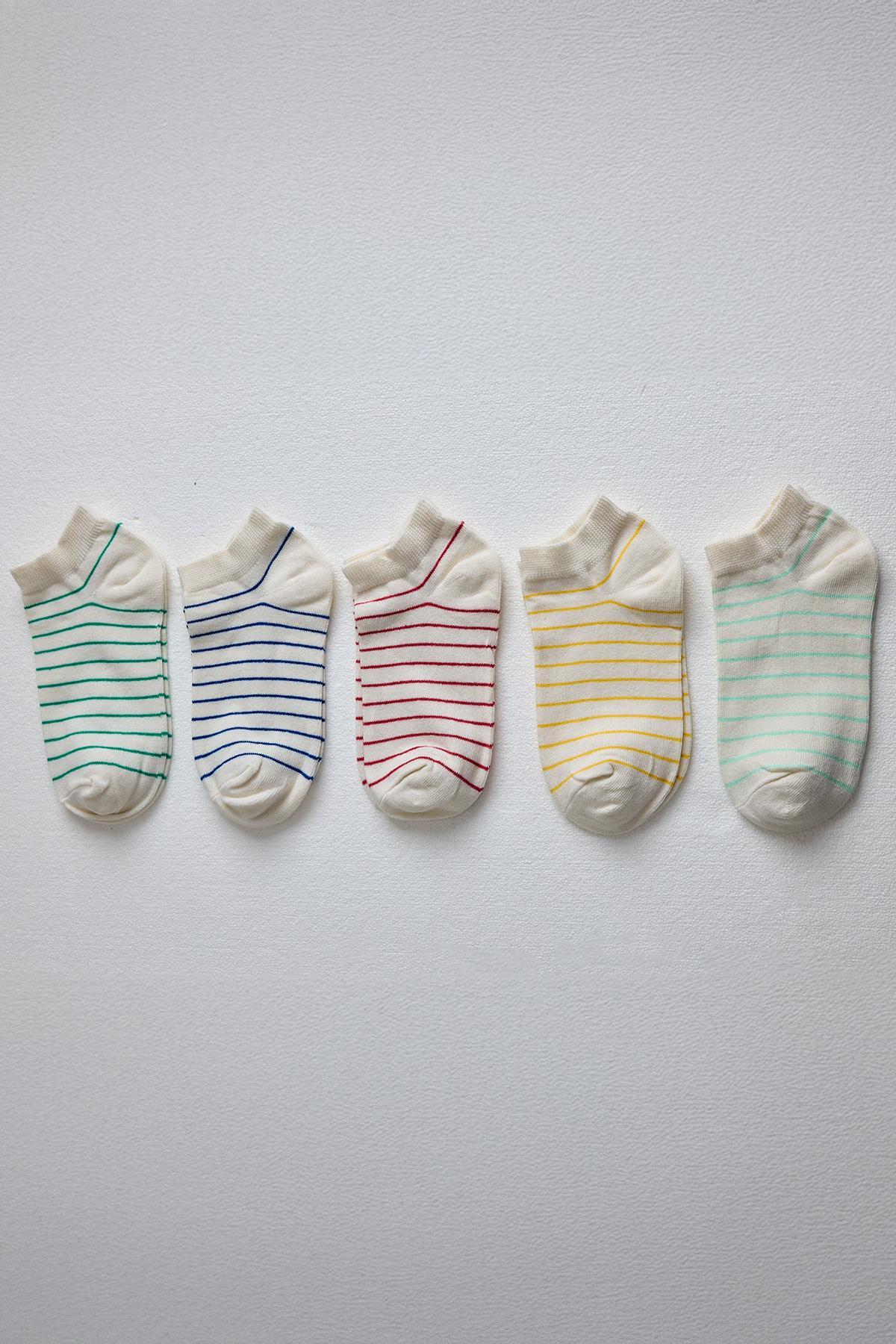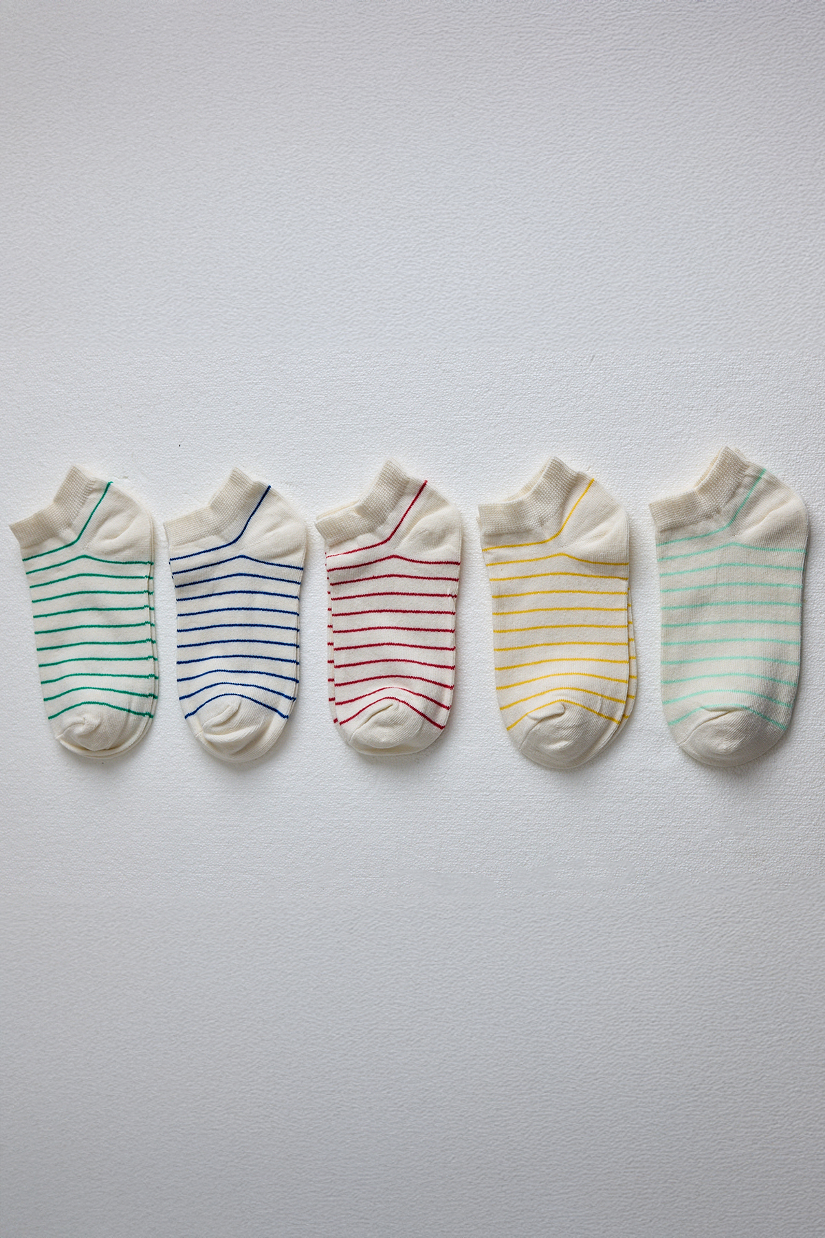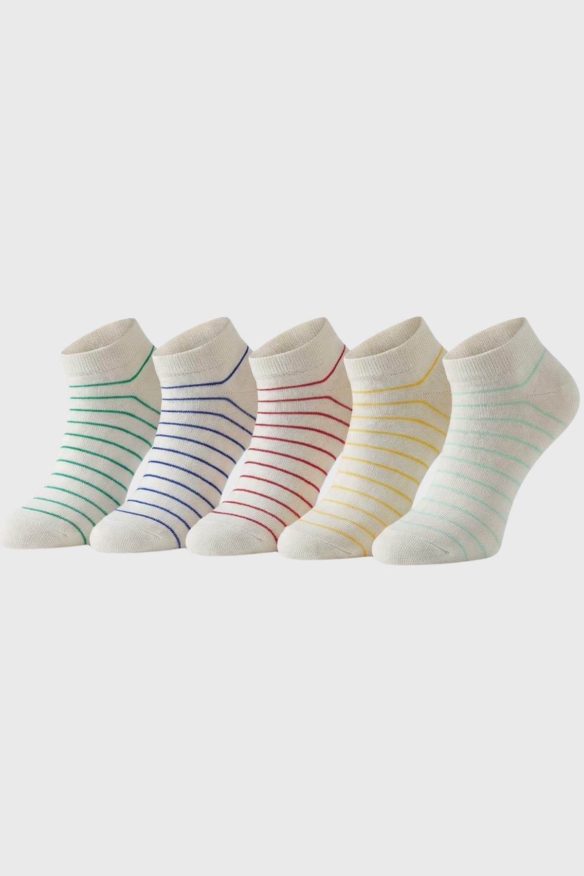 Renkli Çizgili 5'li Örme Patik Çorap 1205