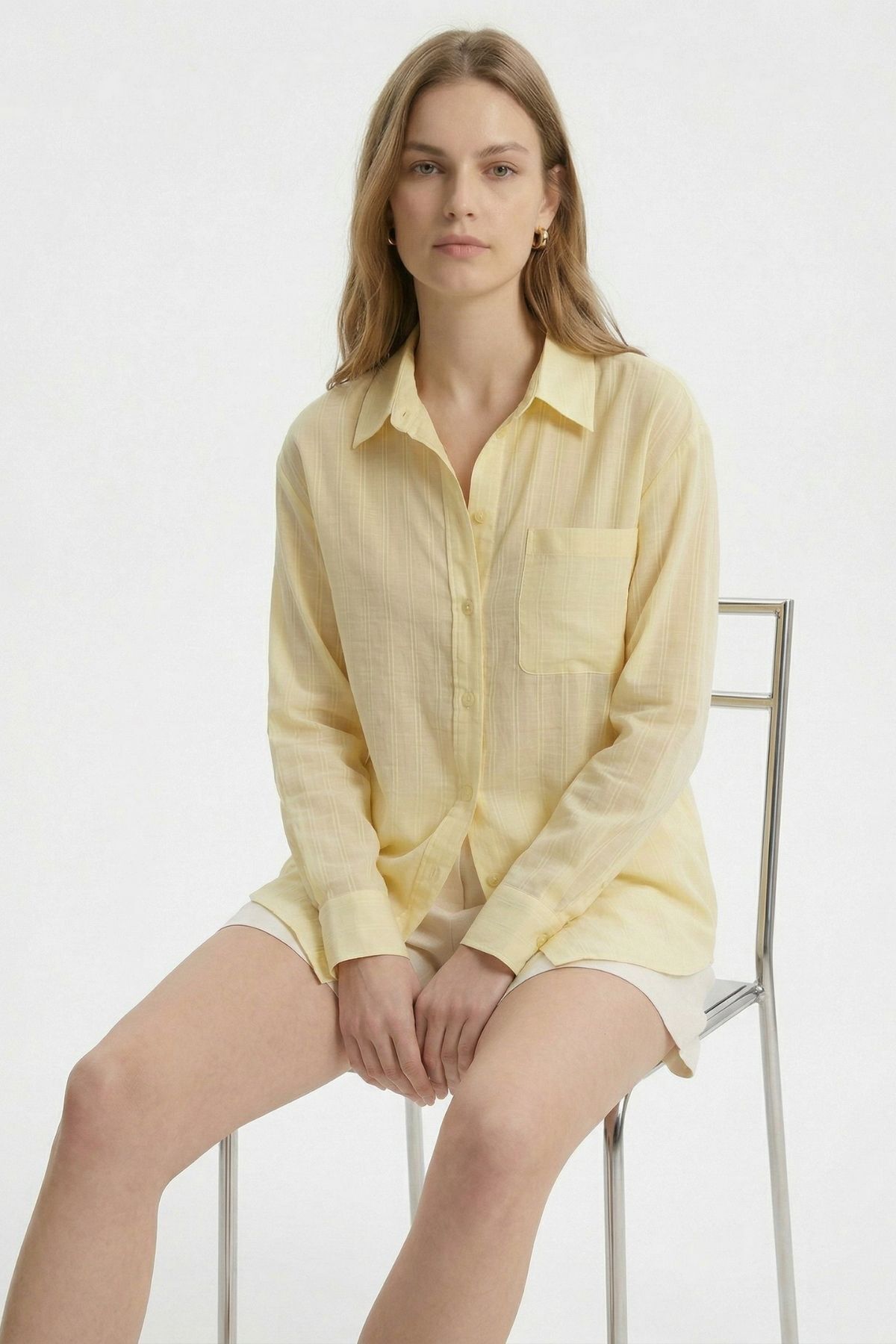 Sarı Çizgili Oversize Gömlek 5460 - RAYS Sarı Çizgili Oversize Gömlek 5460 - RAYS (1)