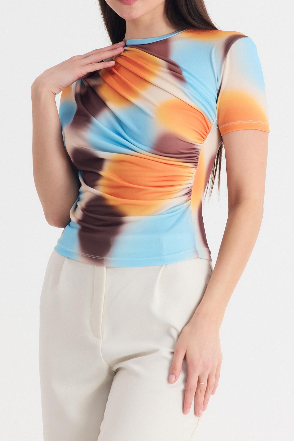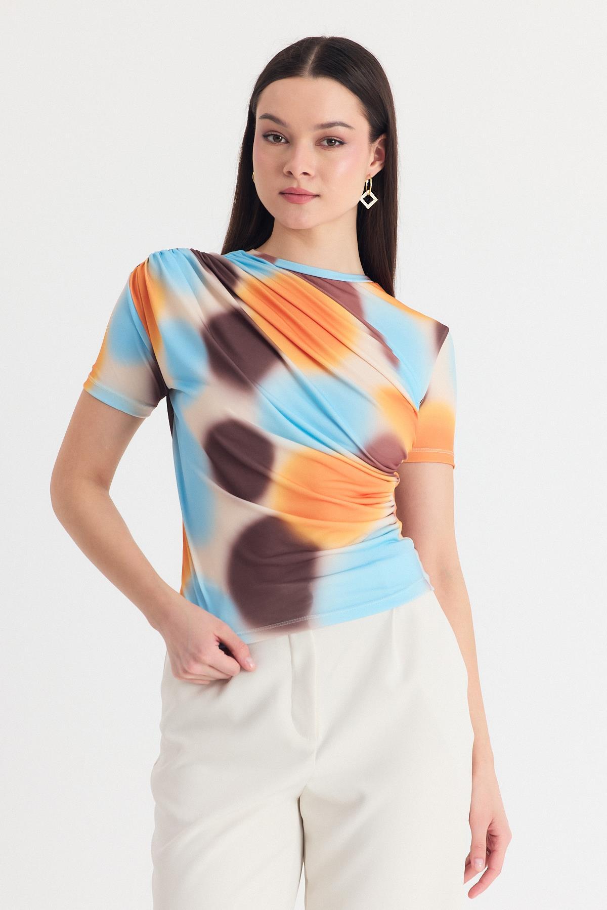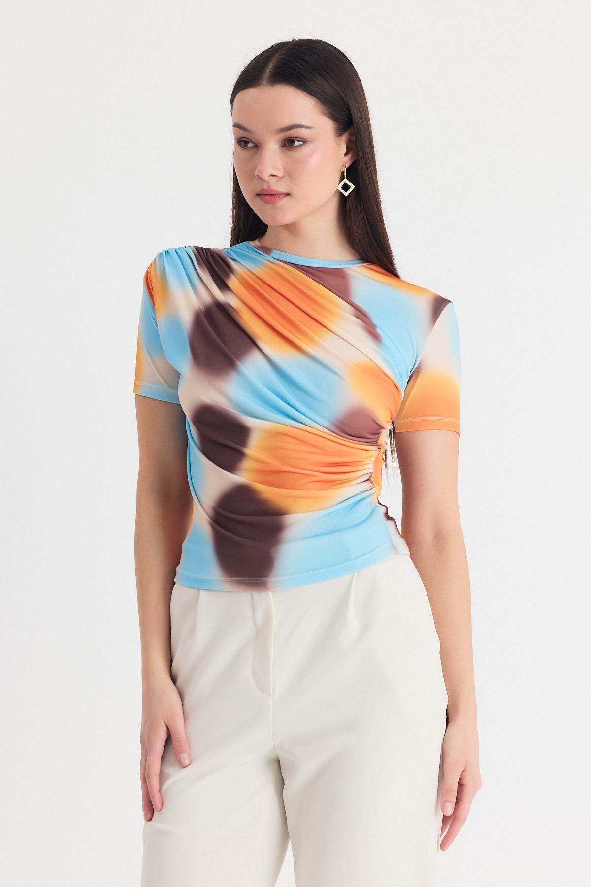 Sarı Desenli Büzgülü Sandy Bluz 12303