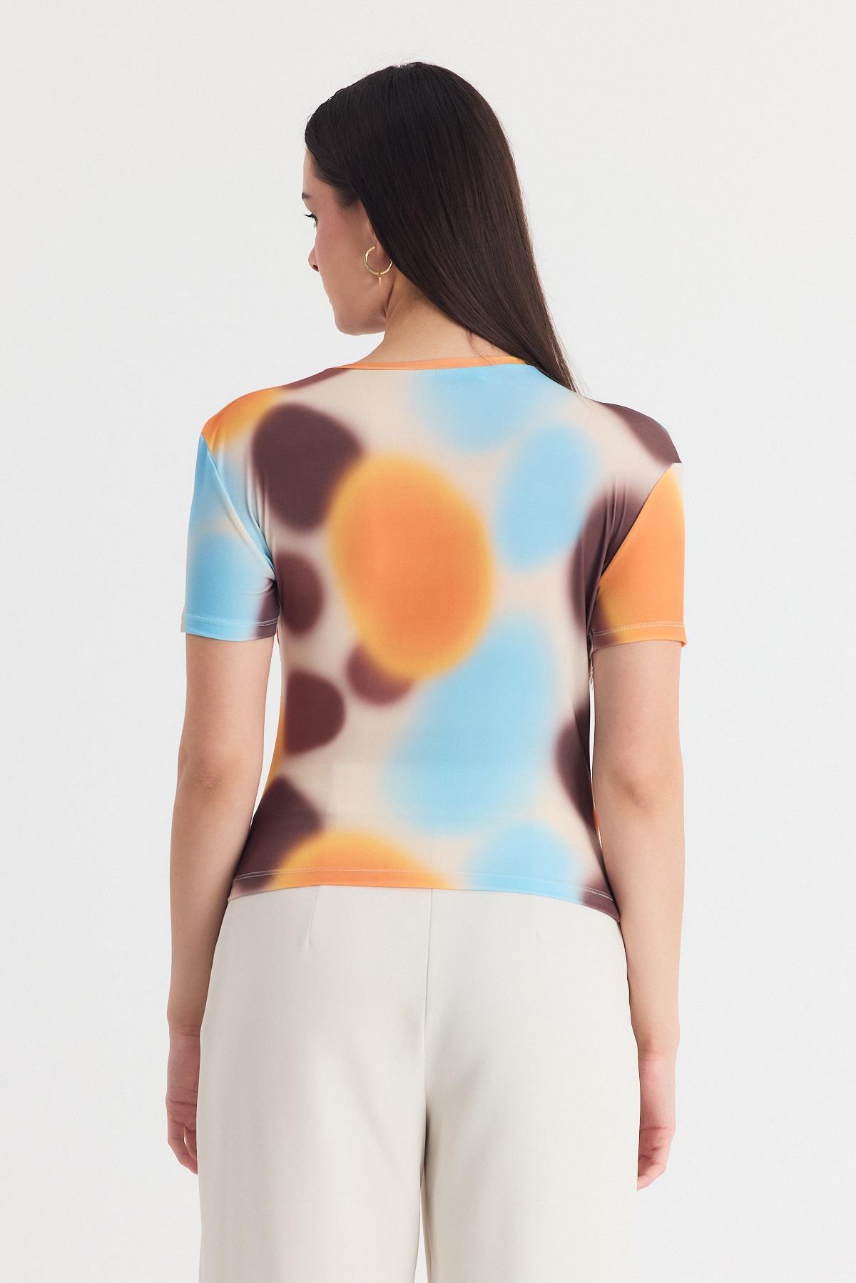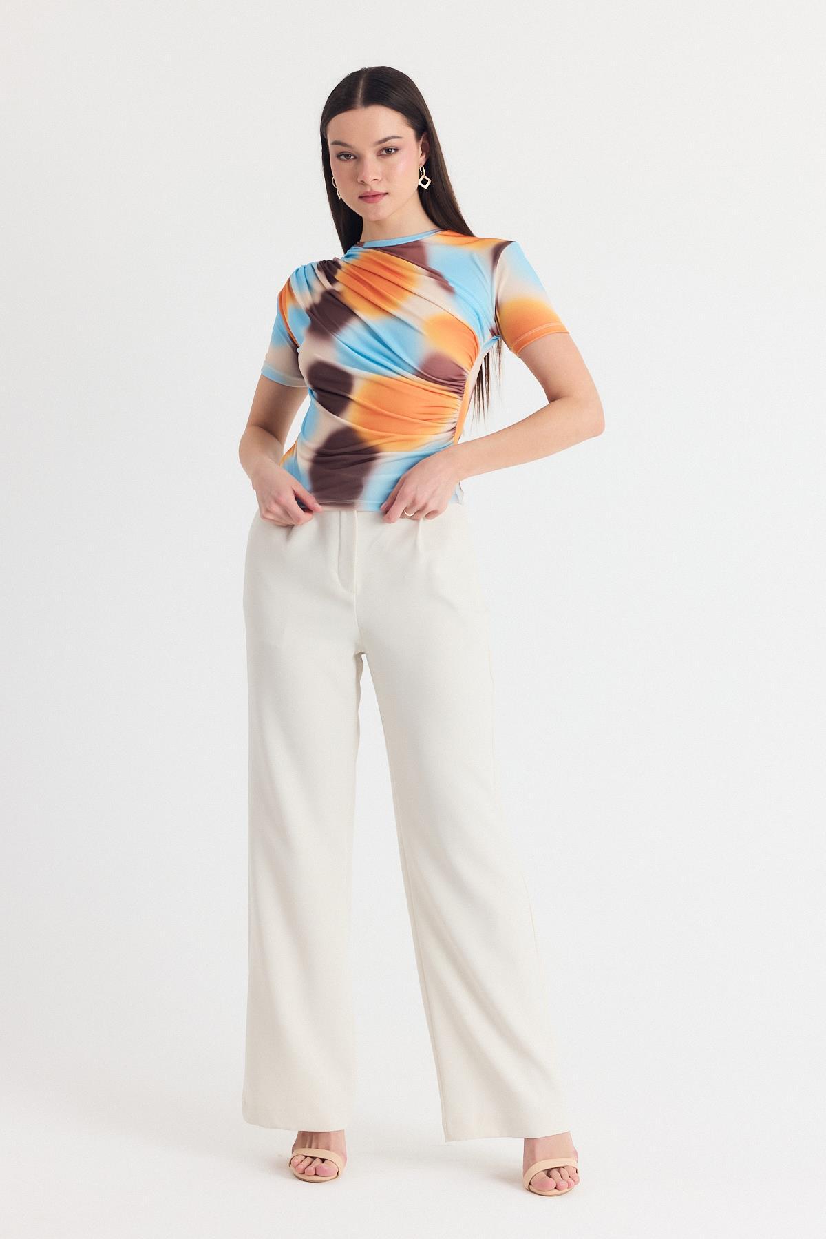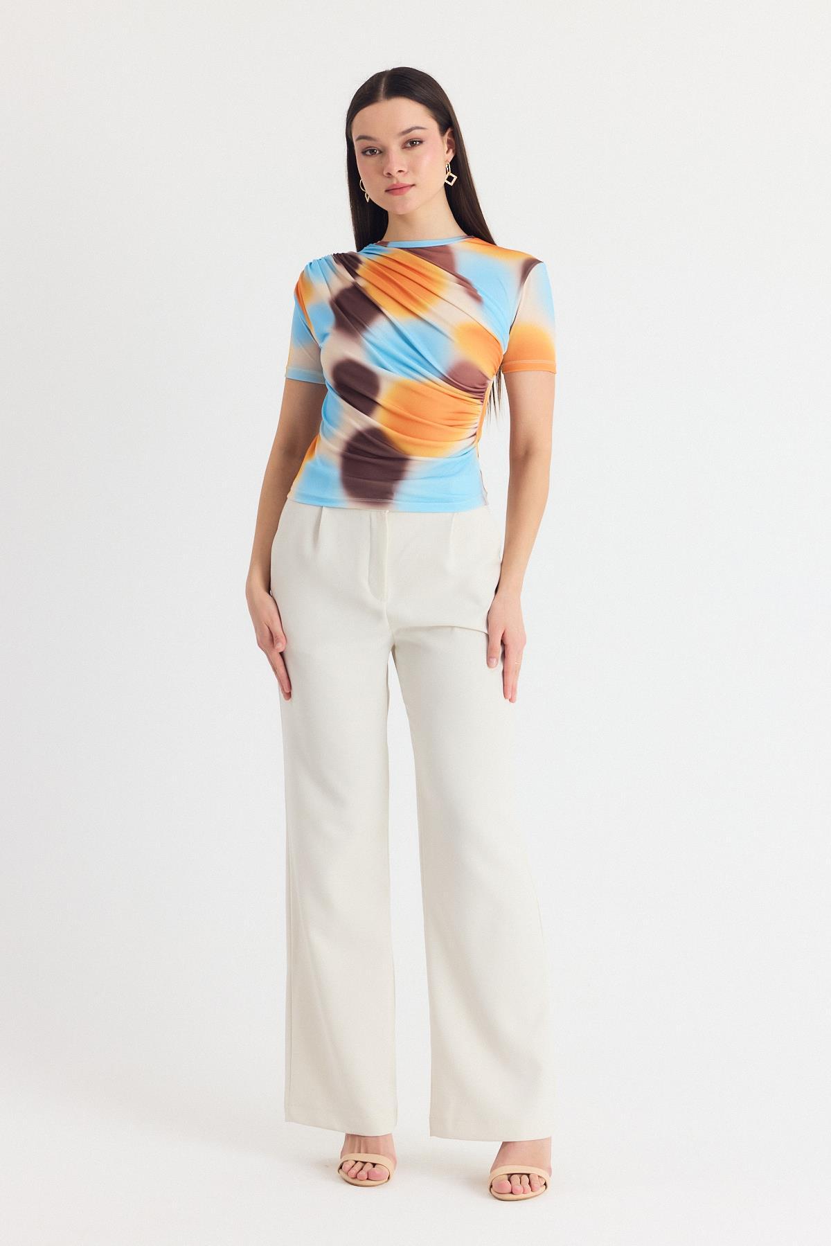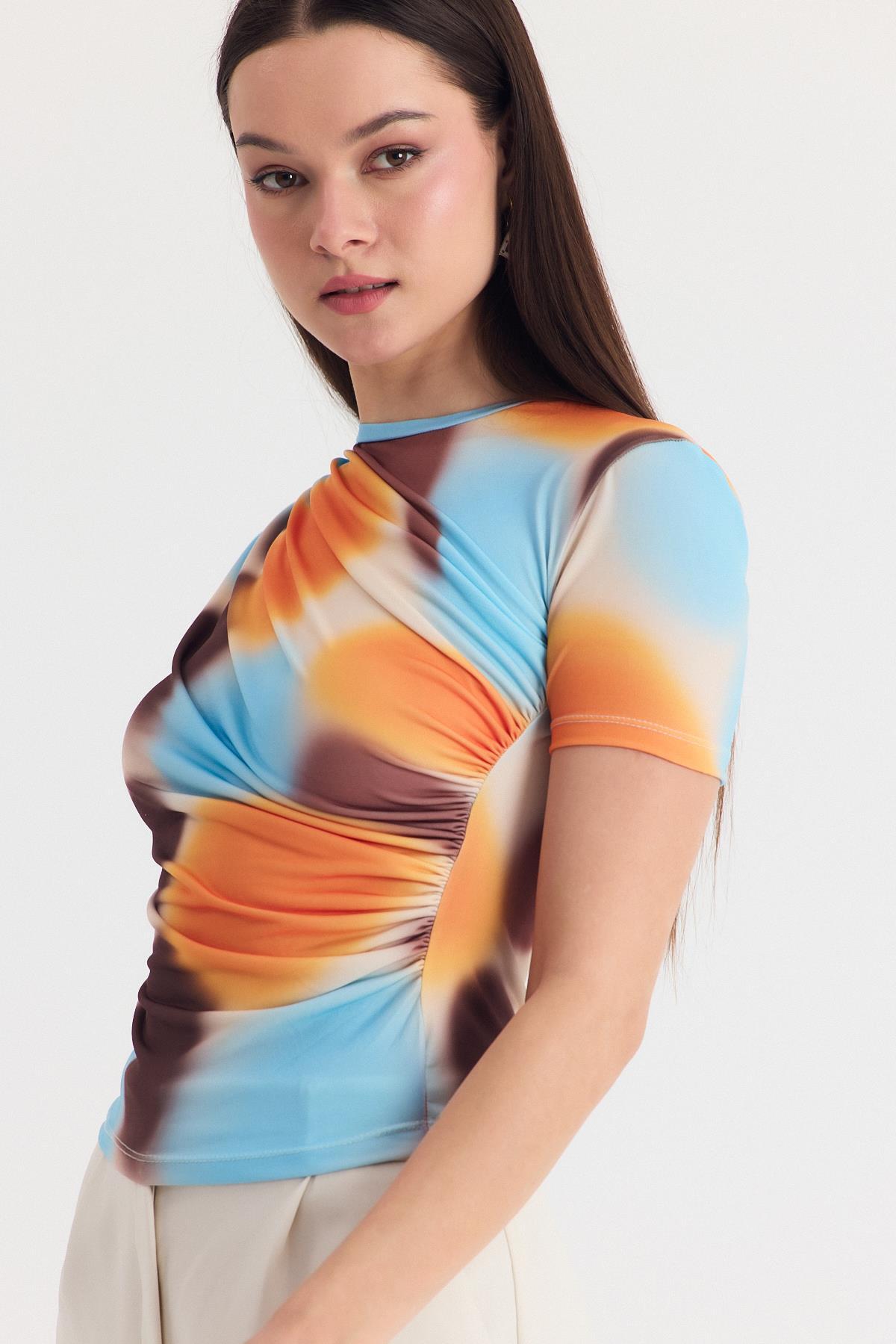 Sarı Desenli Büzgülü Sandy Bluz 12303