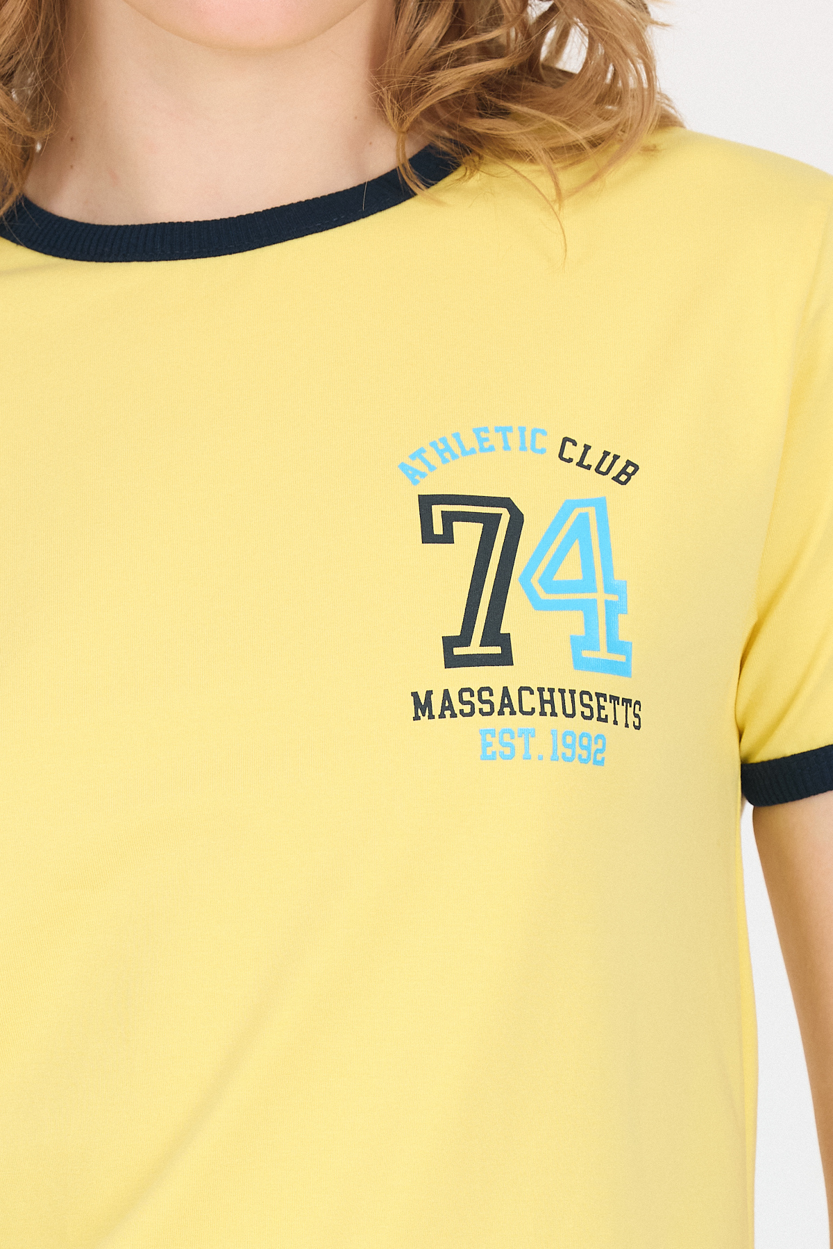 Sarı Yazı Baskılı Regular Fit Ribana Detaylı Tişört 6325