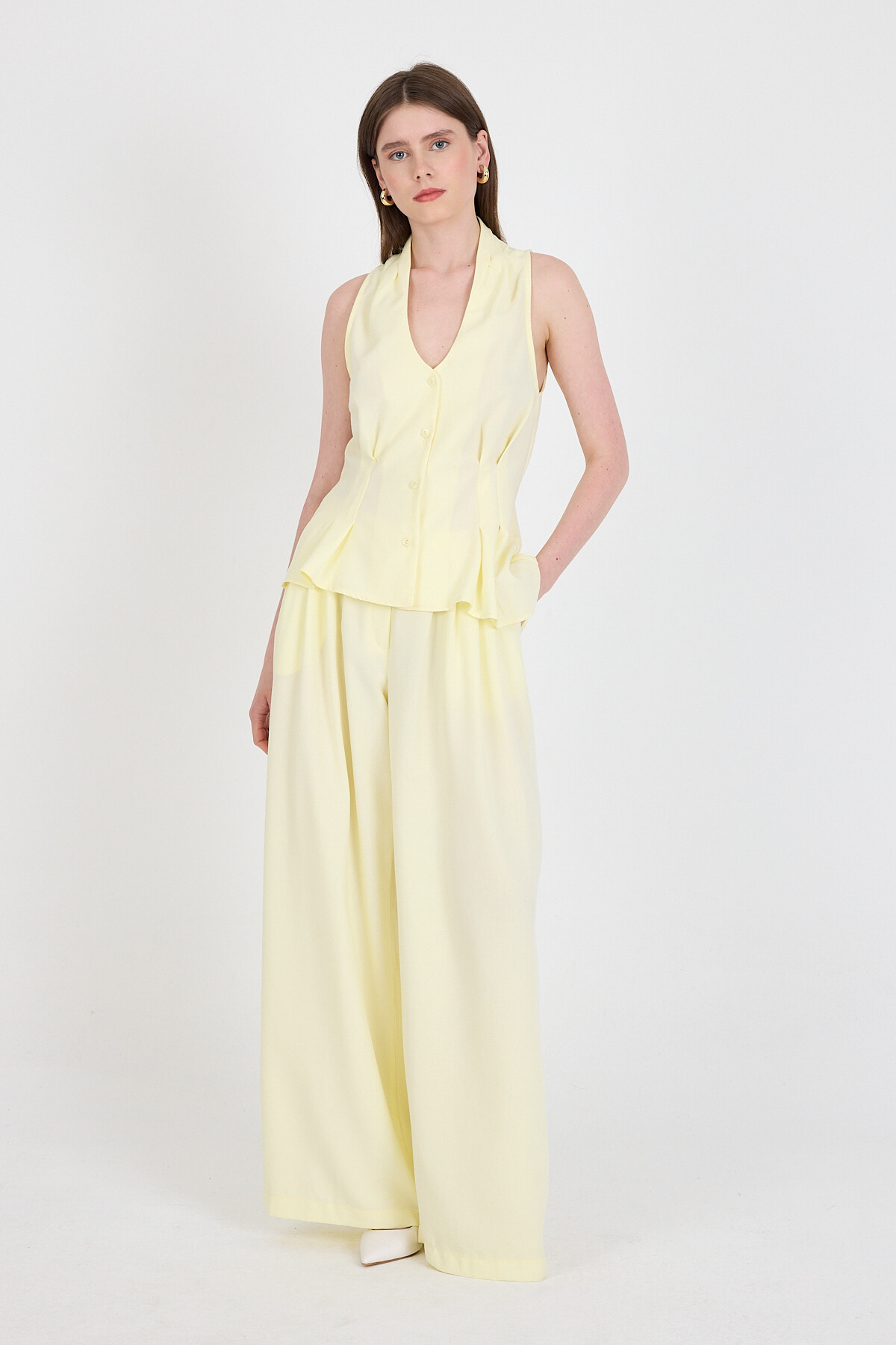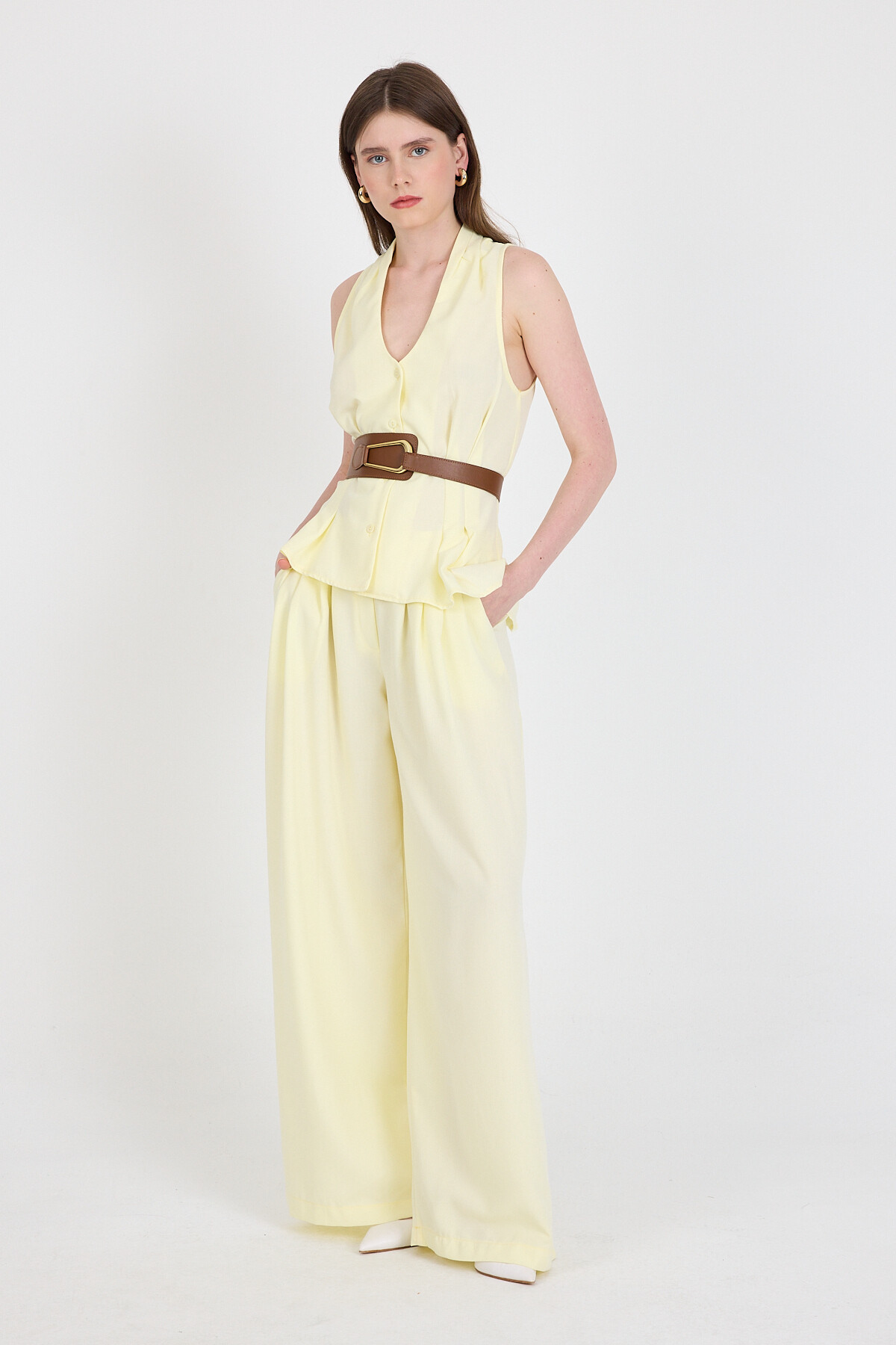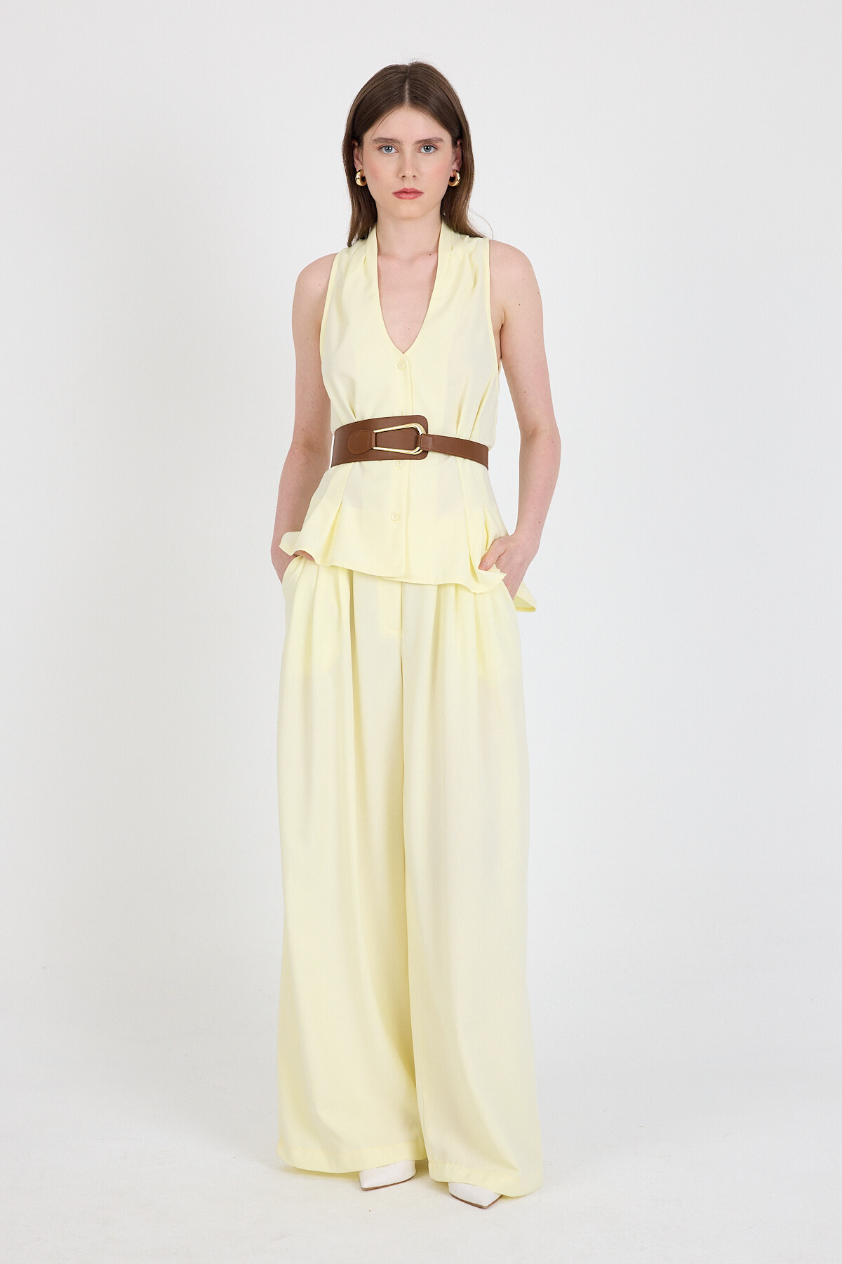 Sarı Yelekli Kemerli Pantolon Takım 5254