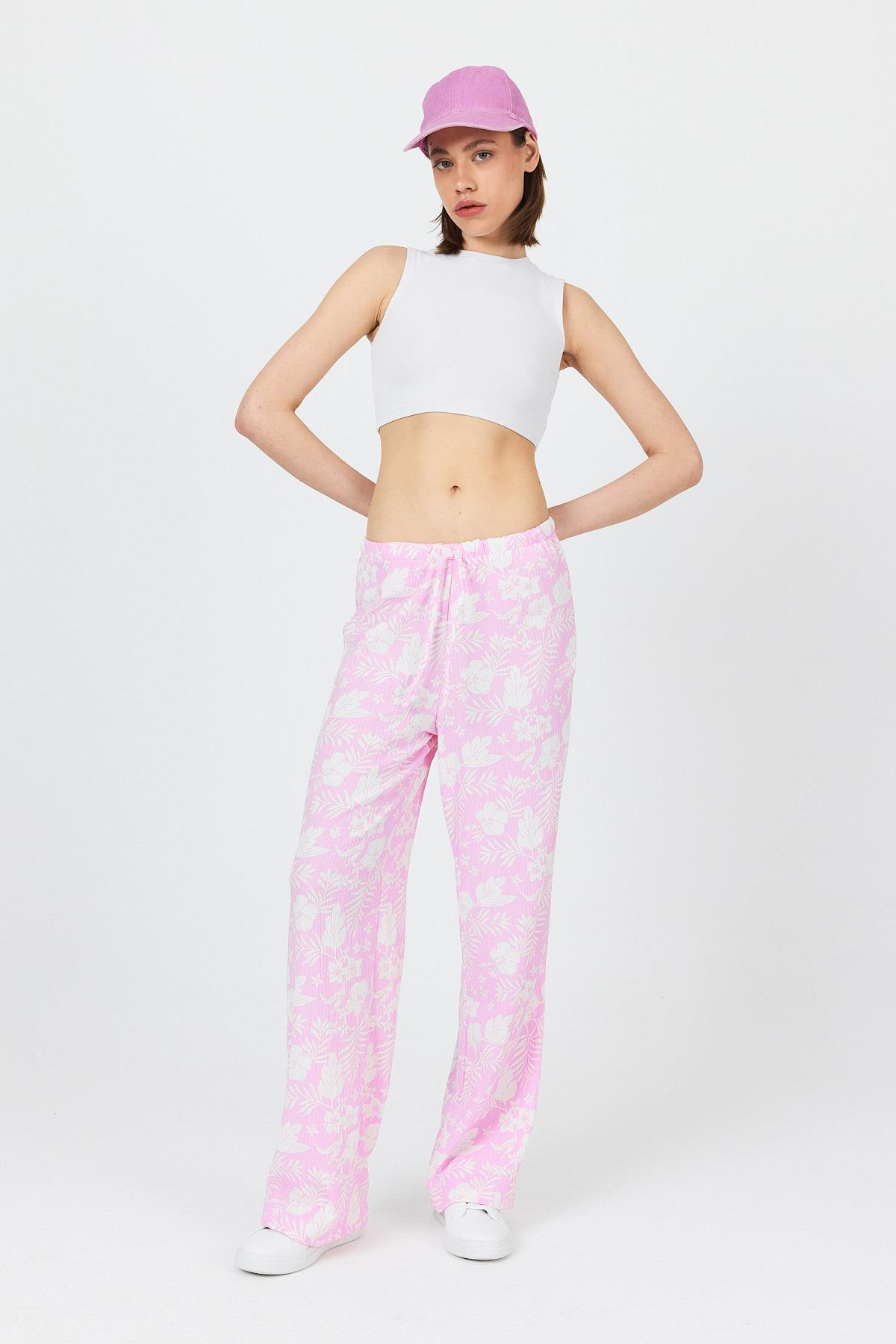 Şeker Pembe Bel Lastikli Desenli Pantolon 4725A