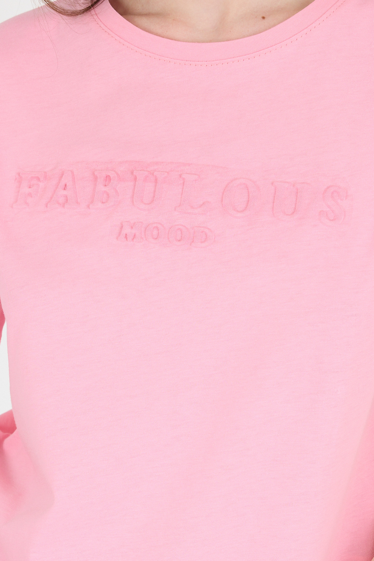 Şeker Pembe Kabartma Yazılı Relaxed Fit Tişört 25209