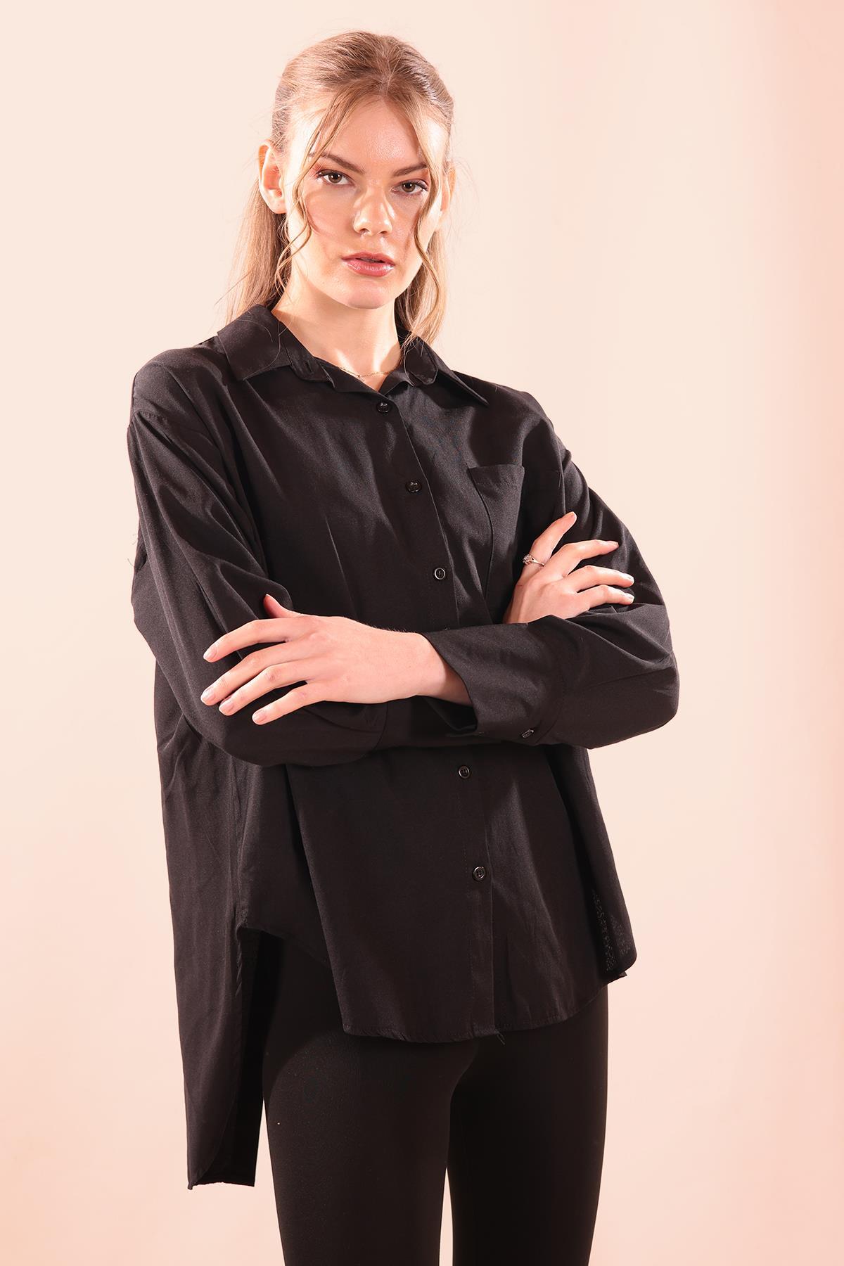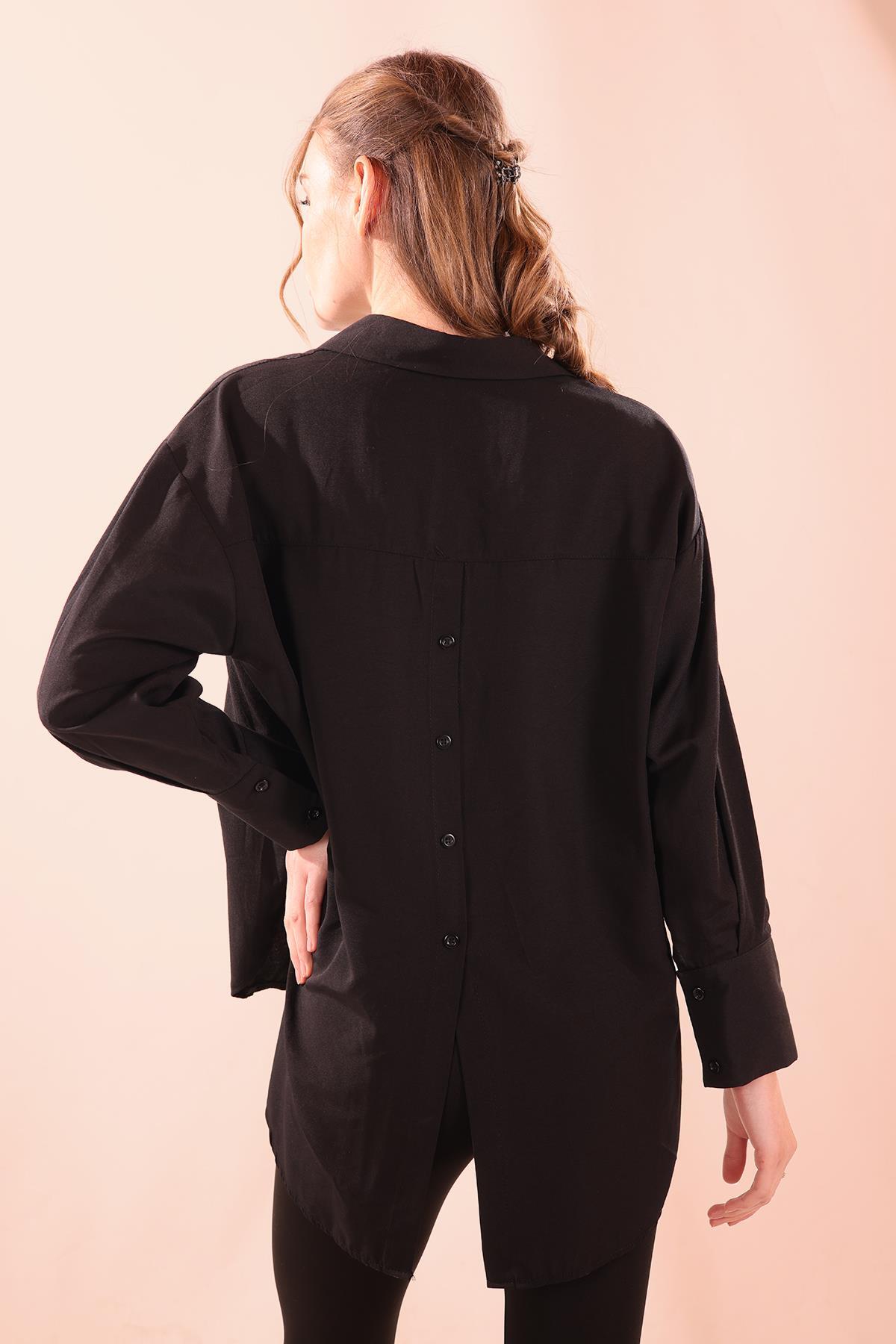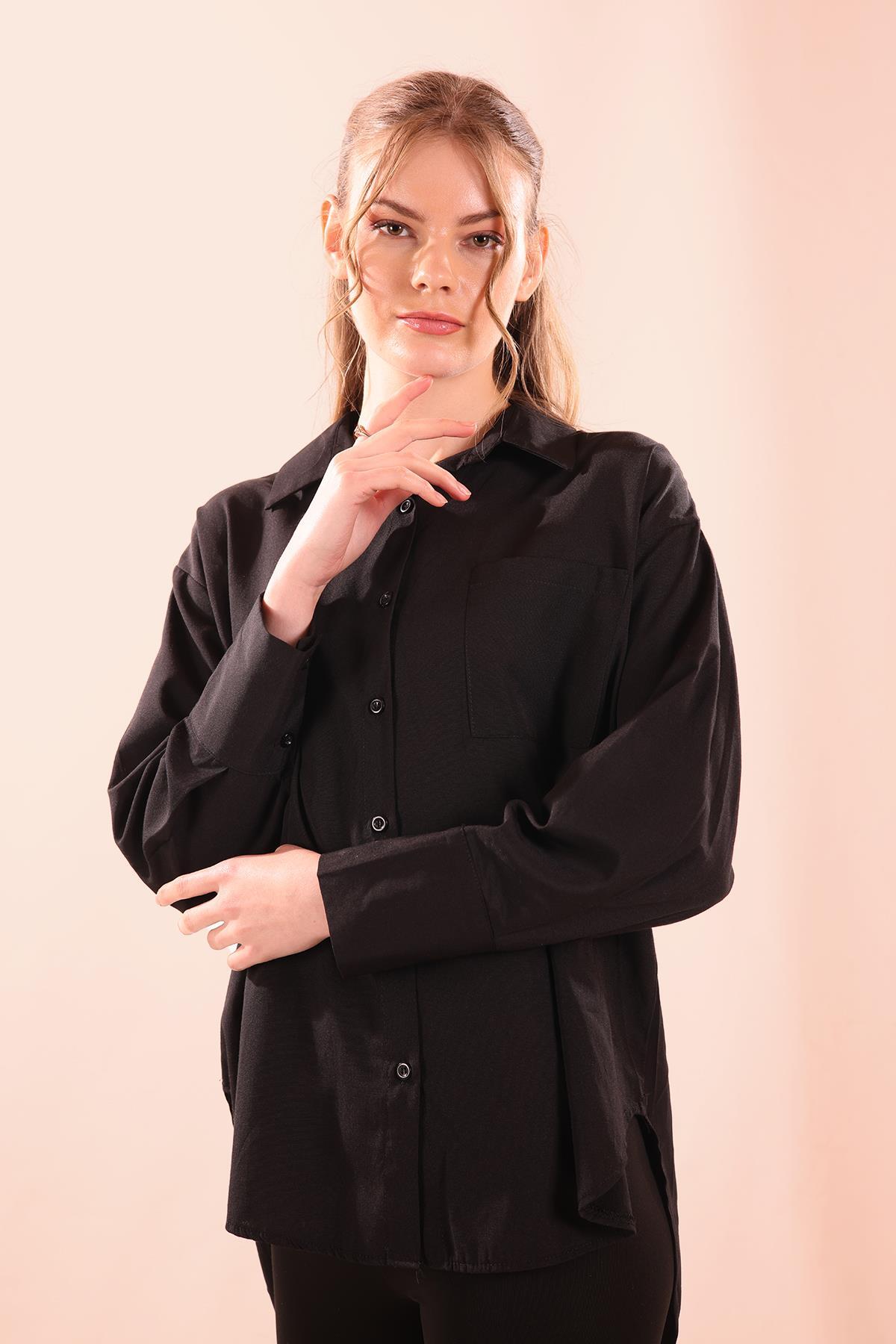 Sırt Düğmeli Tek Cepli Bayan Gömlek - 6500A Siyah