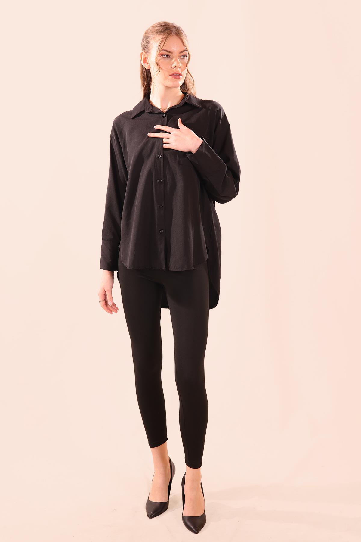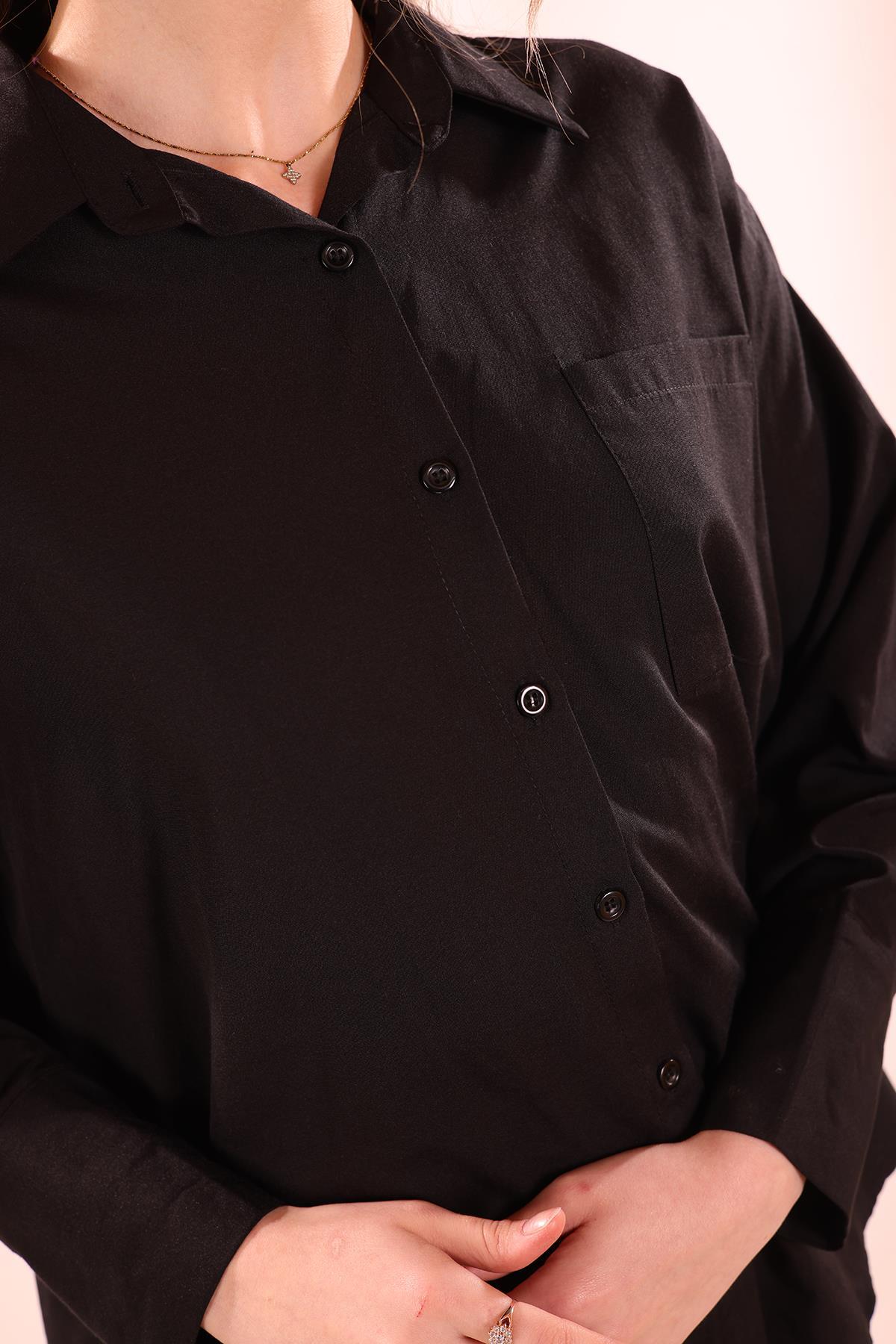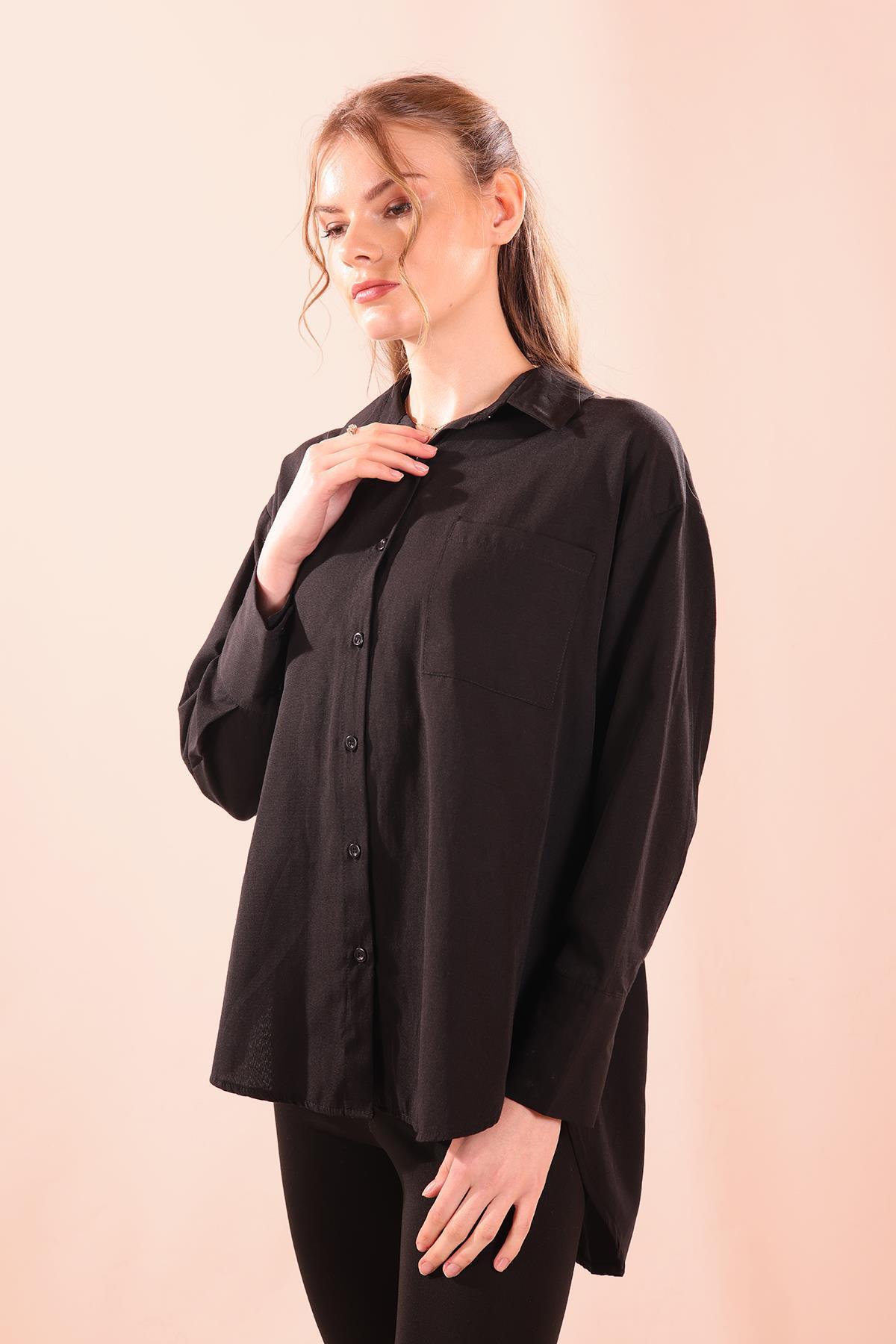 Sırt Düğmeli Tek Cepli Bayan Gömlek - 6500A Siyah