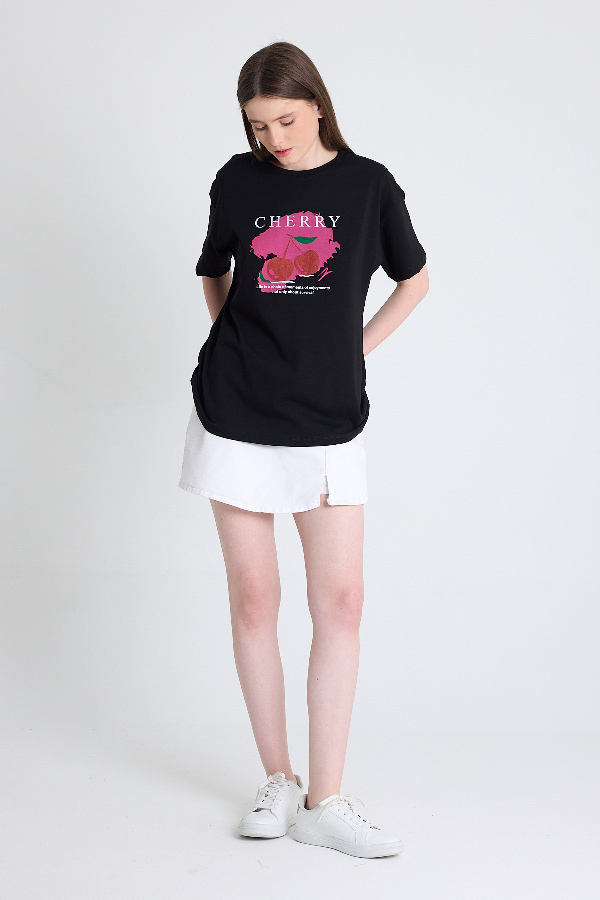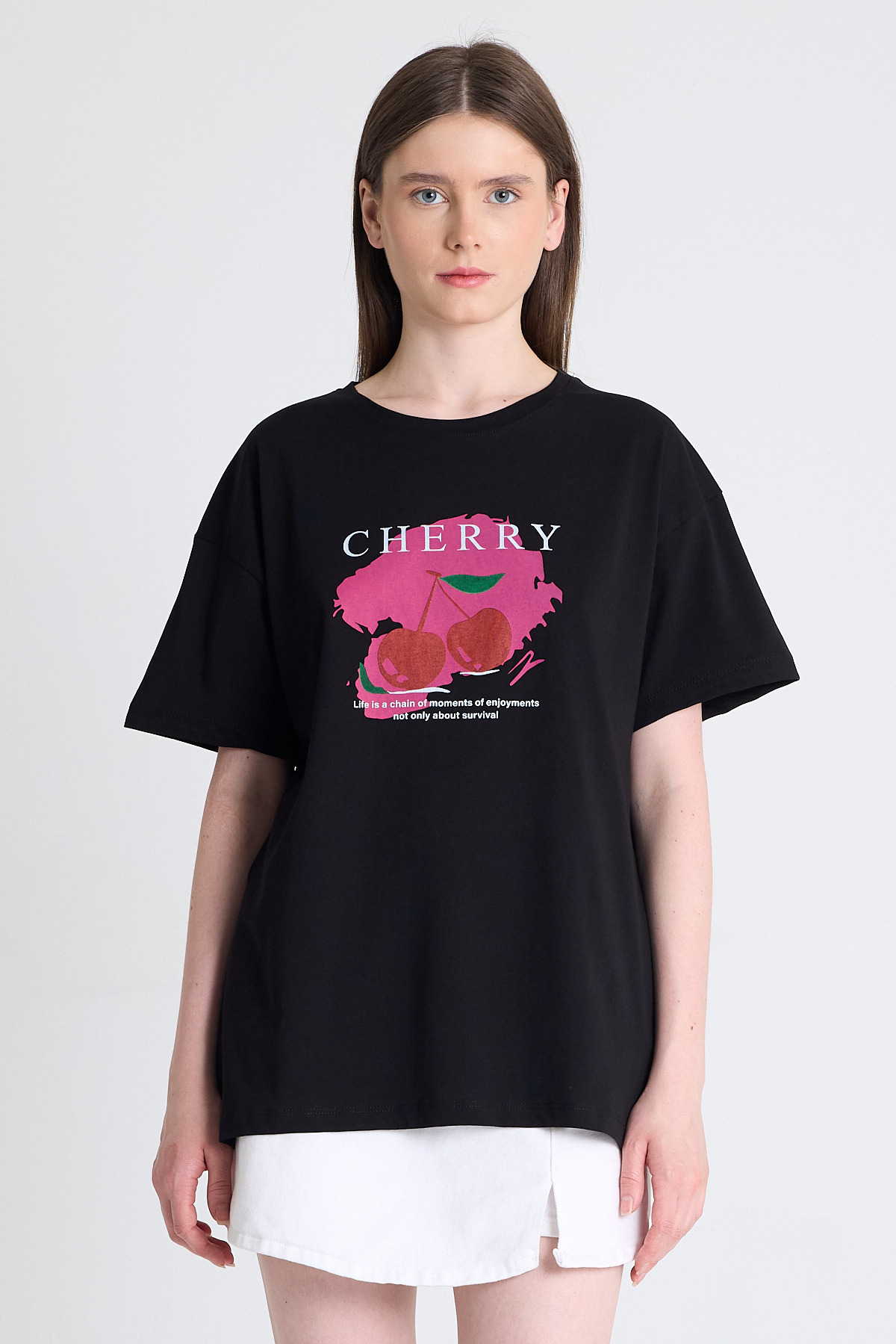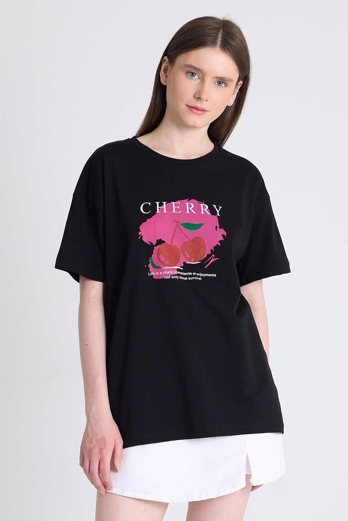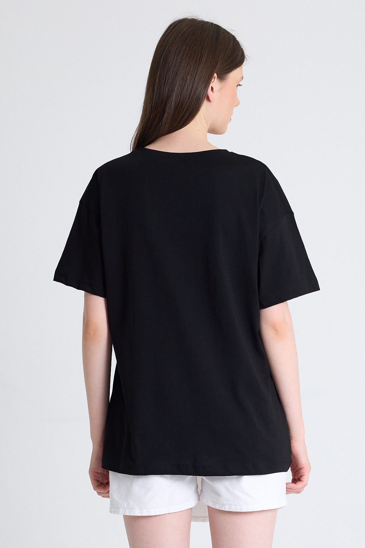 Siyah %100 Pamuk Yazı Baskılı Tişört 2150-15M
