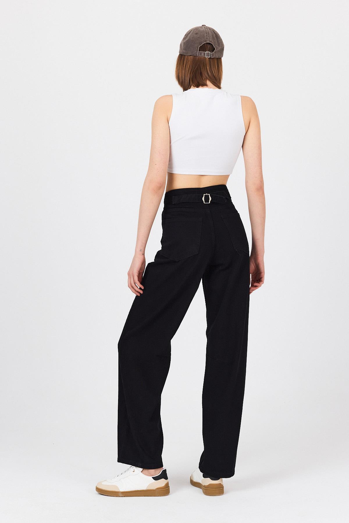 Siyah Arka Kemer Tokalı Yüksek Bel Jean 11137