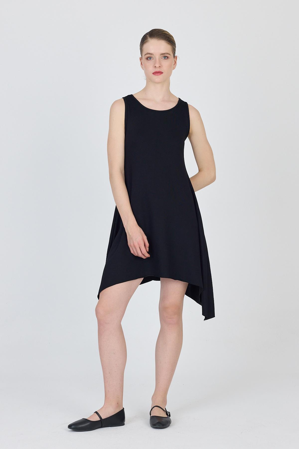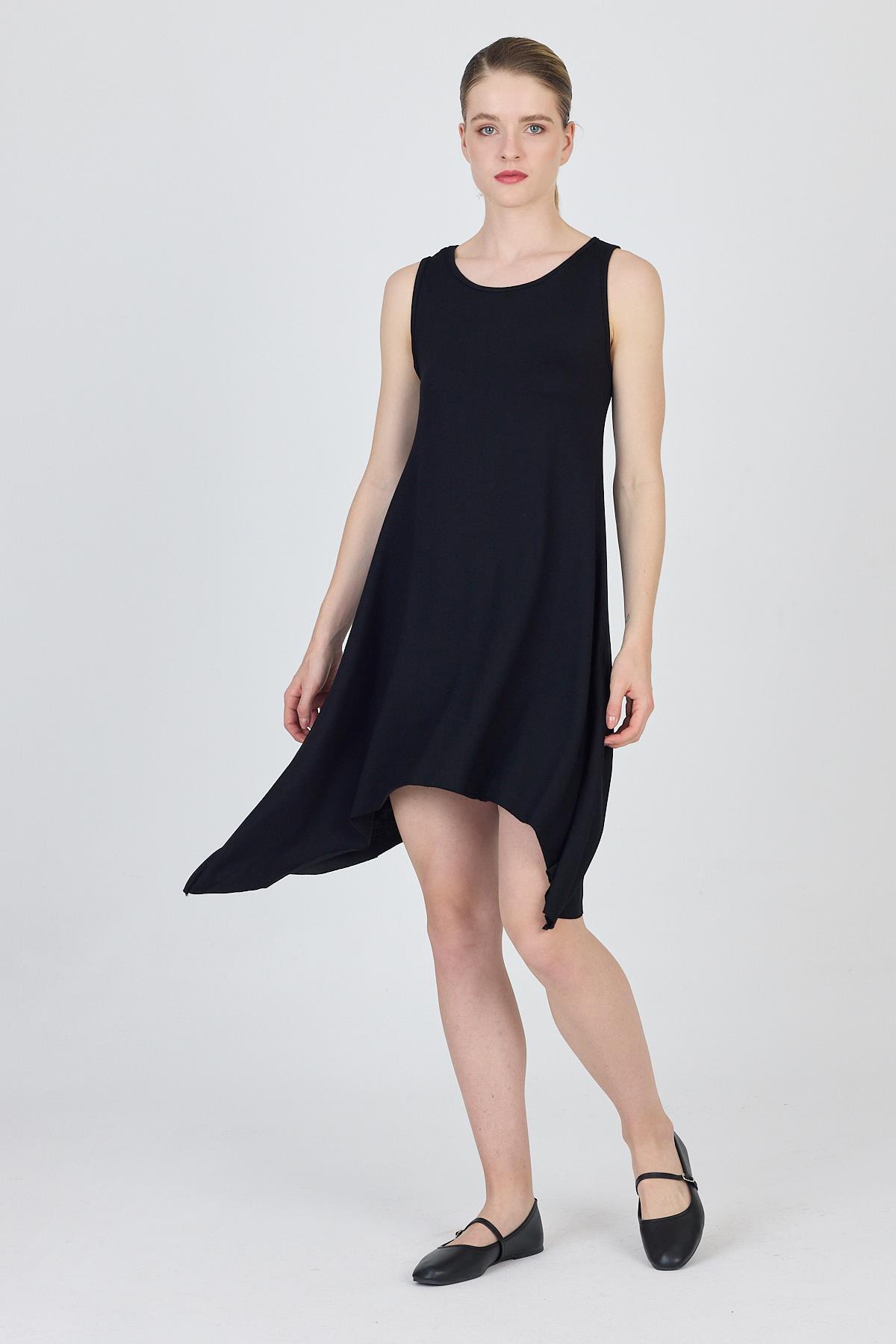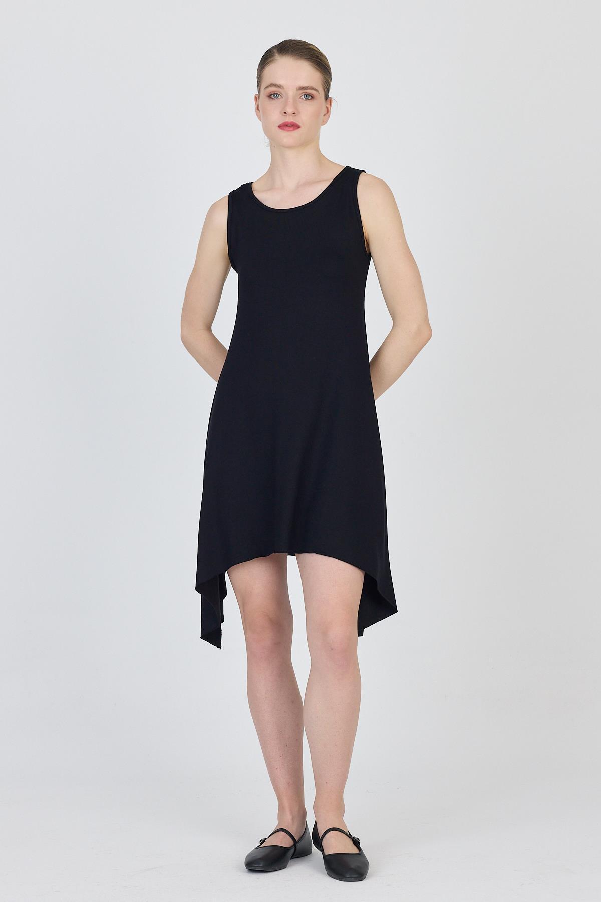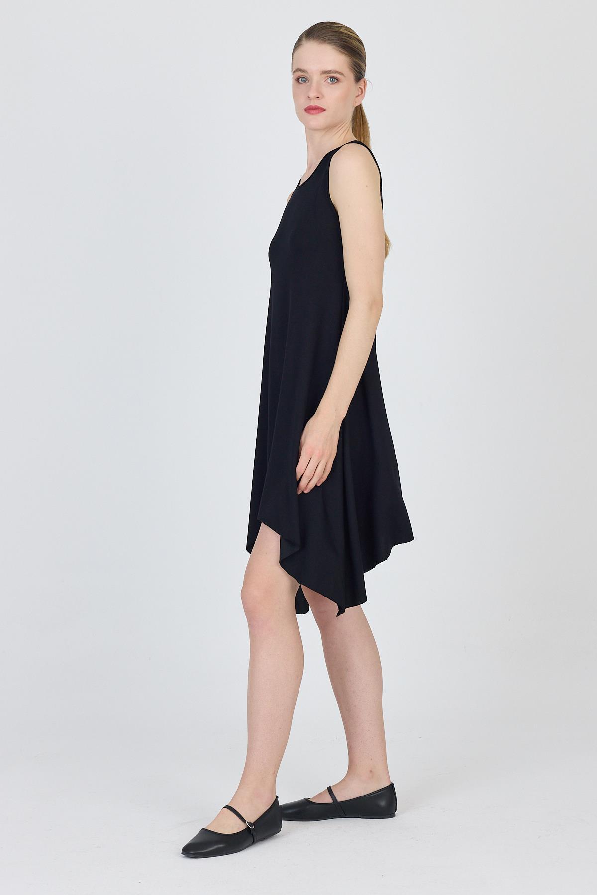 Siyah Asimetrik Kesim Kolsuz Elbise 4034