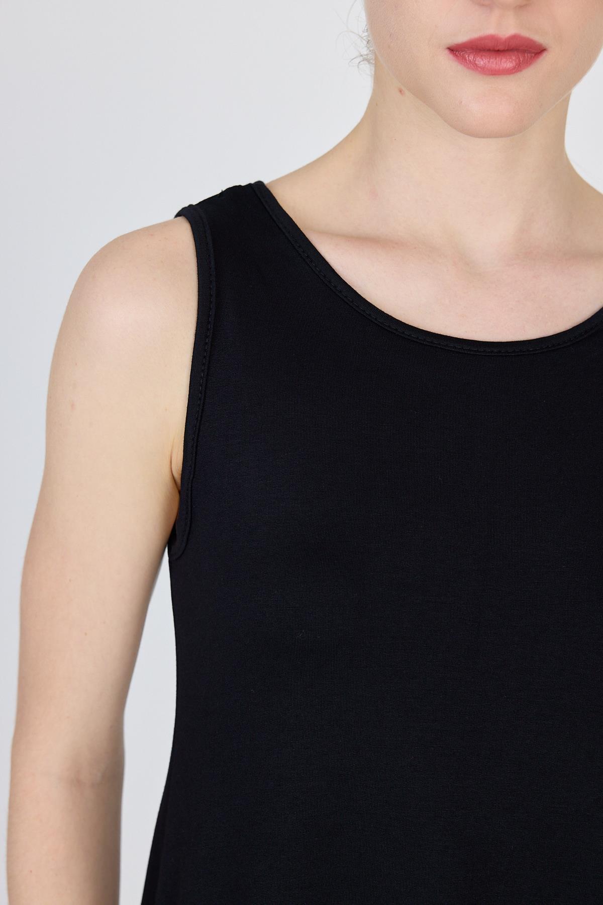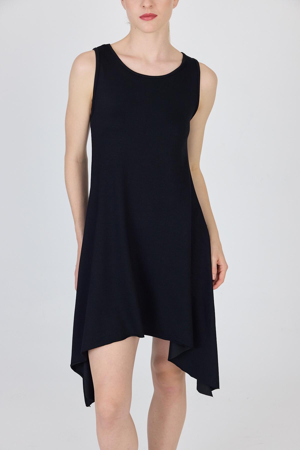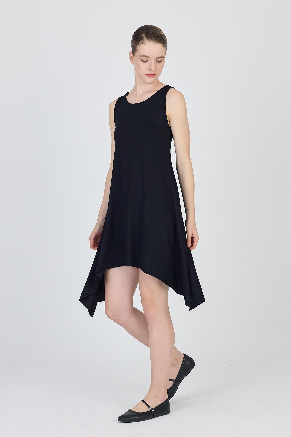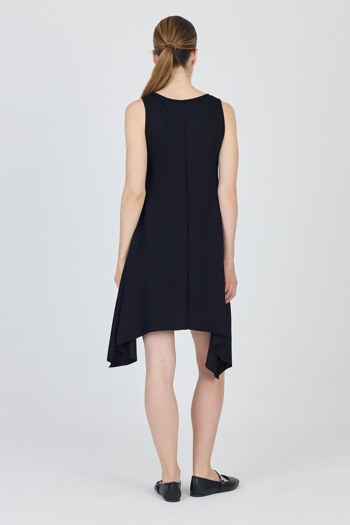 Siyah Asimetrik Kesim Kolsuz Elbise 4034