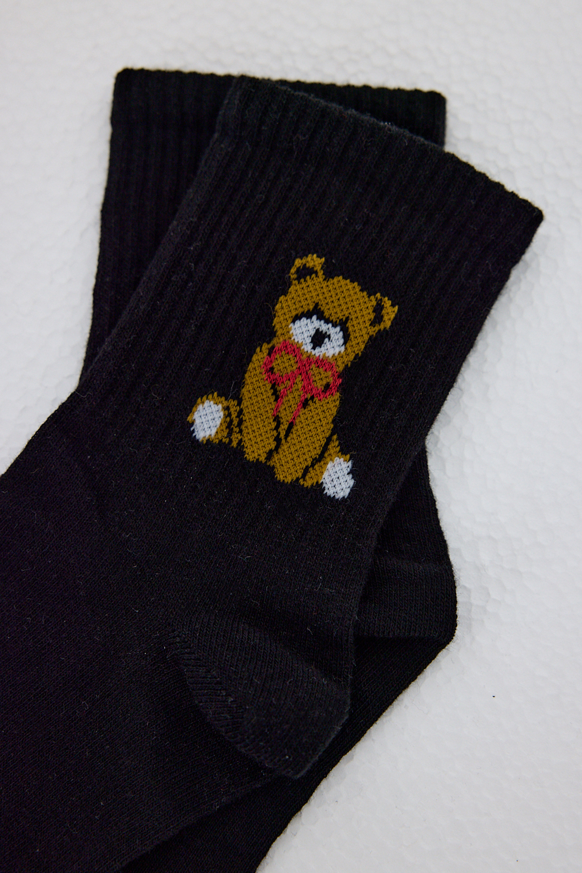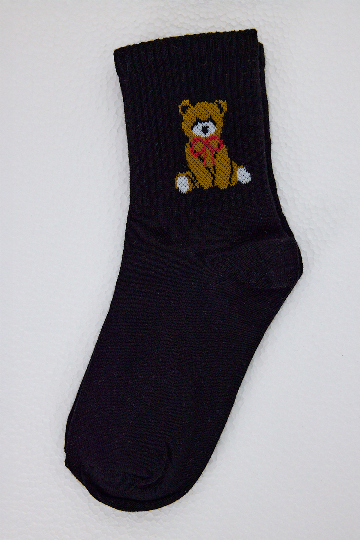 Siyah Ayı Desenli Örme Soket Çorap 1214