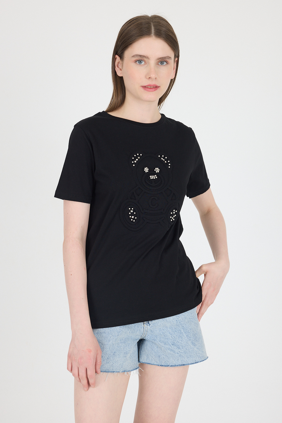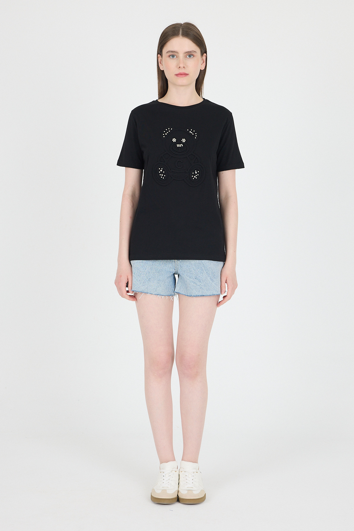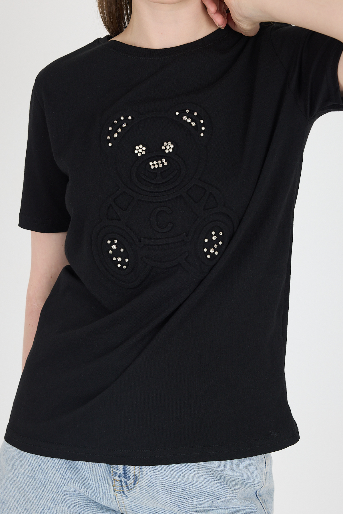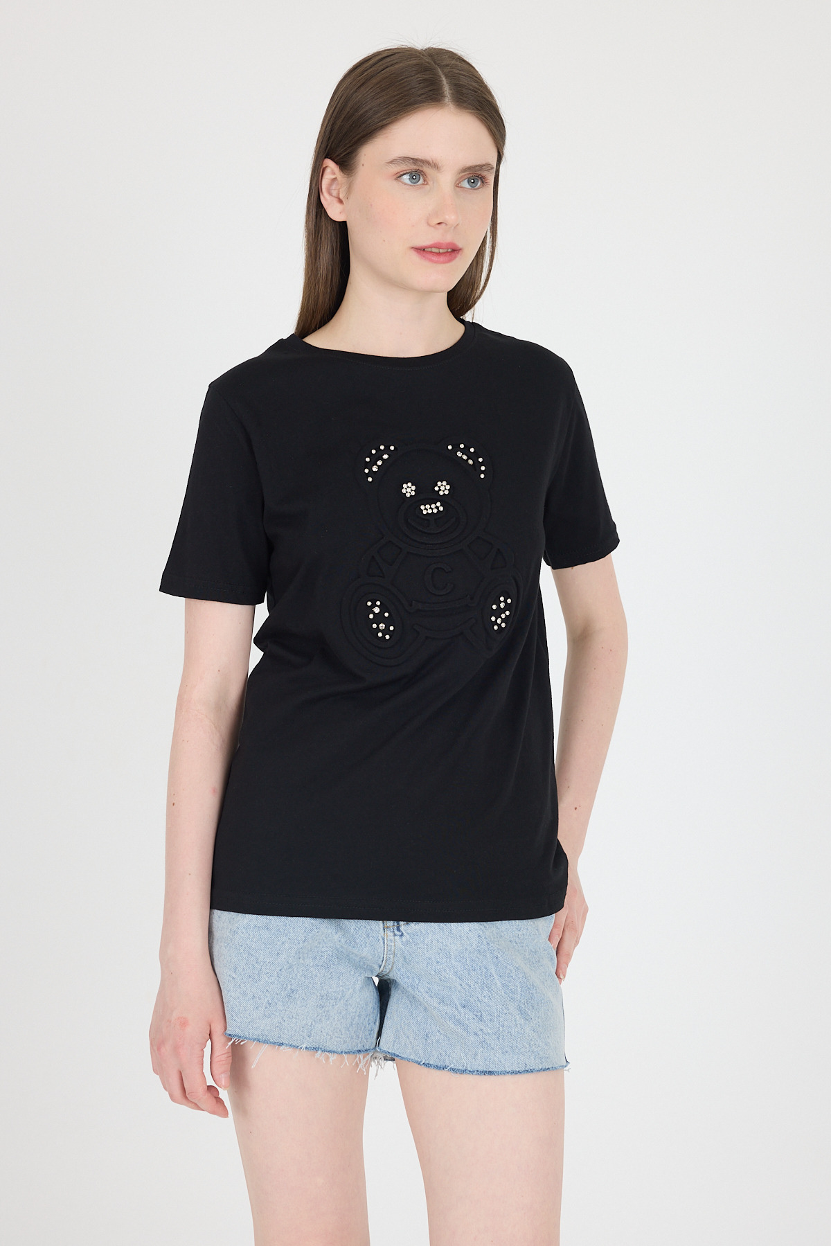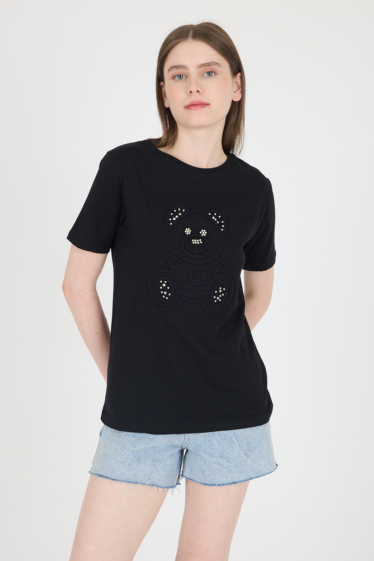 Siyah Ayıcık Kabartmalı Tişört 25221