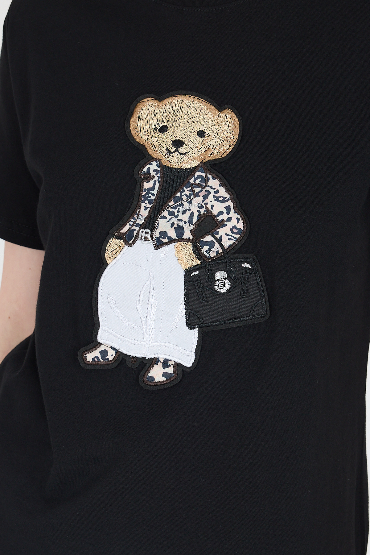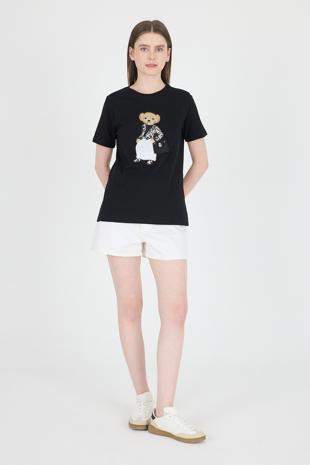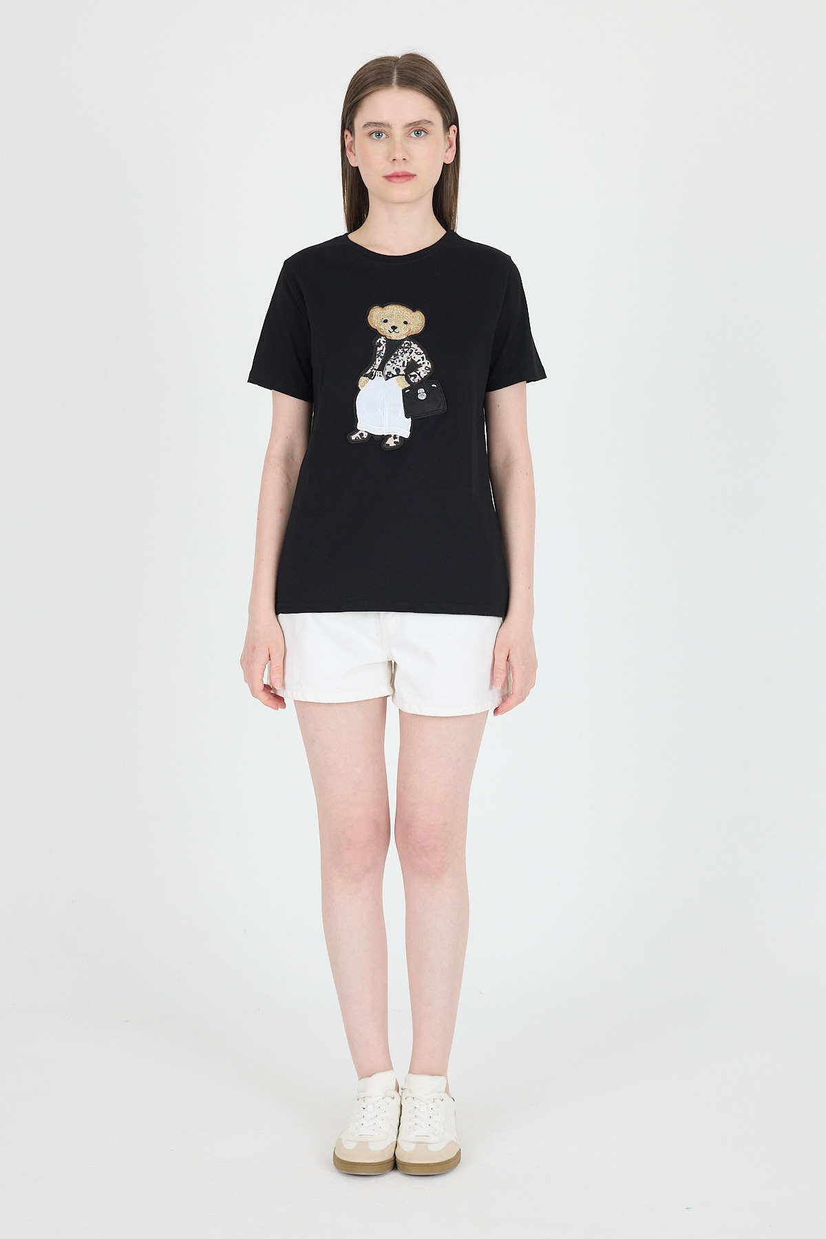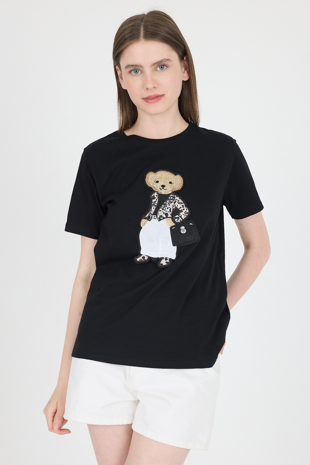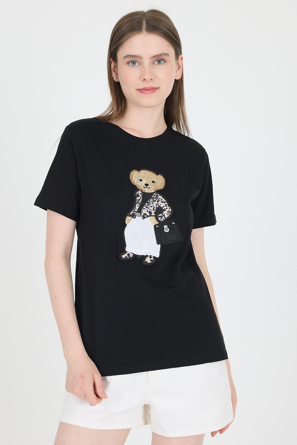 Siyah Ayıcık Nakışlı Regular Fit Tişört 252502
