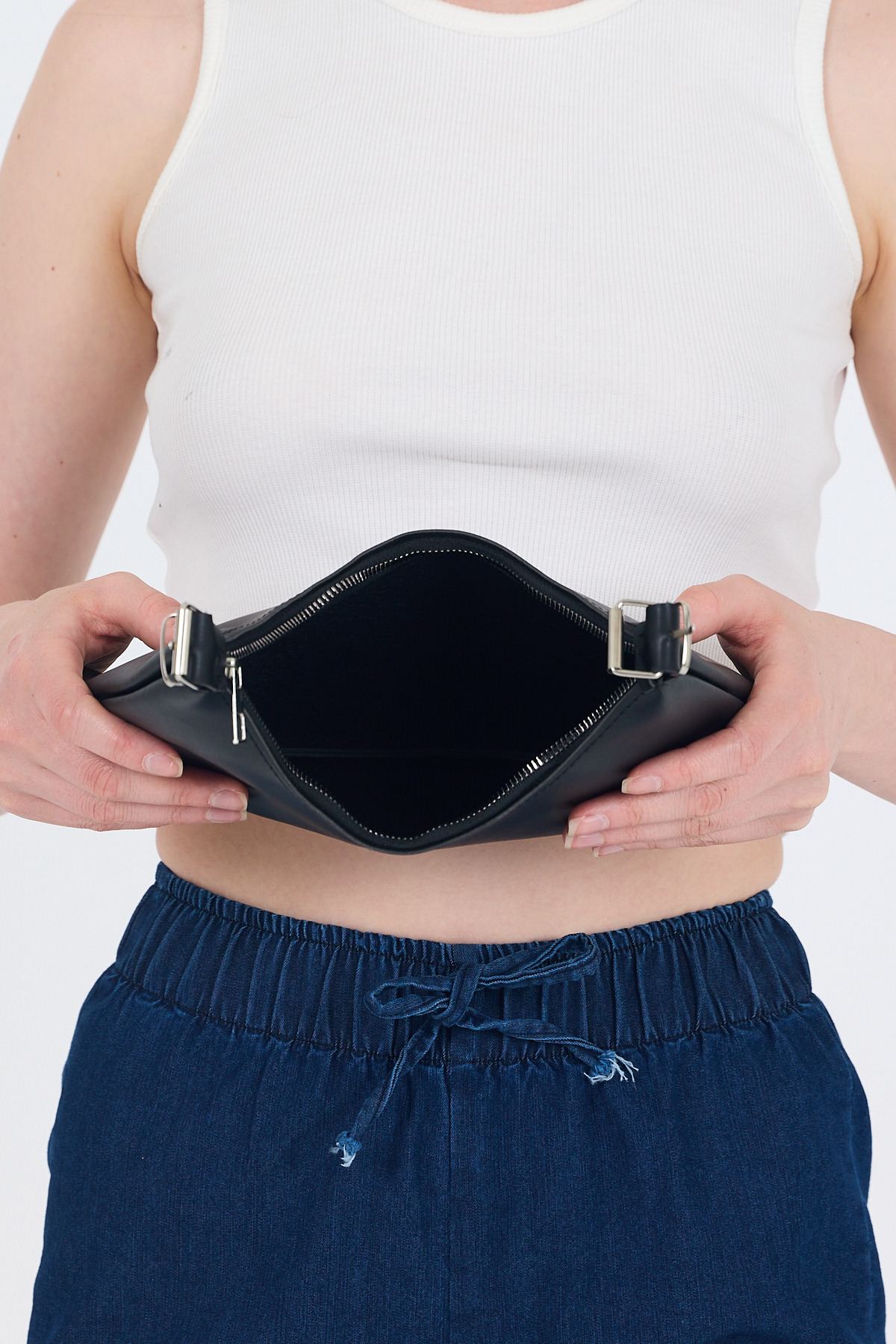 9230 Fermuarllı Örgülü Çanta Siyah - RAYS