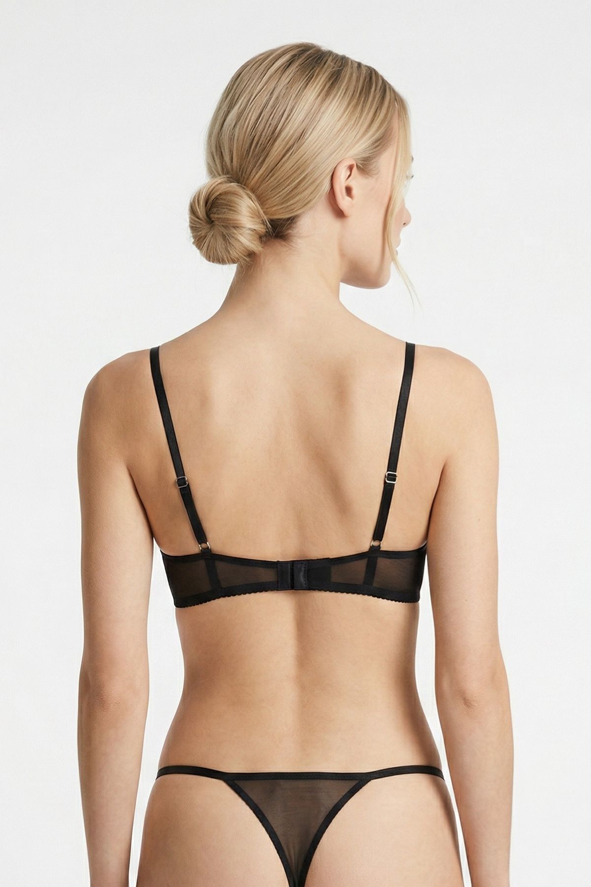 Siyah Kapsız Transparan Tül Sütyen Takım 351