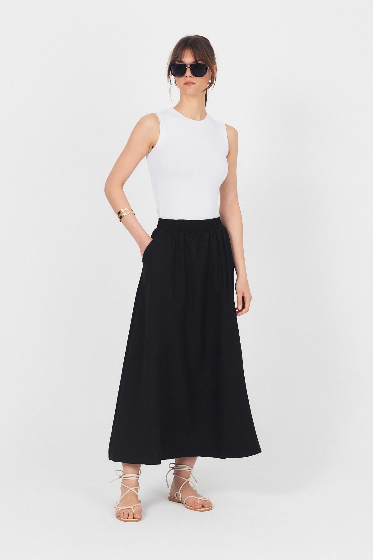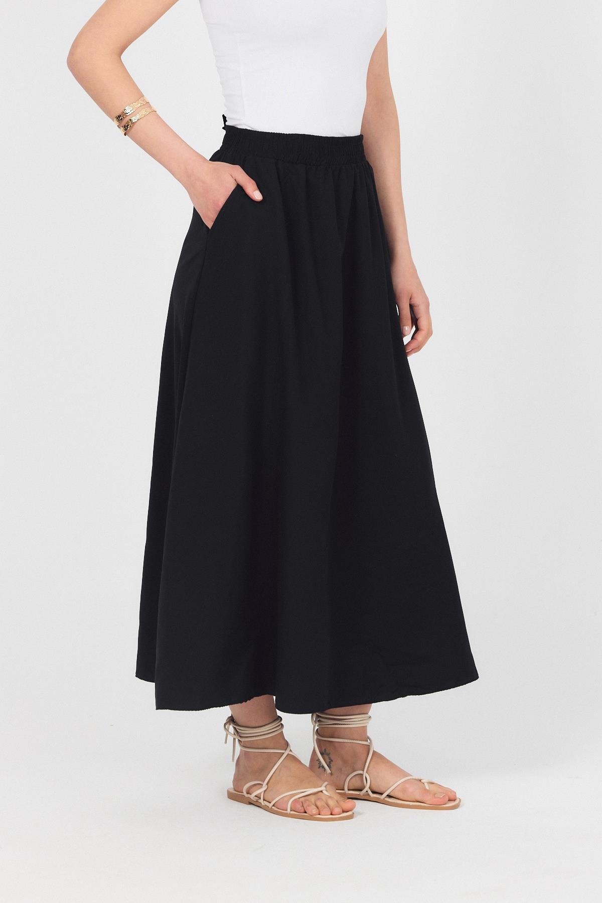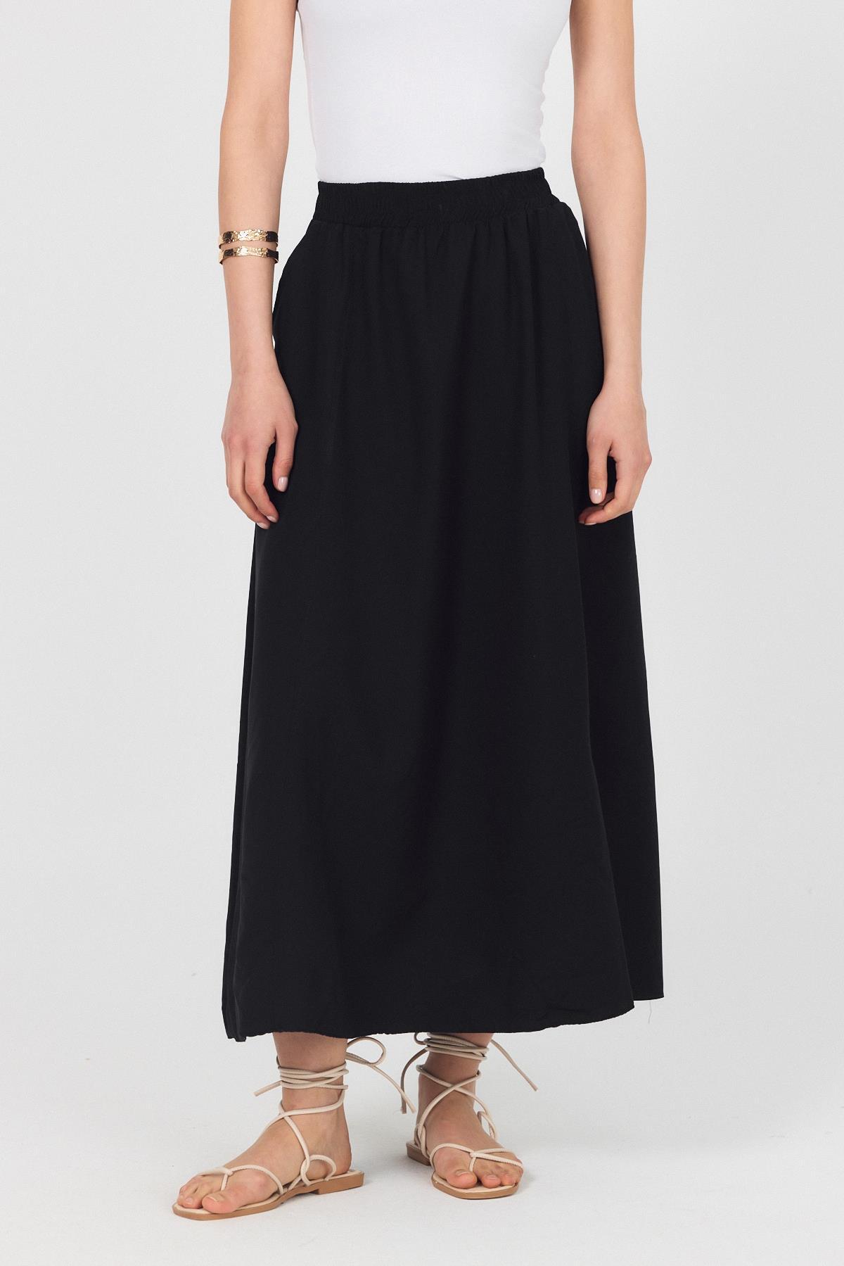 Siyah Bel Lastikli Cepli Kloş Etek 4747A