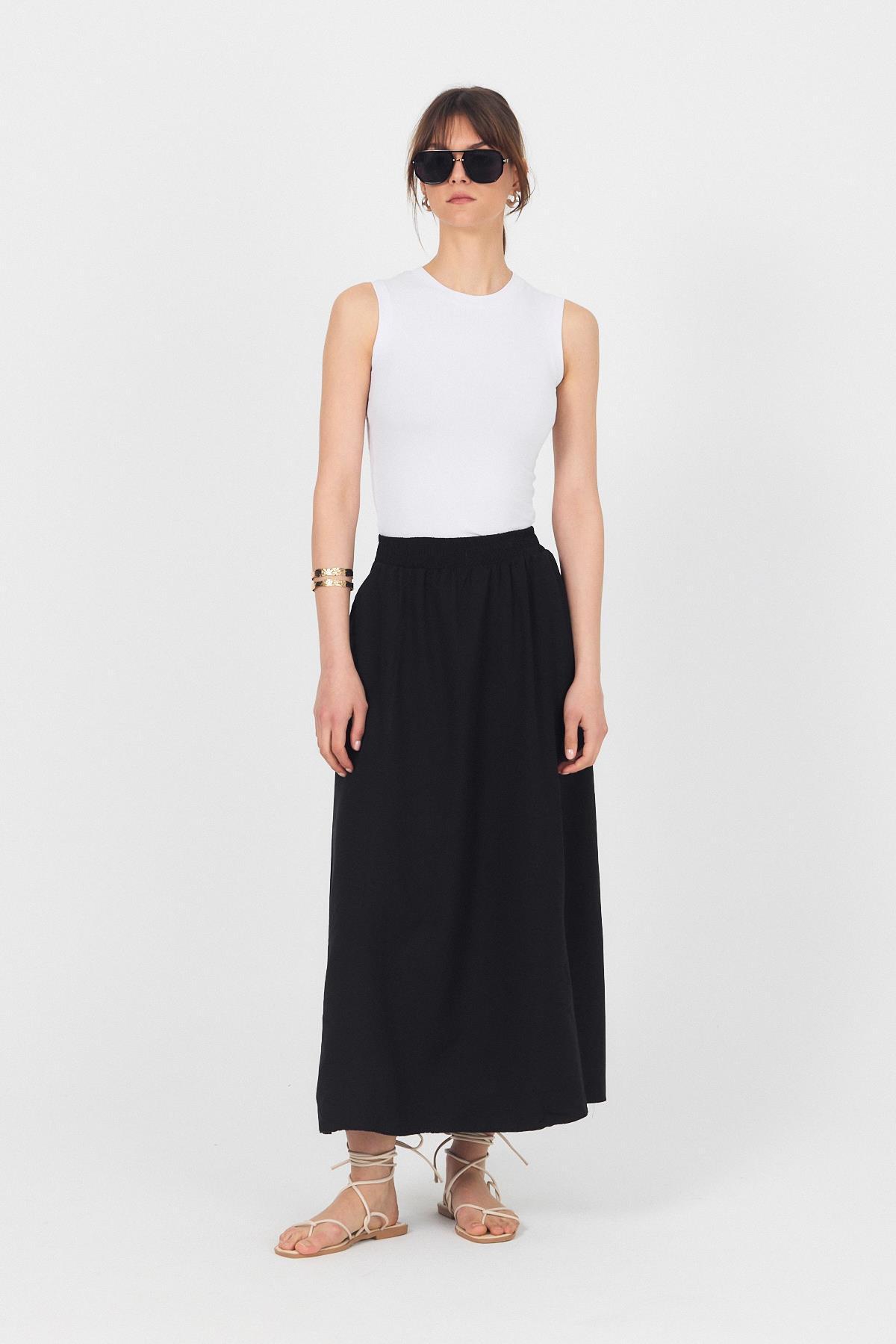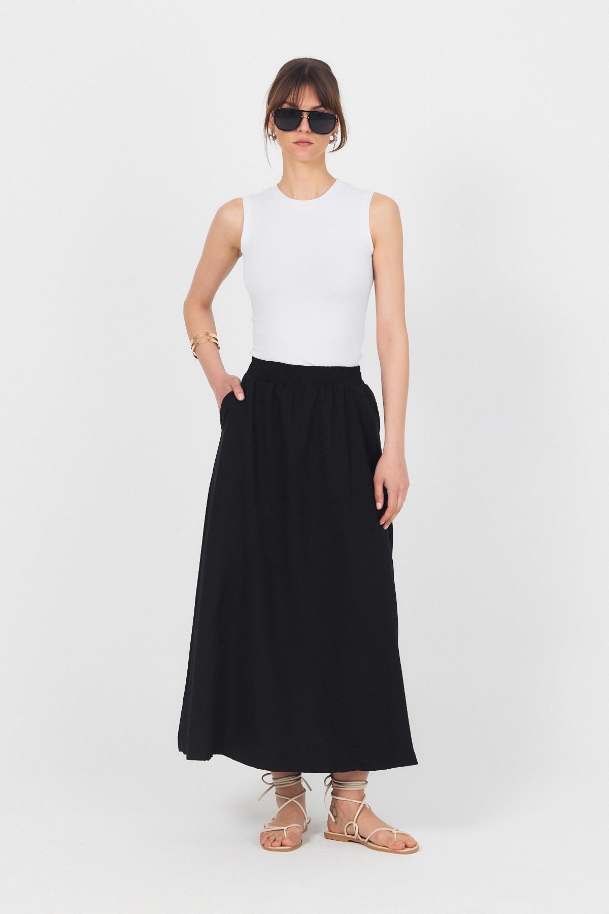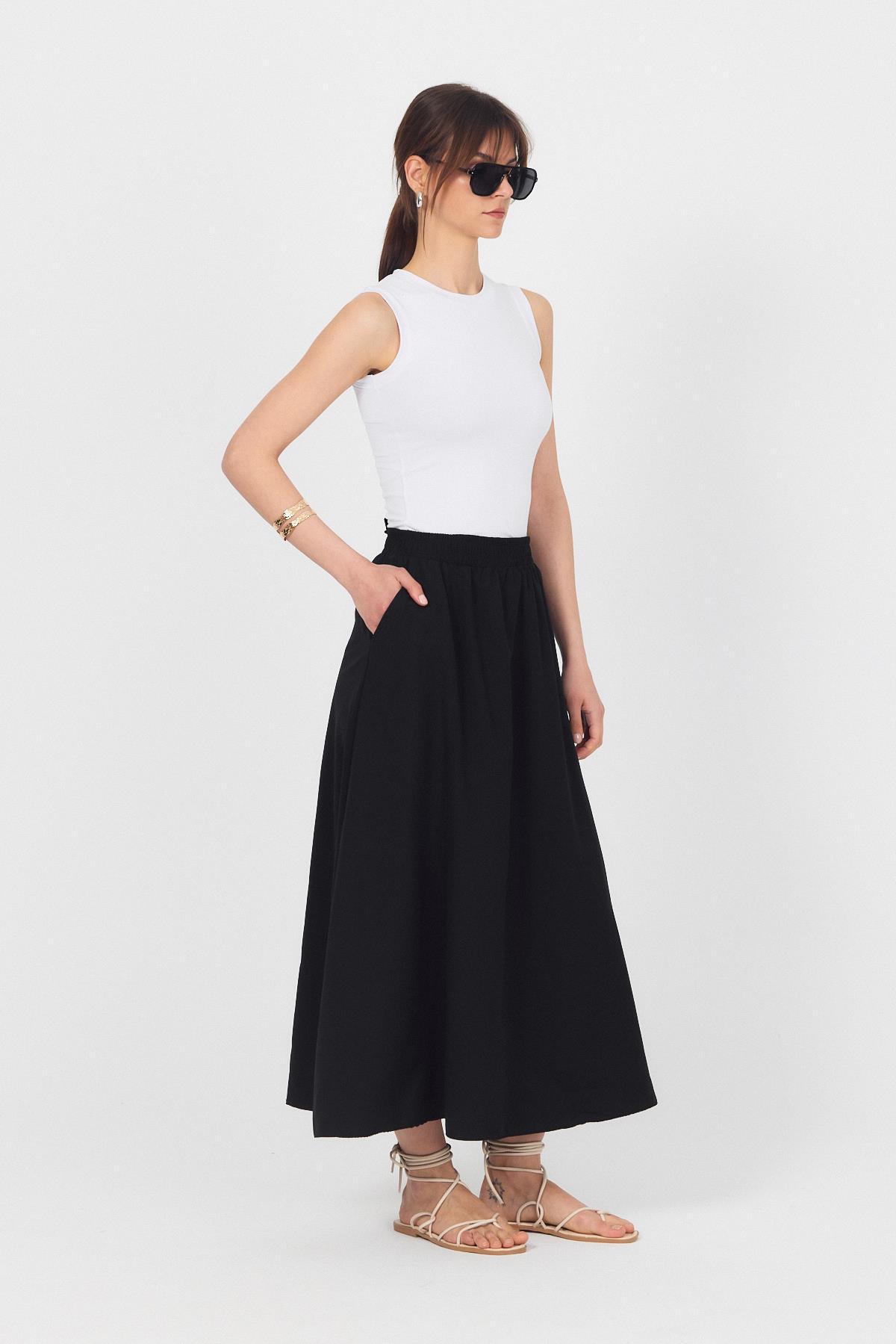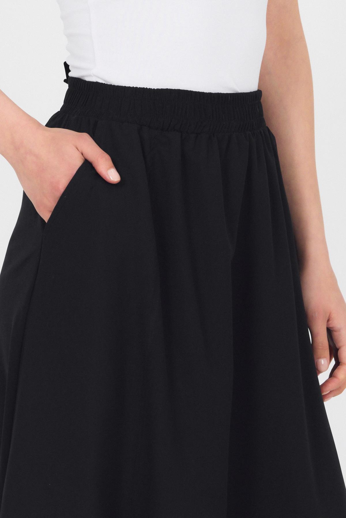 Siyah Bel Lastikli Cepli Kloş Etek 4747A