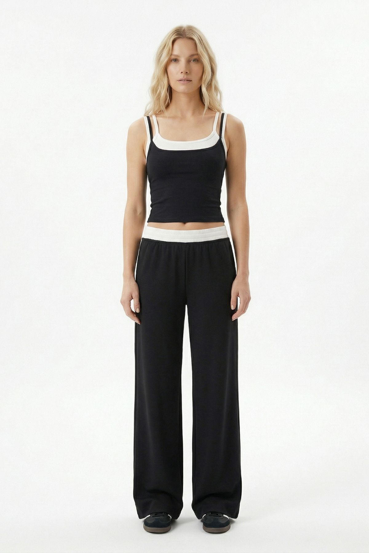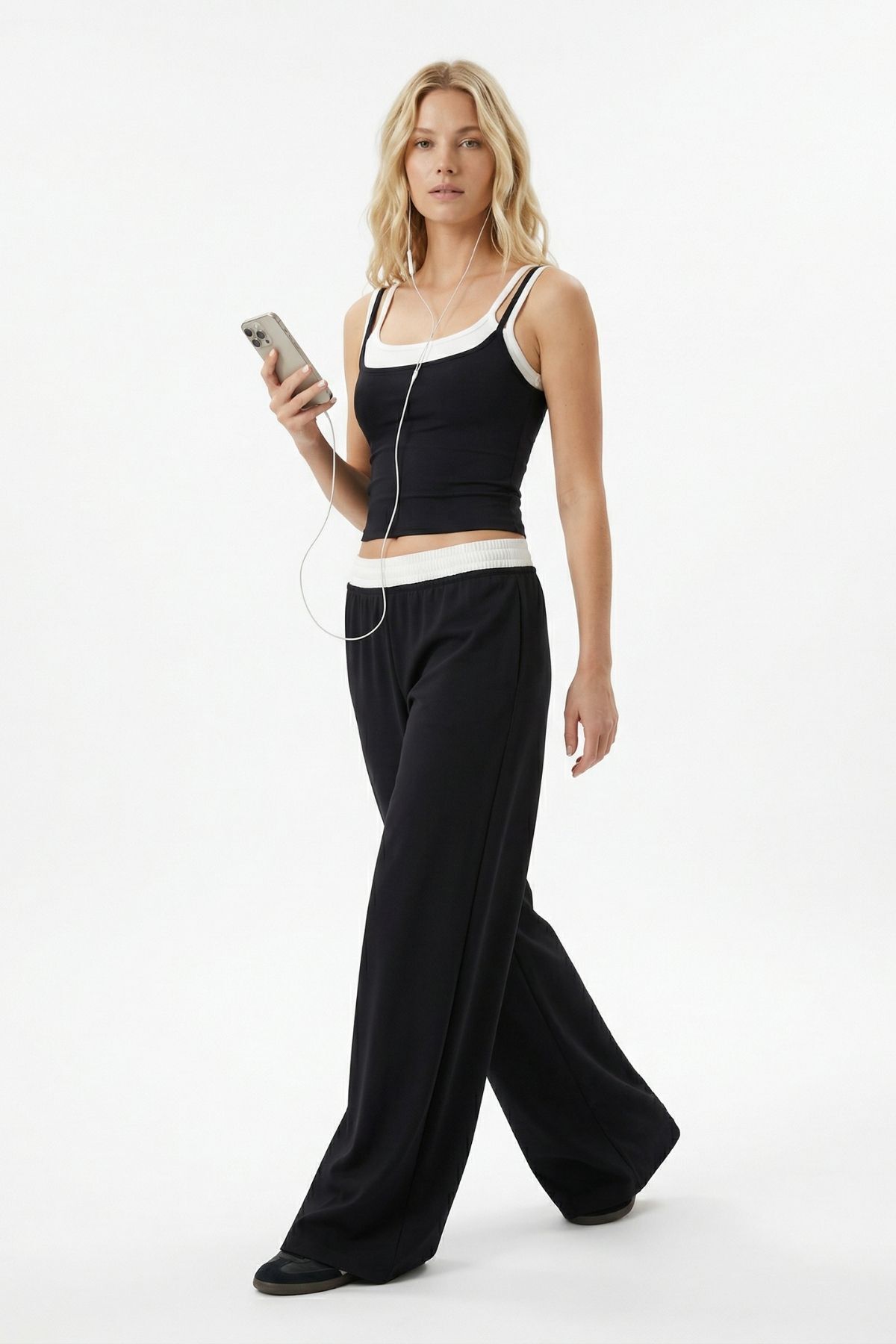 Siyah Bel Lastikli Geniş Paça Pantolon 2530