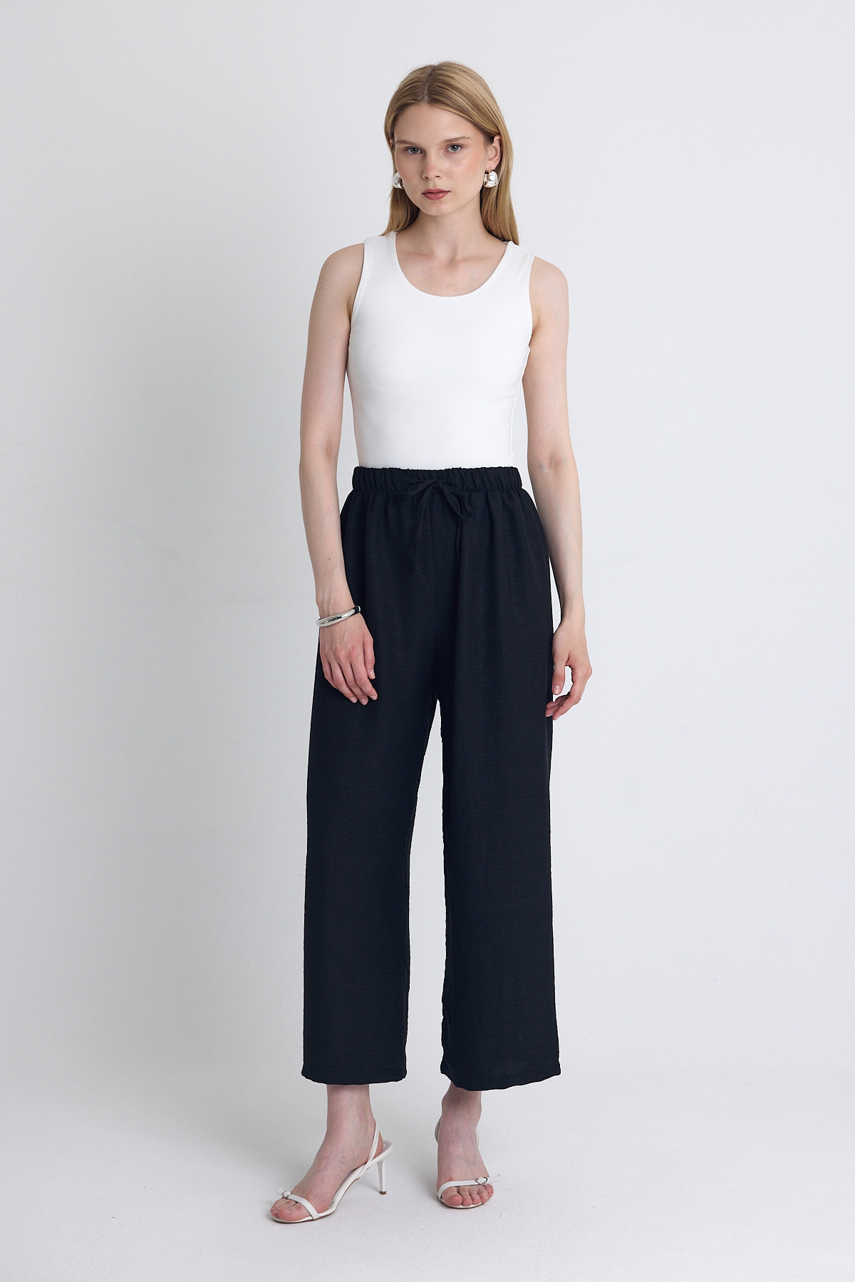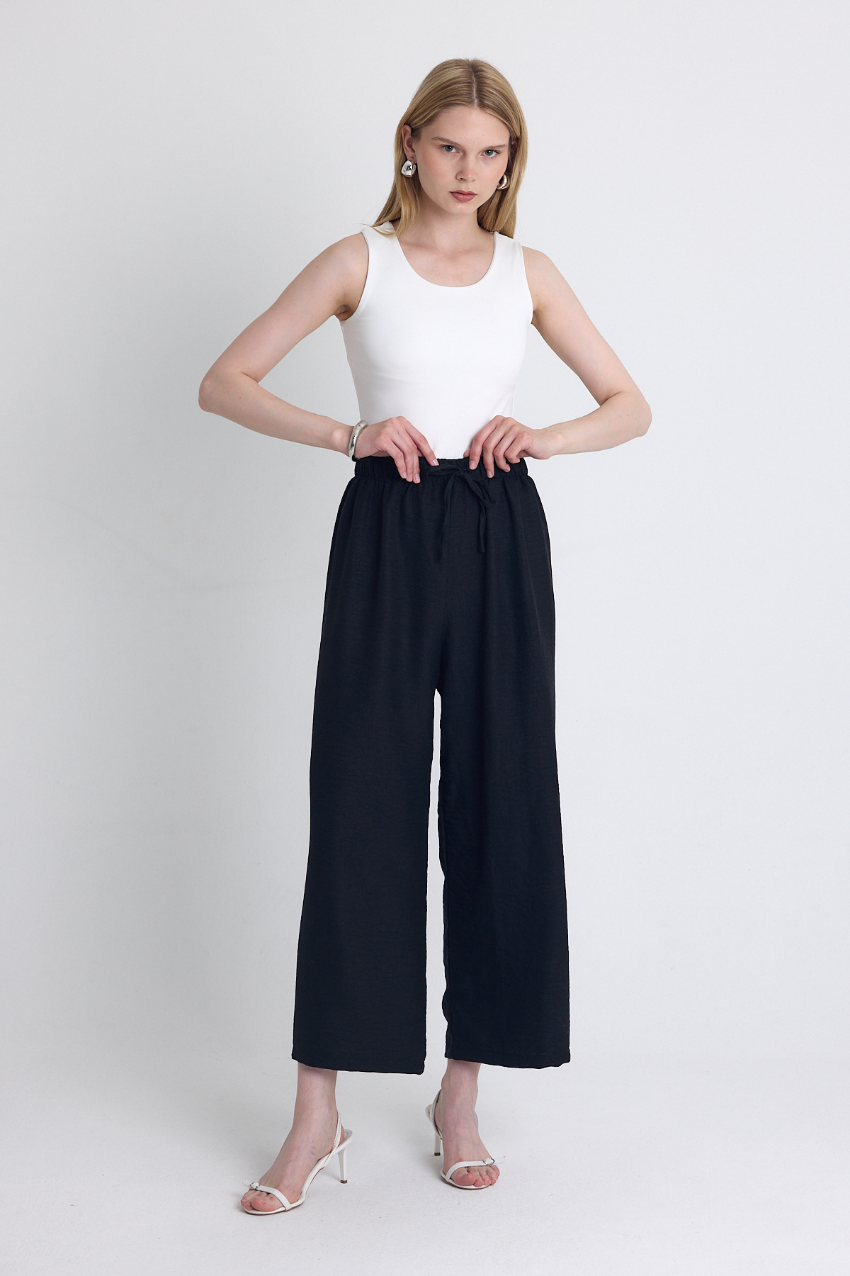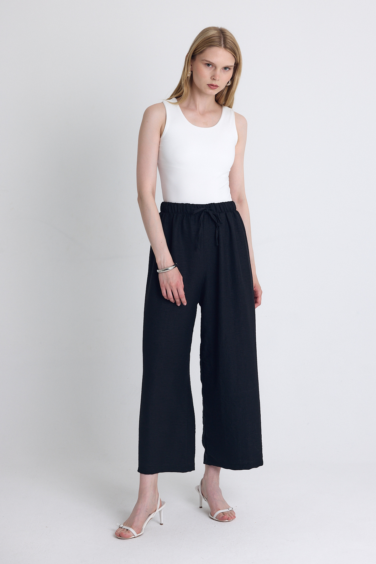 Beyaz Bağlamalı Palazzo Pantolon 3884 - RAYS