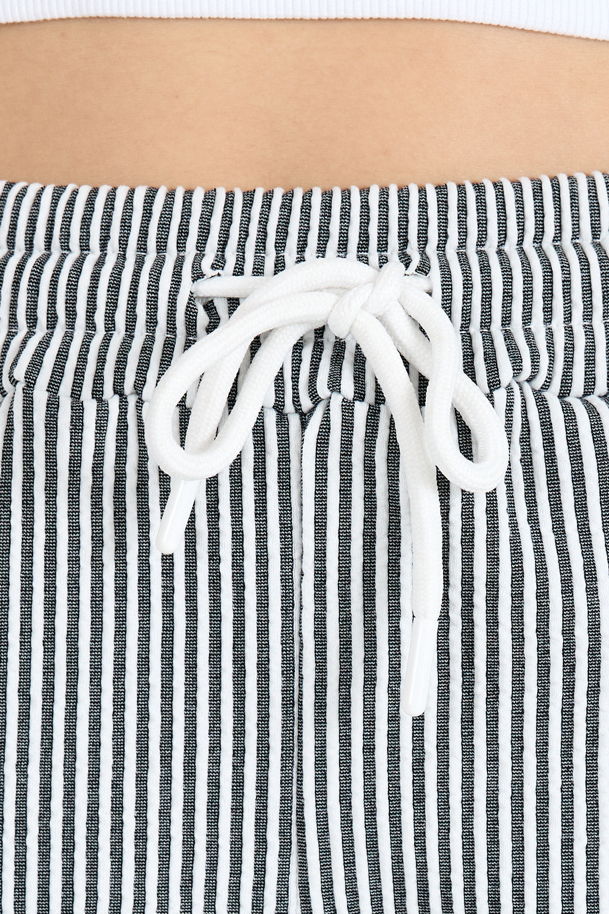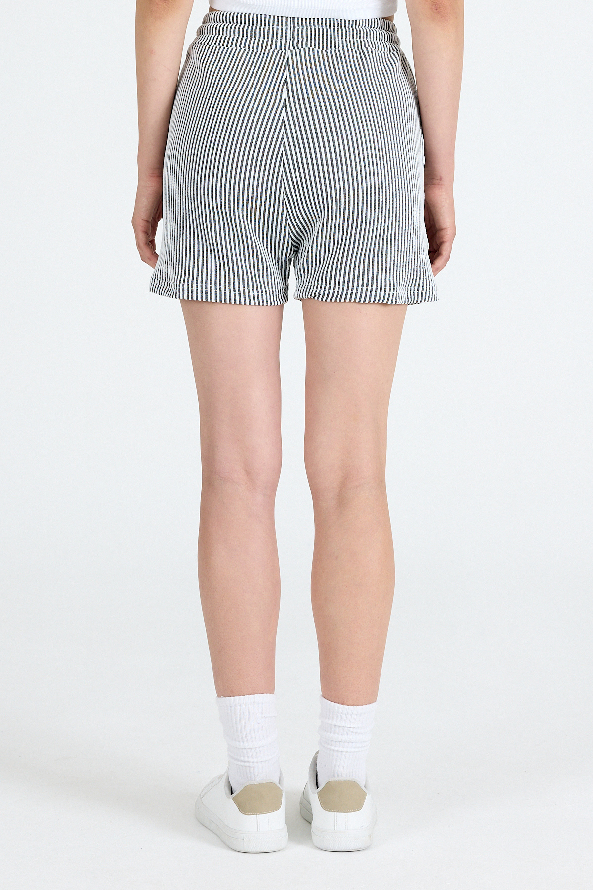 Siyah Beli Lastikli Çizgili Dokuma Şort 4094