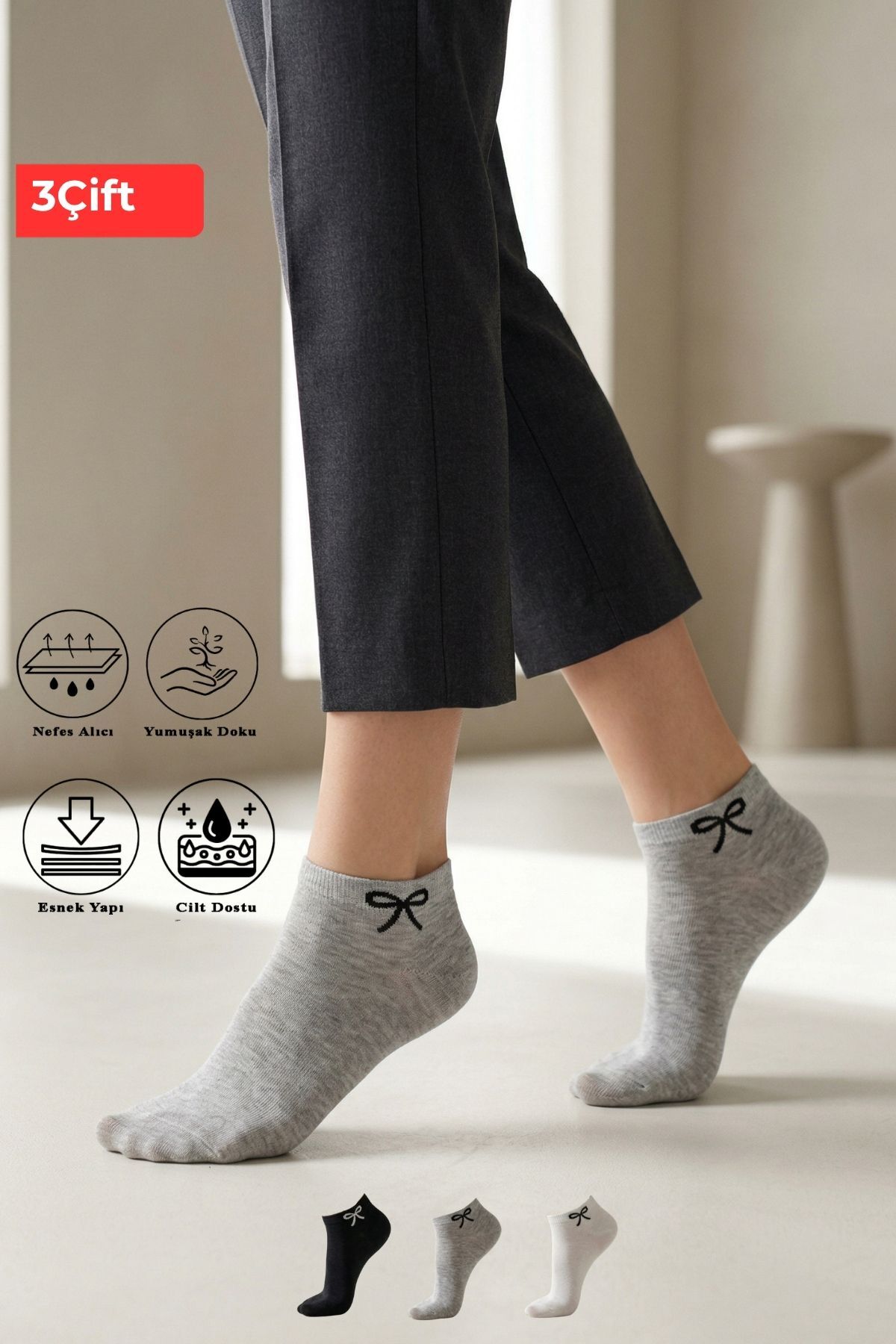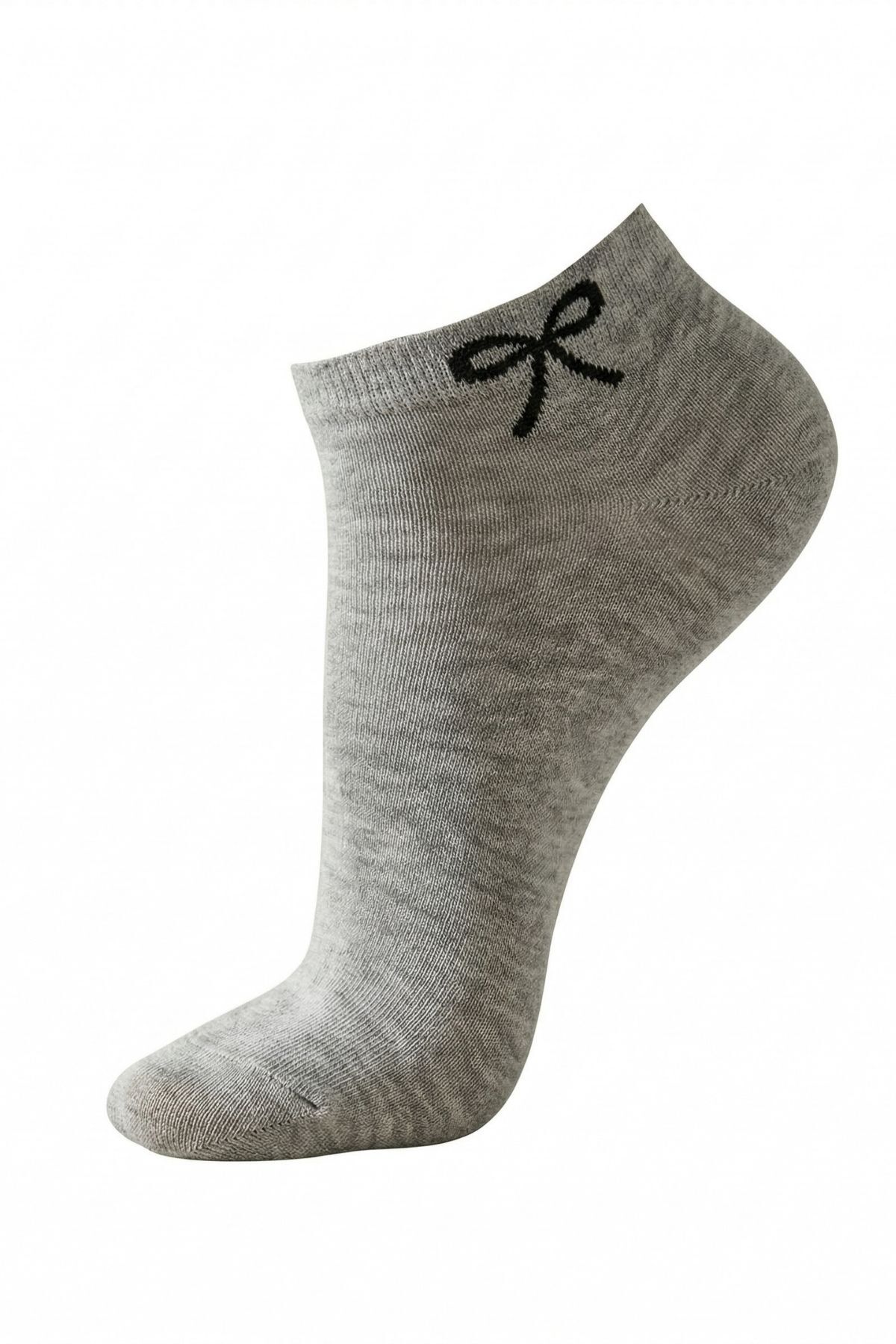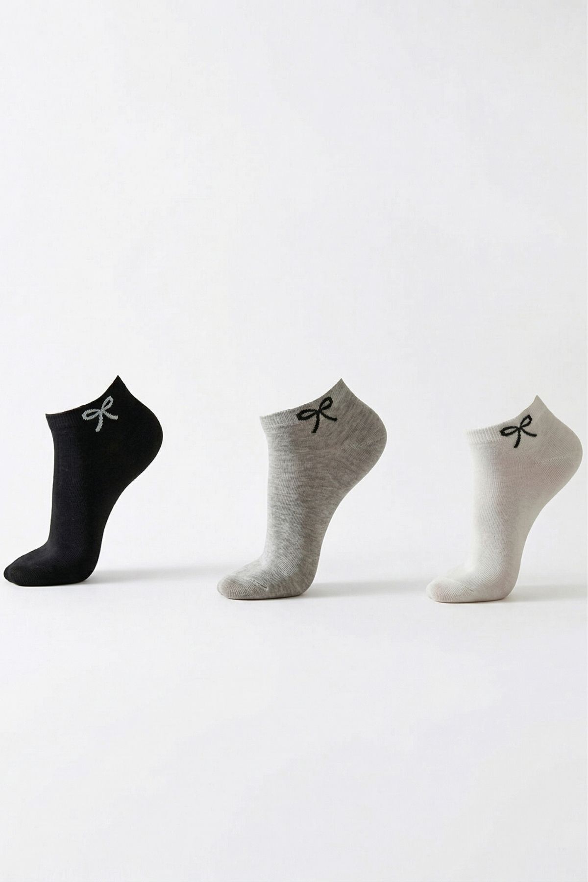 Siyah-Beyaz-Gri Kurdele Desen 3'lü Patik Çorap 4008