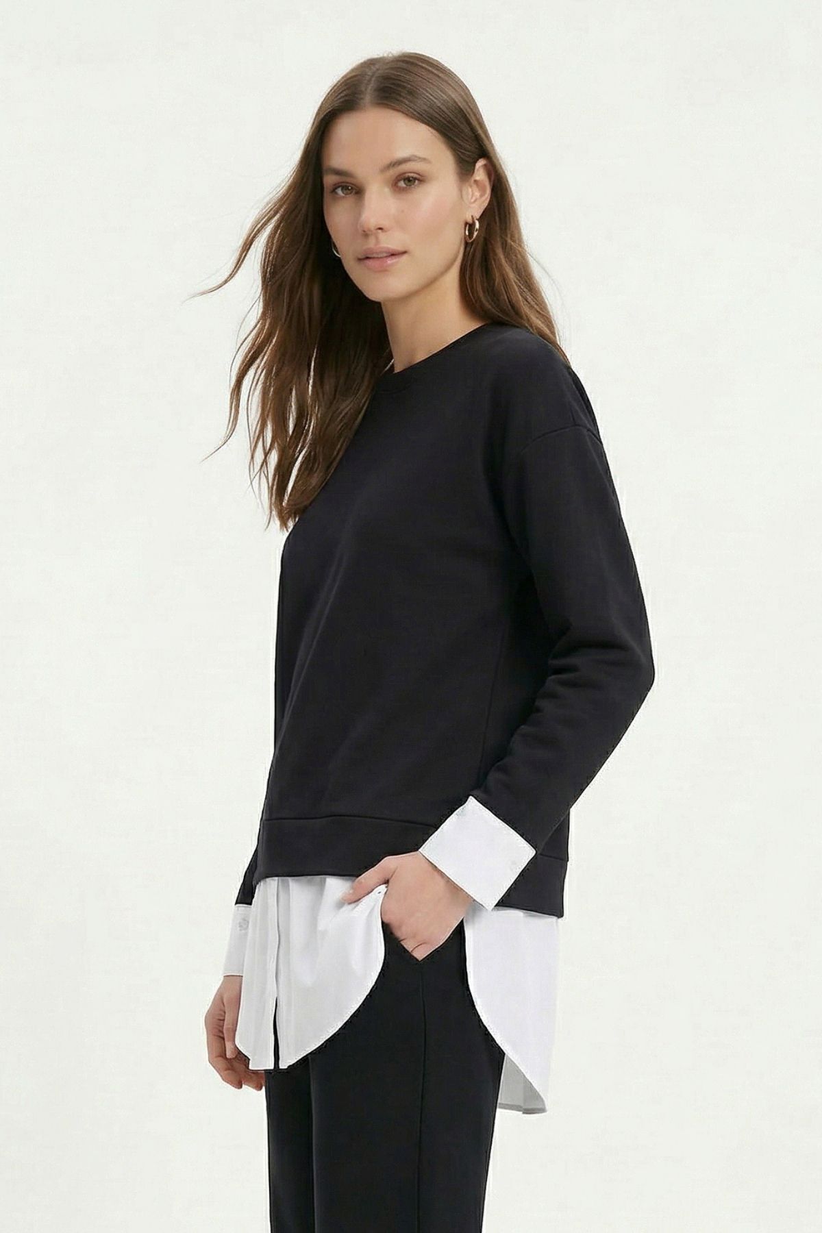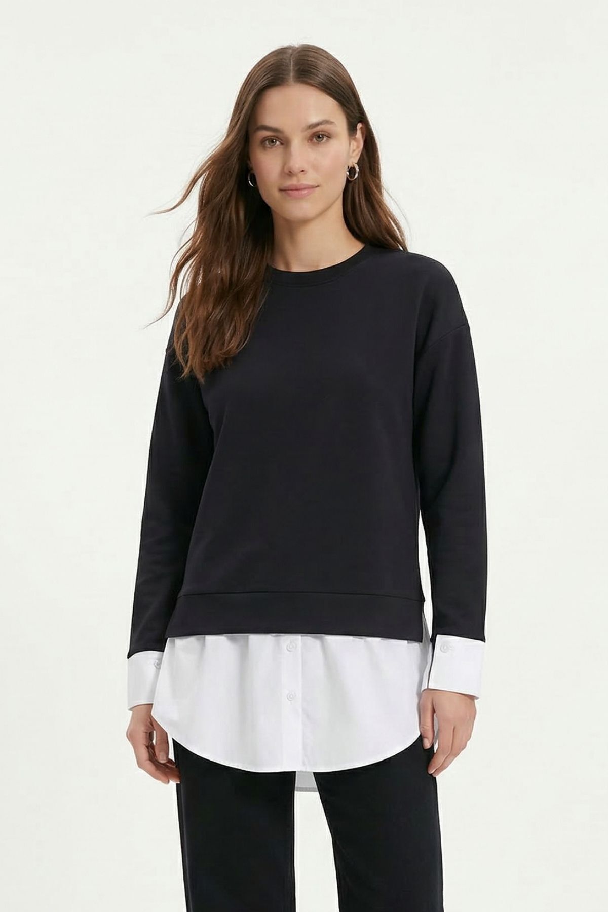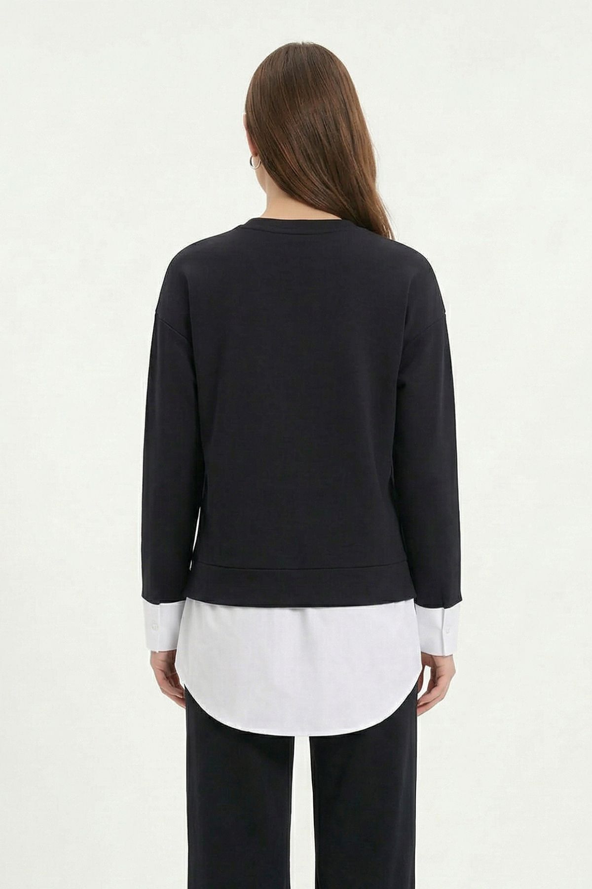 Siyah Bisiklet Yaka Garnili Bluz 8375