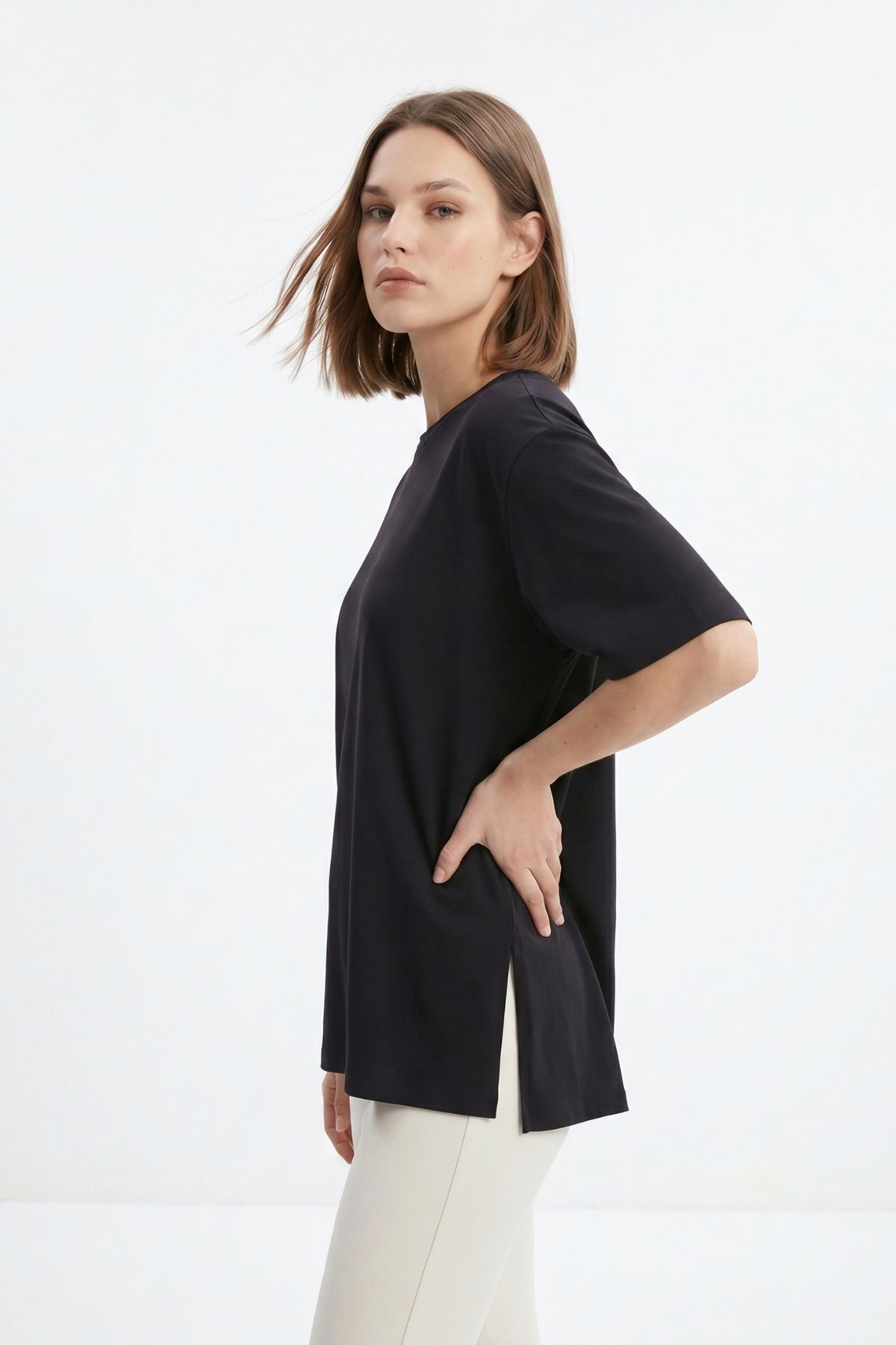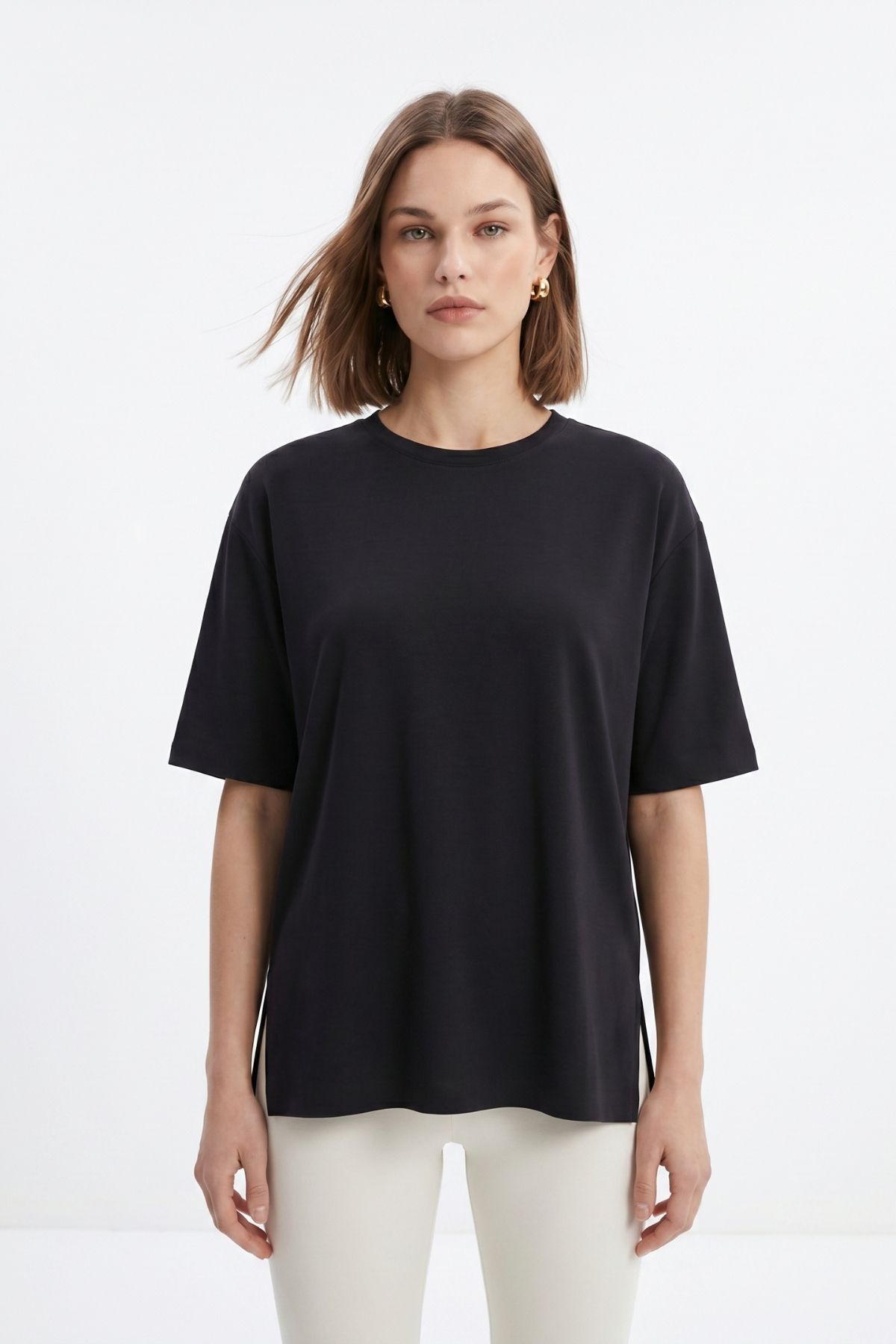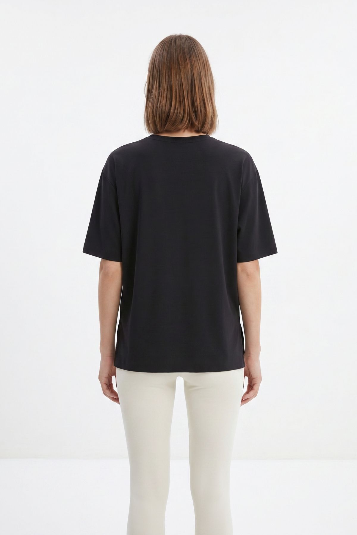 Siyah Bisiklet Yaka Salaş Tişört 0474