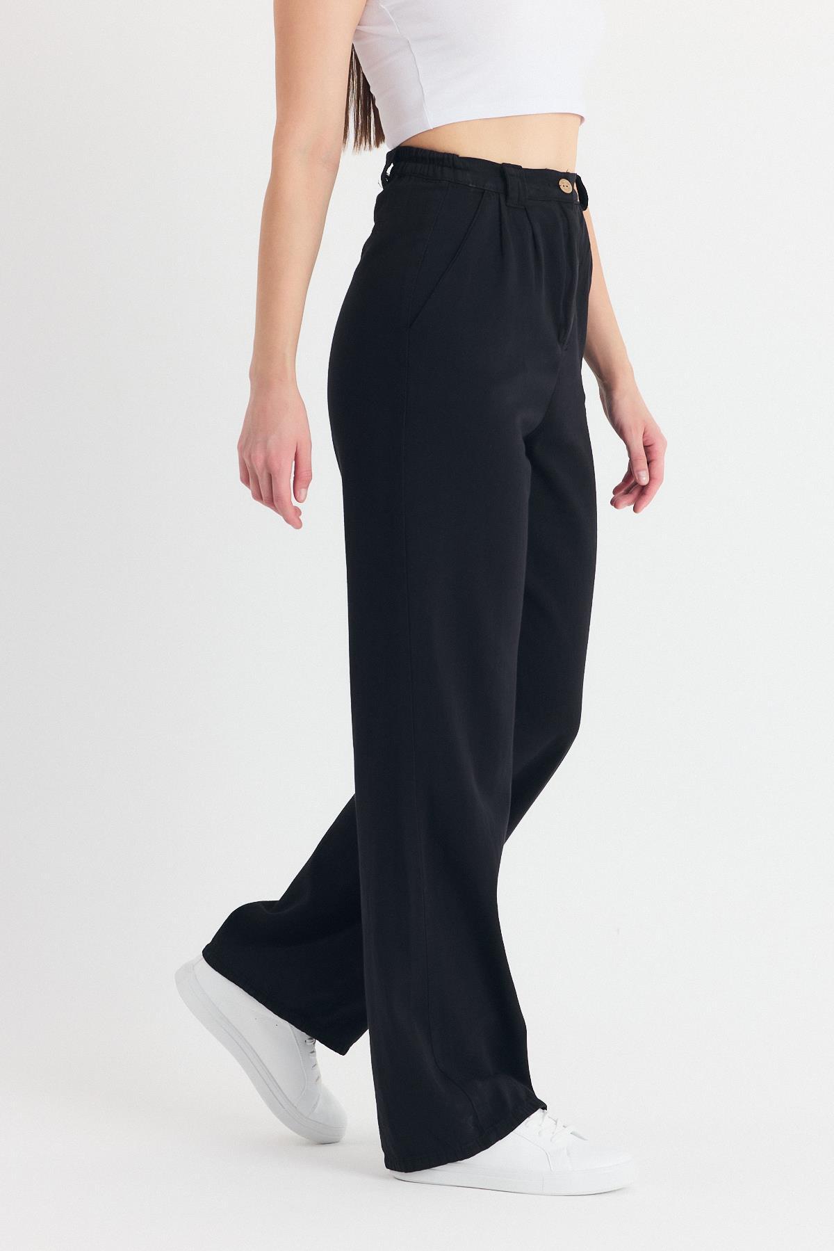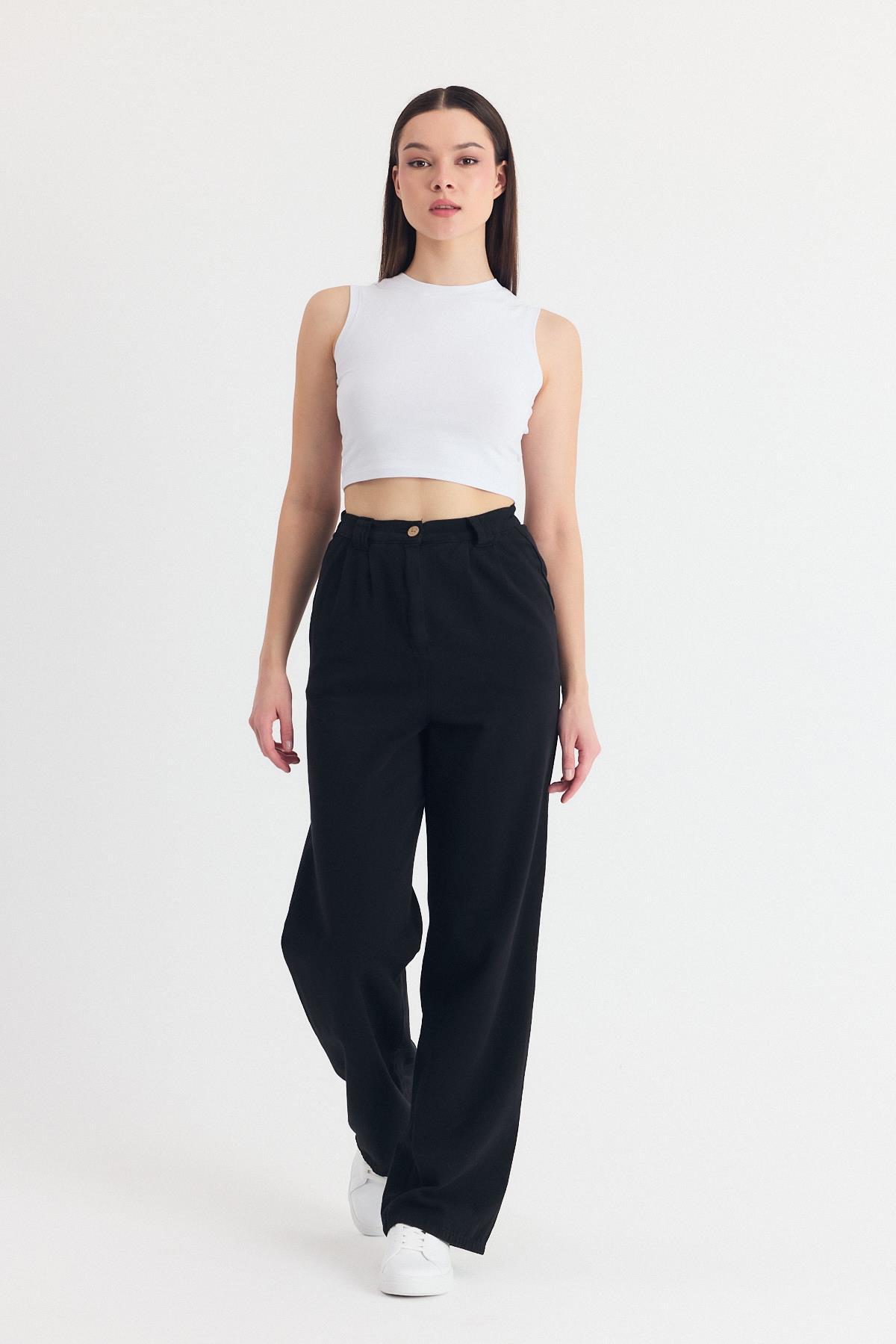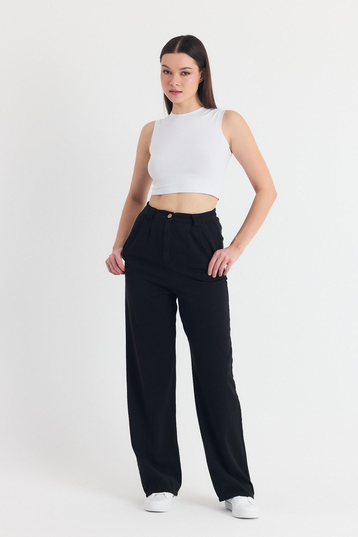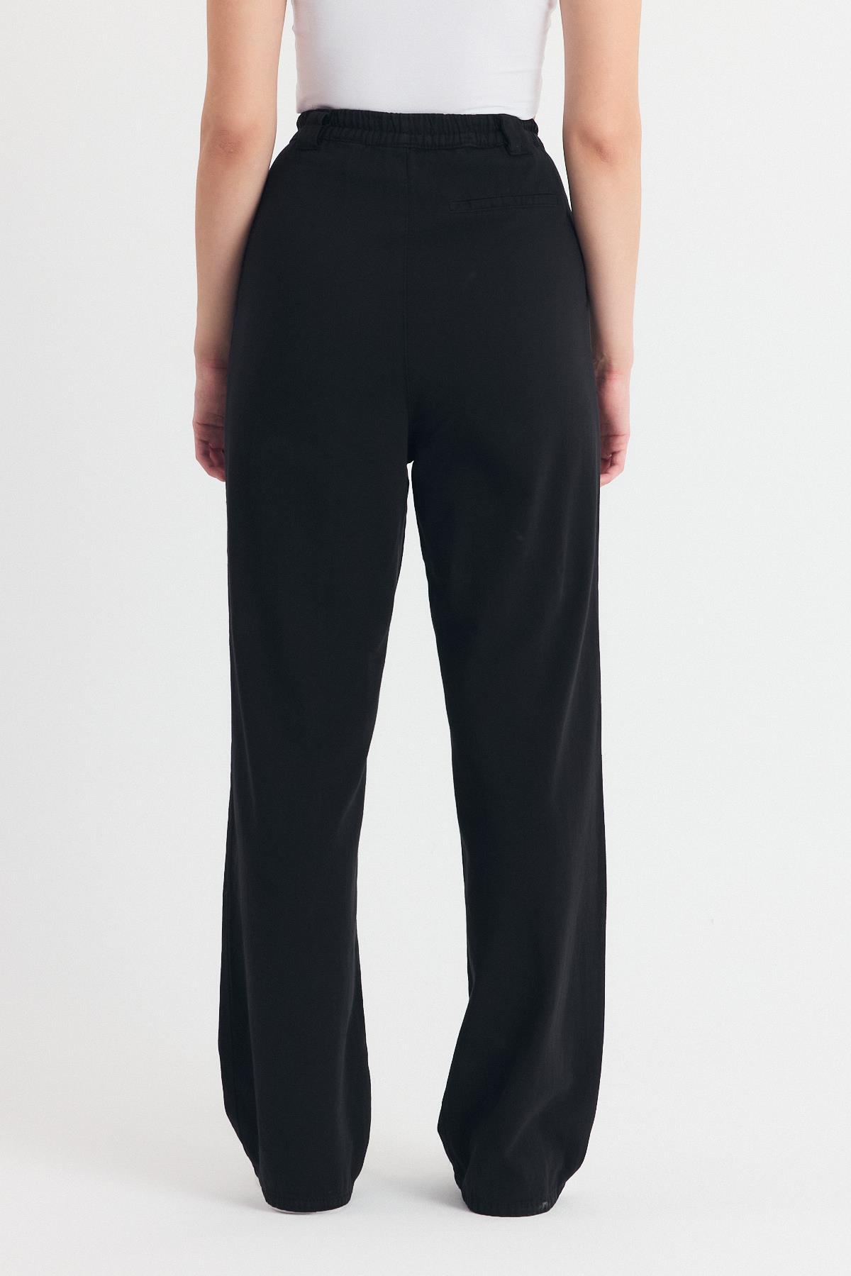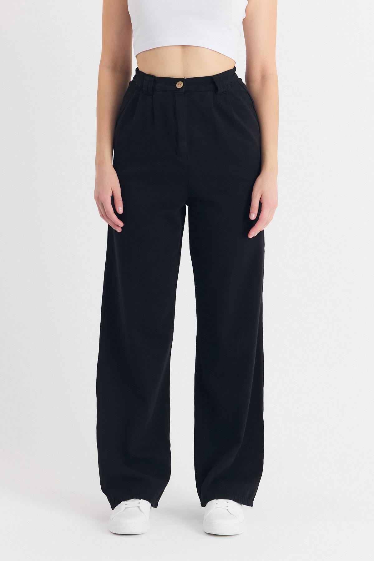 Siyah Pileli Geniş Paça Pantolon 3867