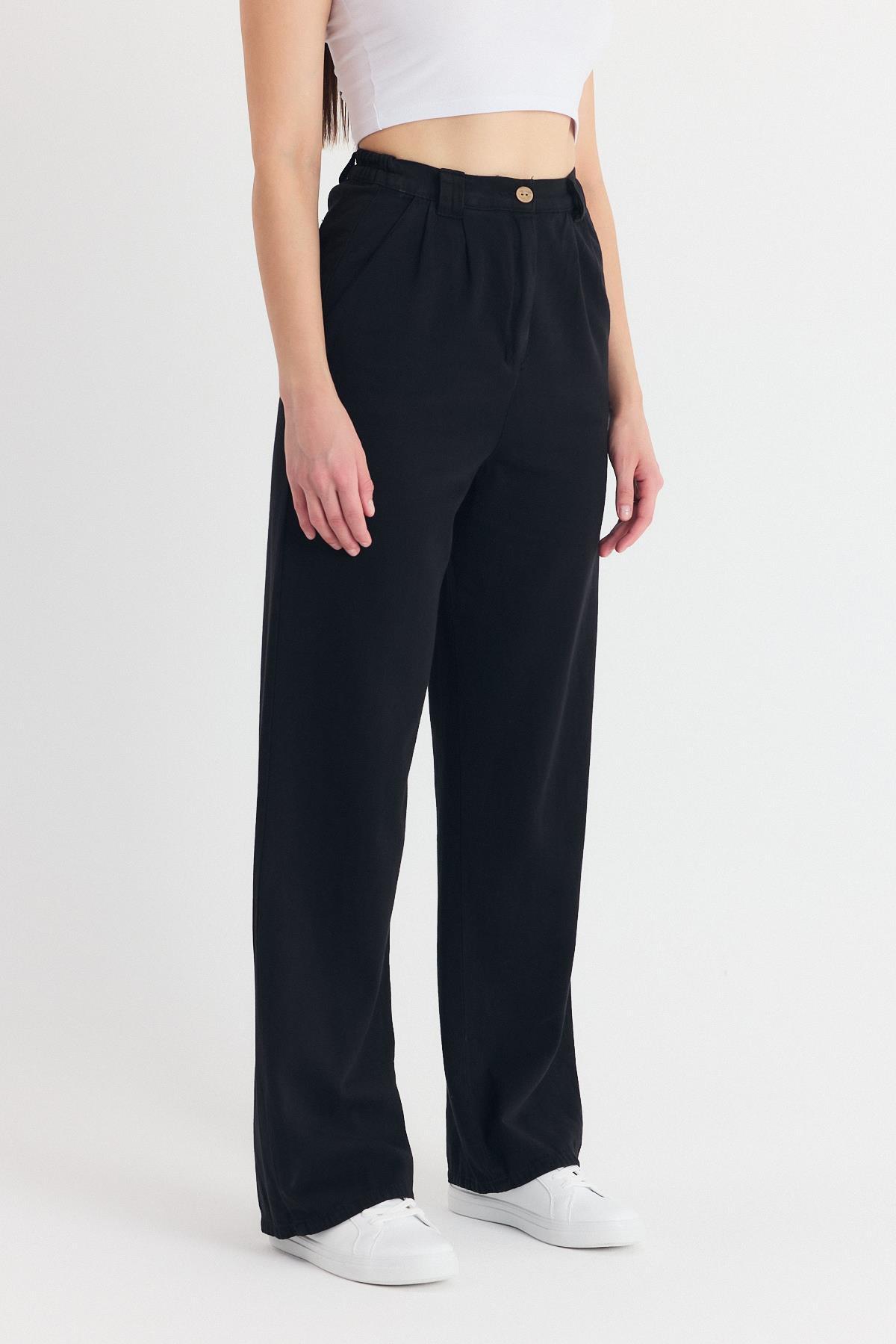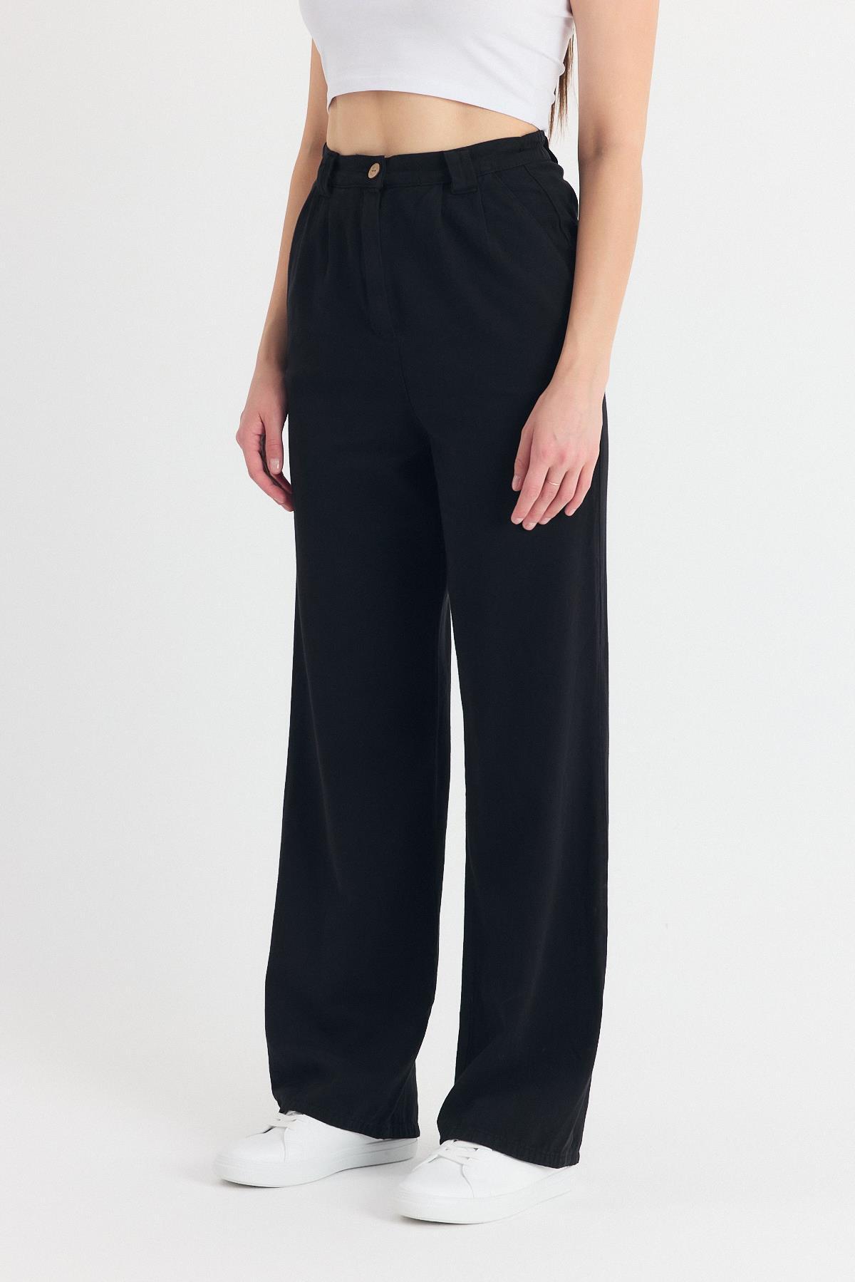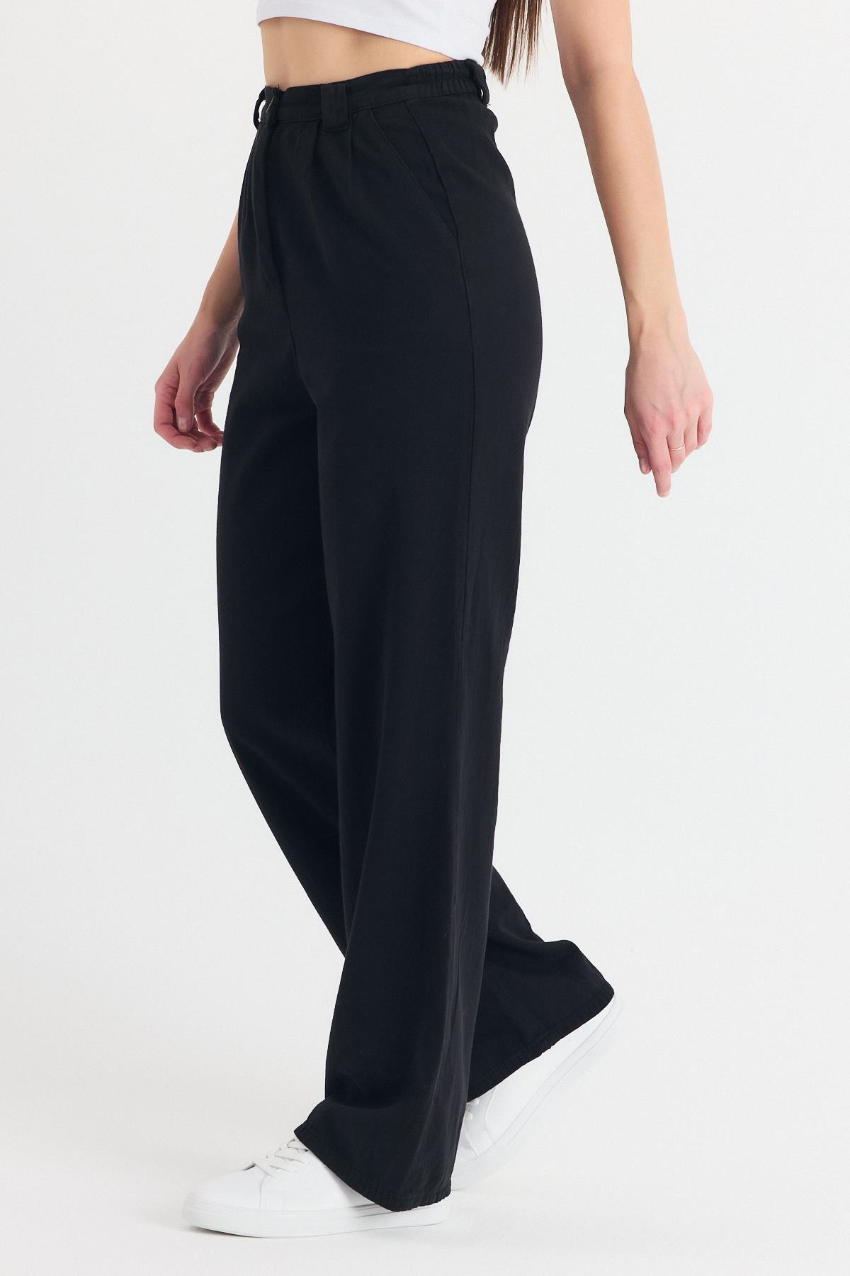 Siyah Pileli Geniş Paça Pantolon 3867 - RAYS Siyah Pileli Geniş Paça Pantolon 3867 - RAYS (1)