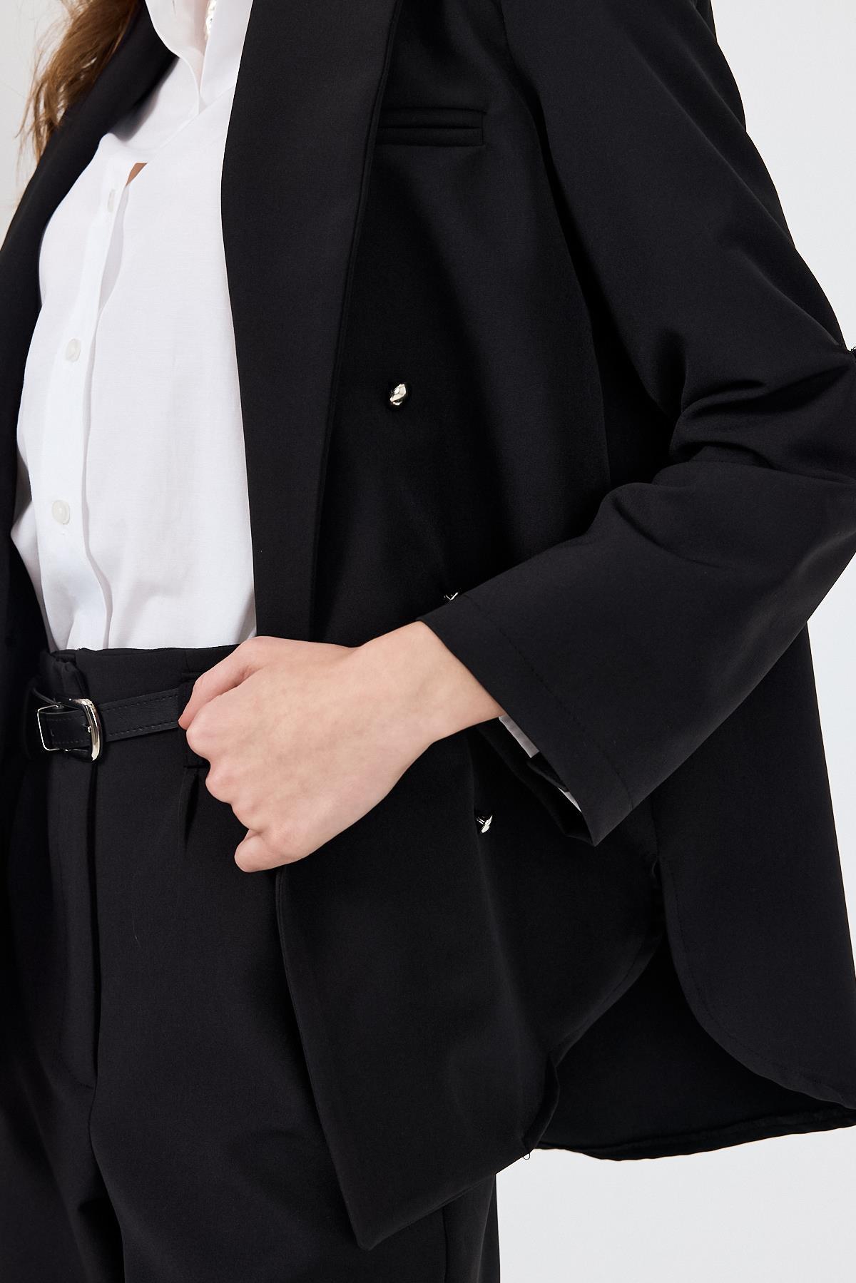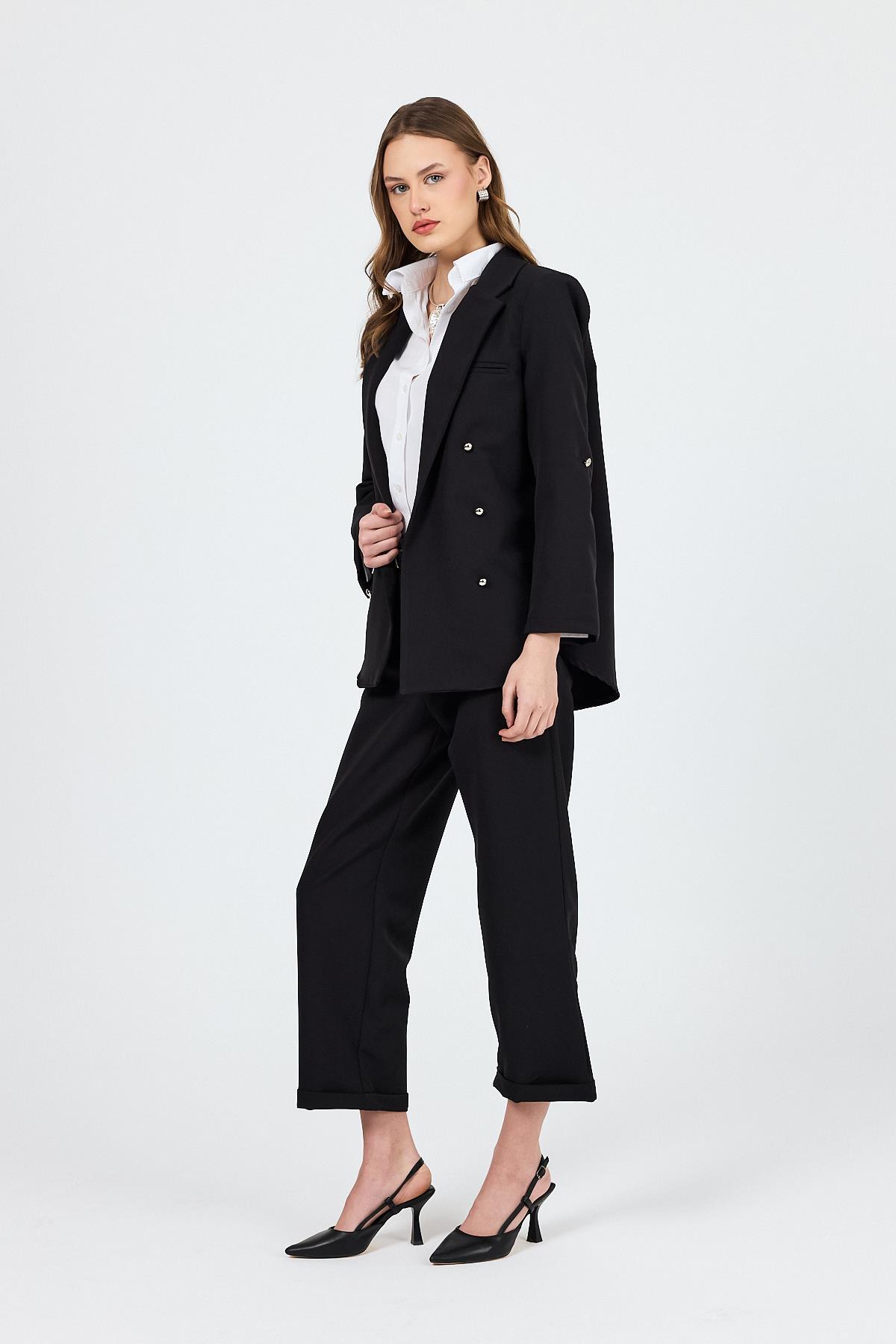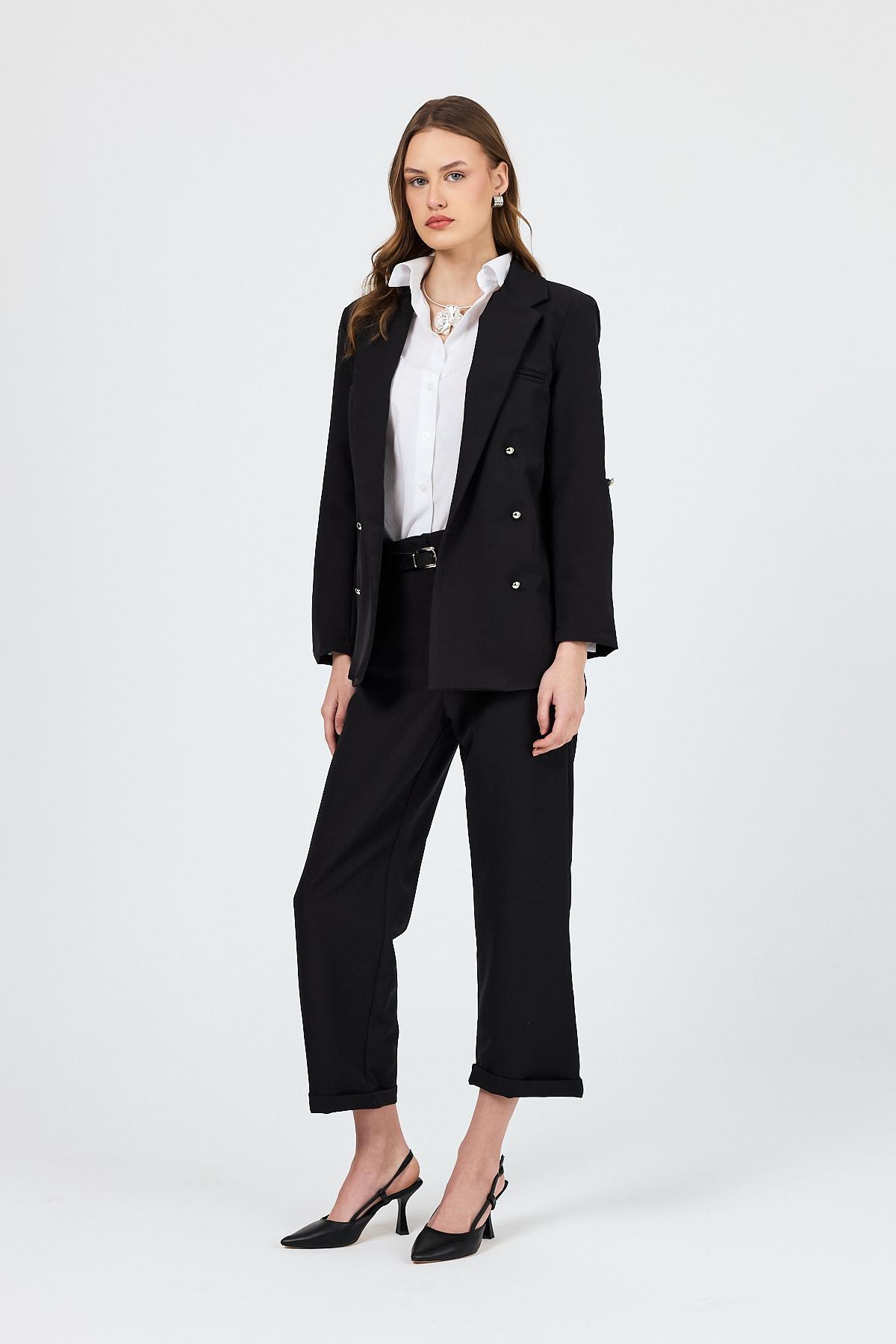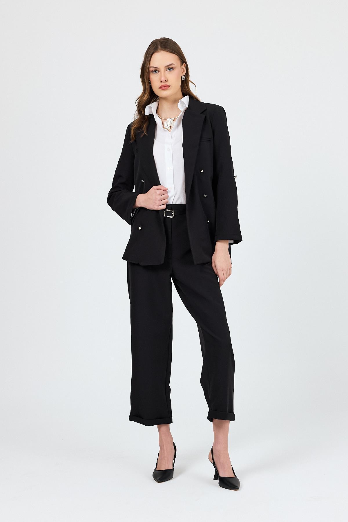 Siyah Çift Düğmeli Kemerli Takım 6670A