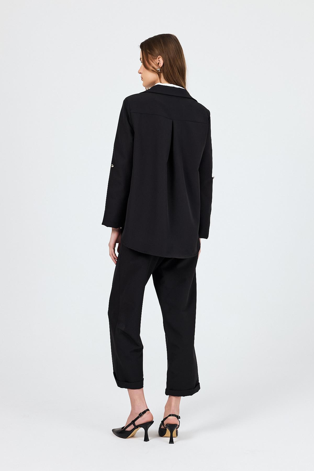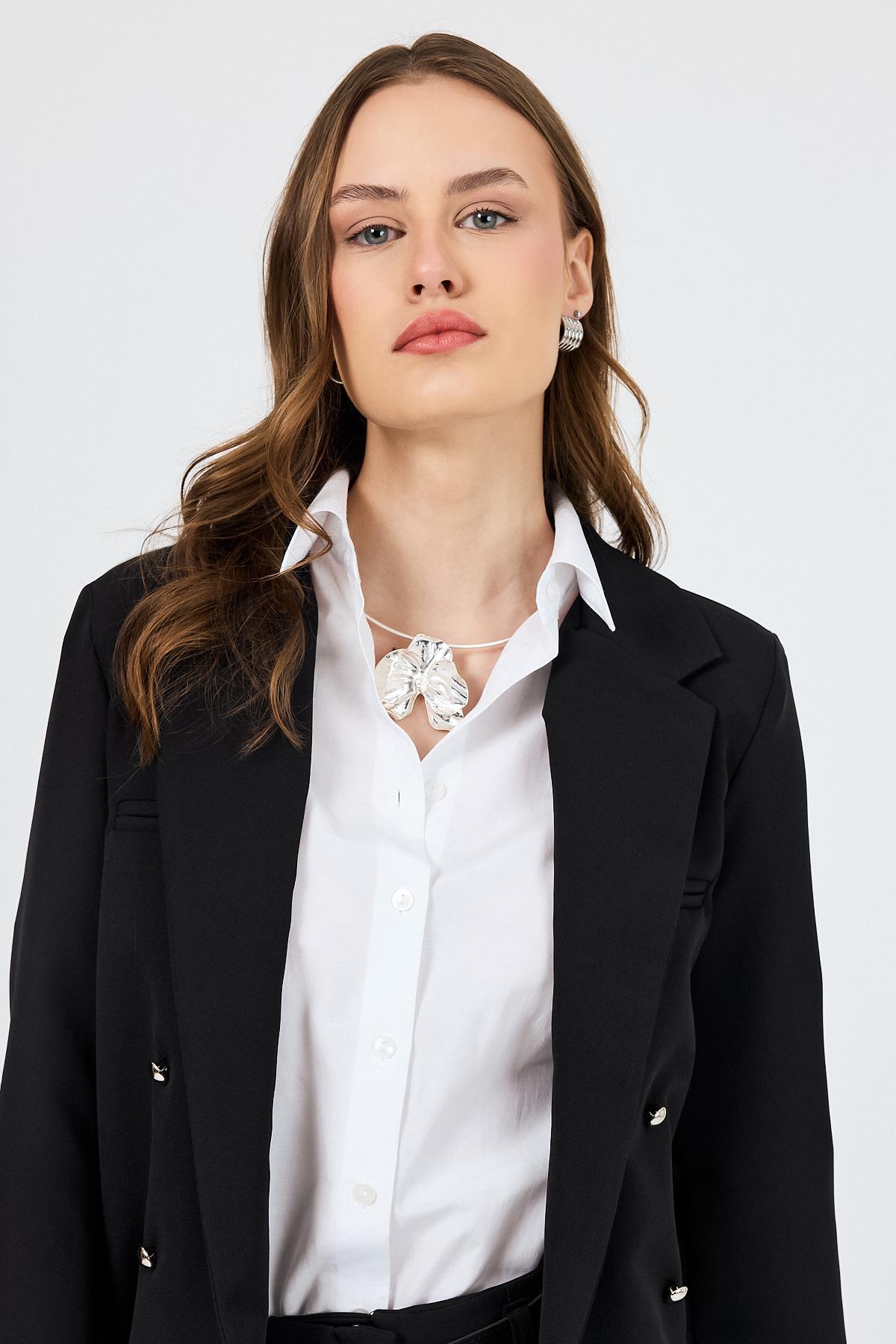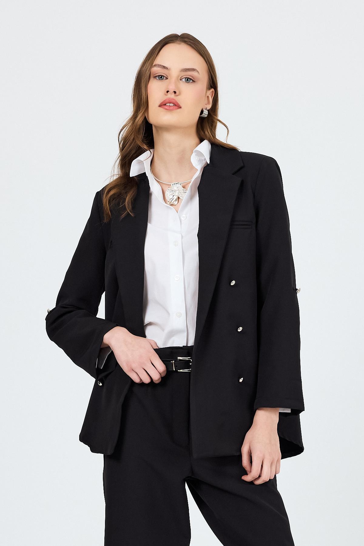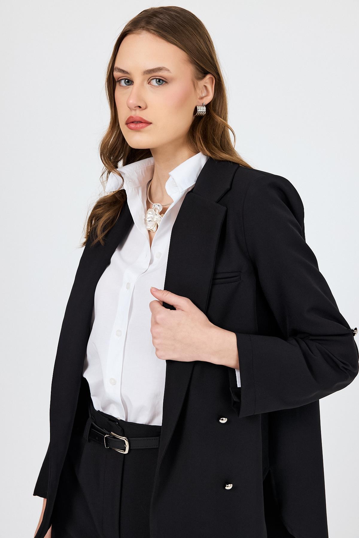 Siyah Çift Düğmeli Kemerli Takım 6670A