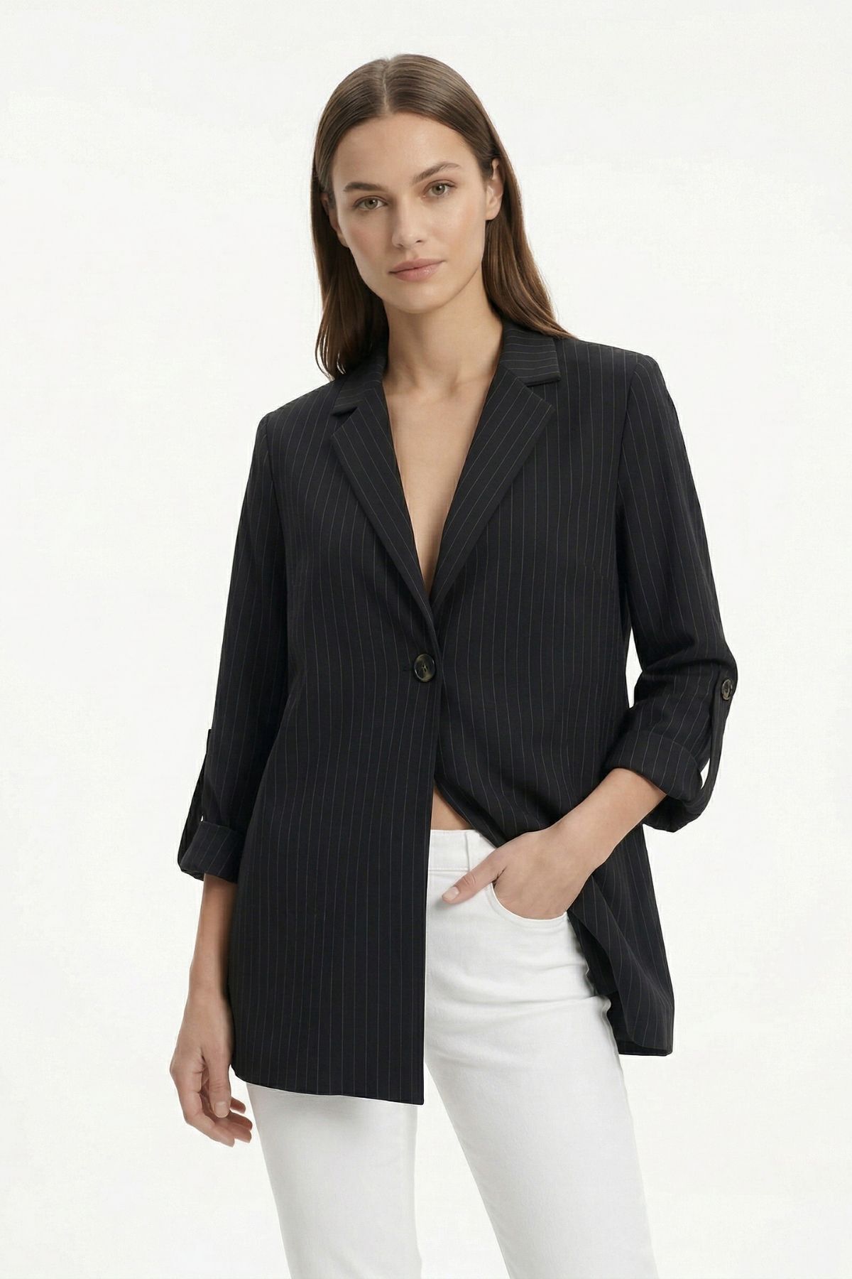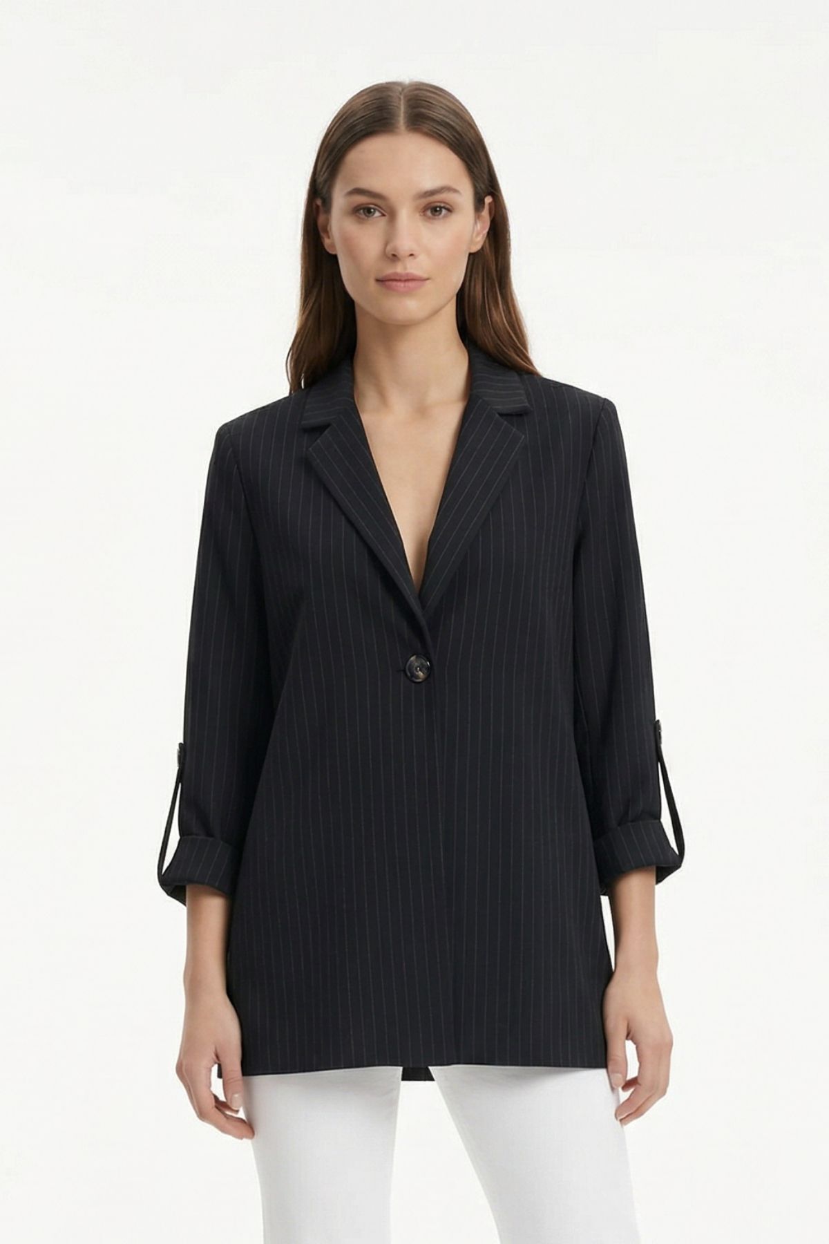 Siyah Çizgili Kol Apolet Detay Ceket 1616