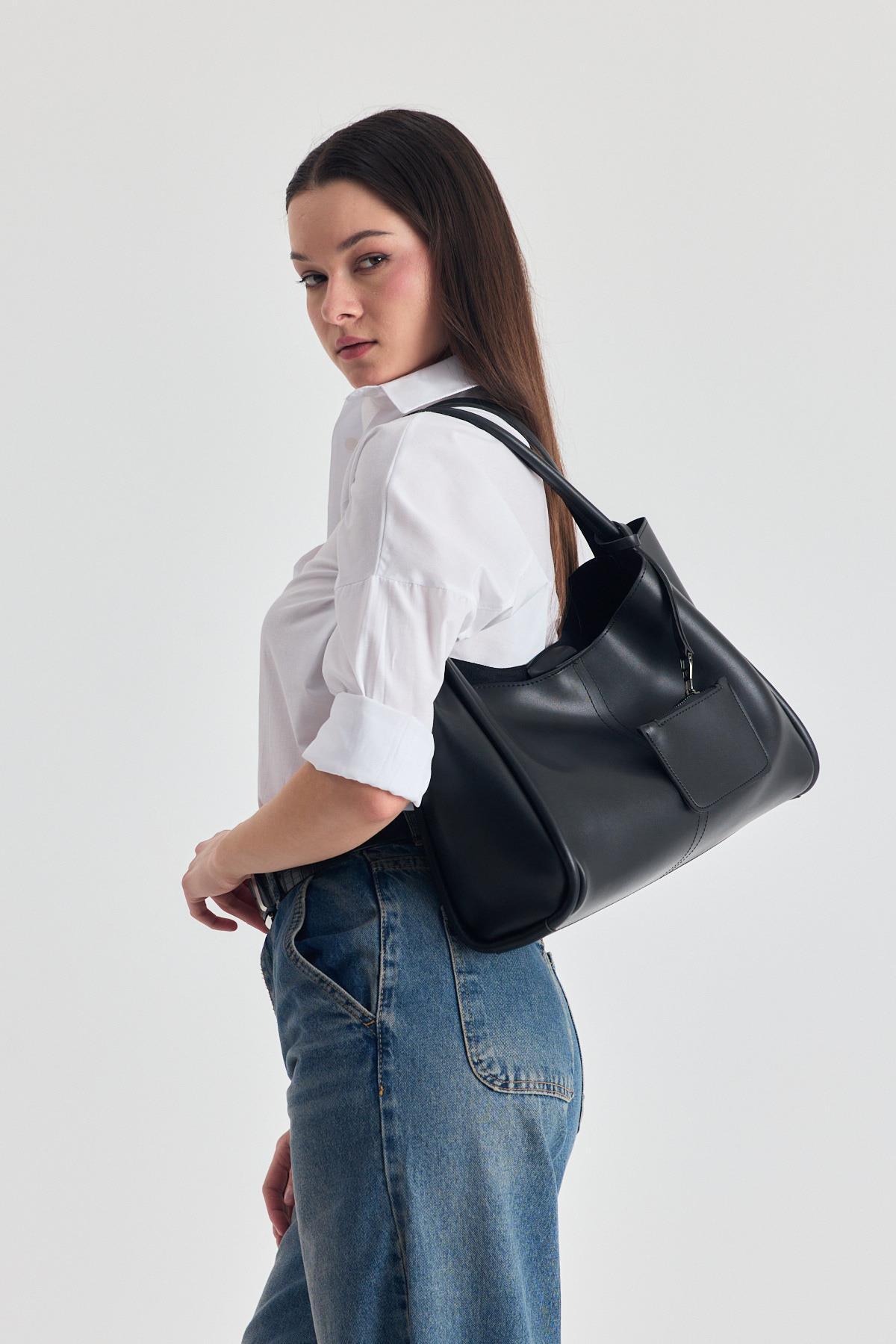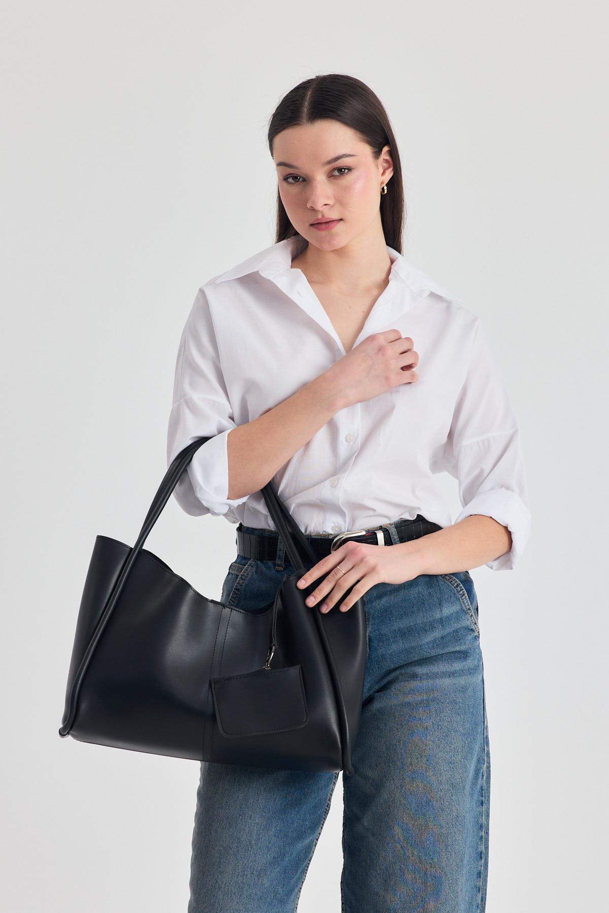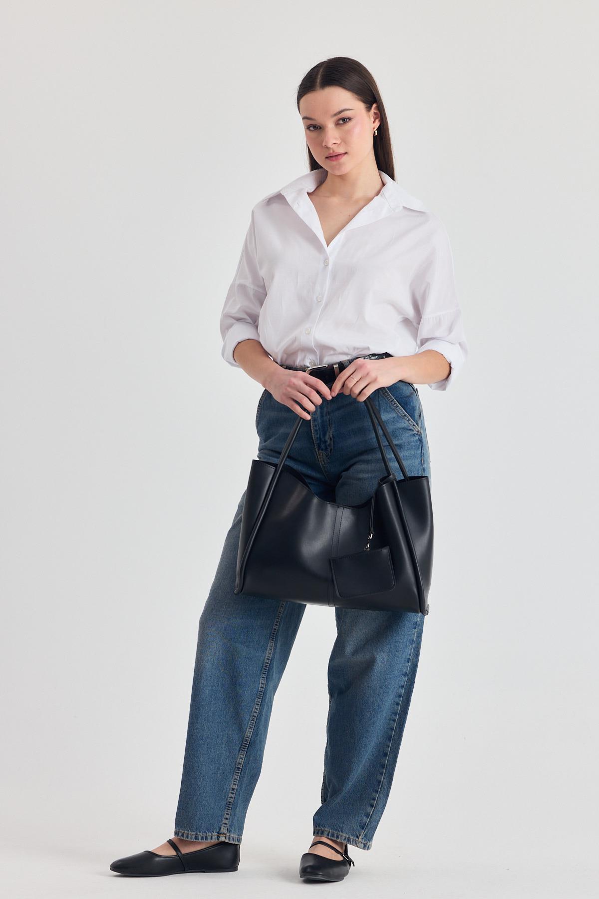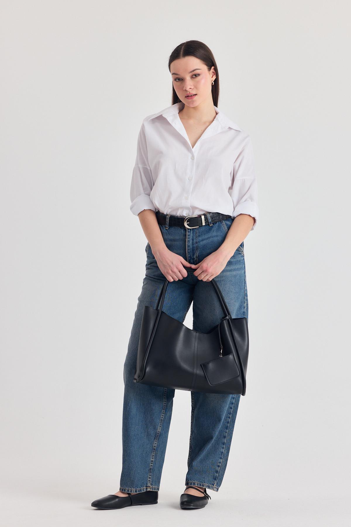 Siyah Cüzdanlı Büyük Omuz Çantası 3028