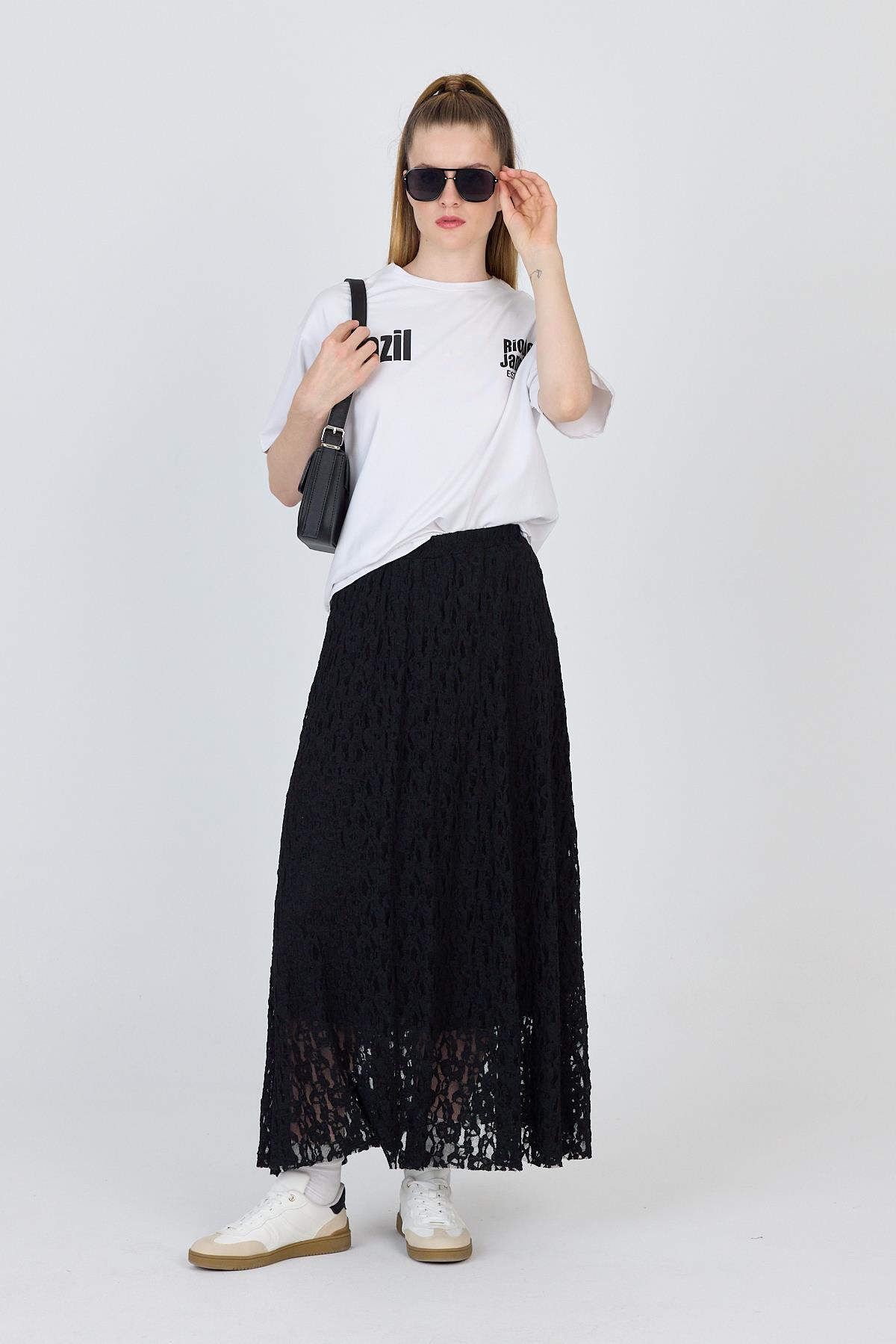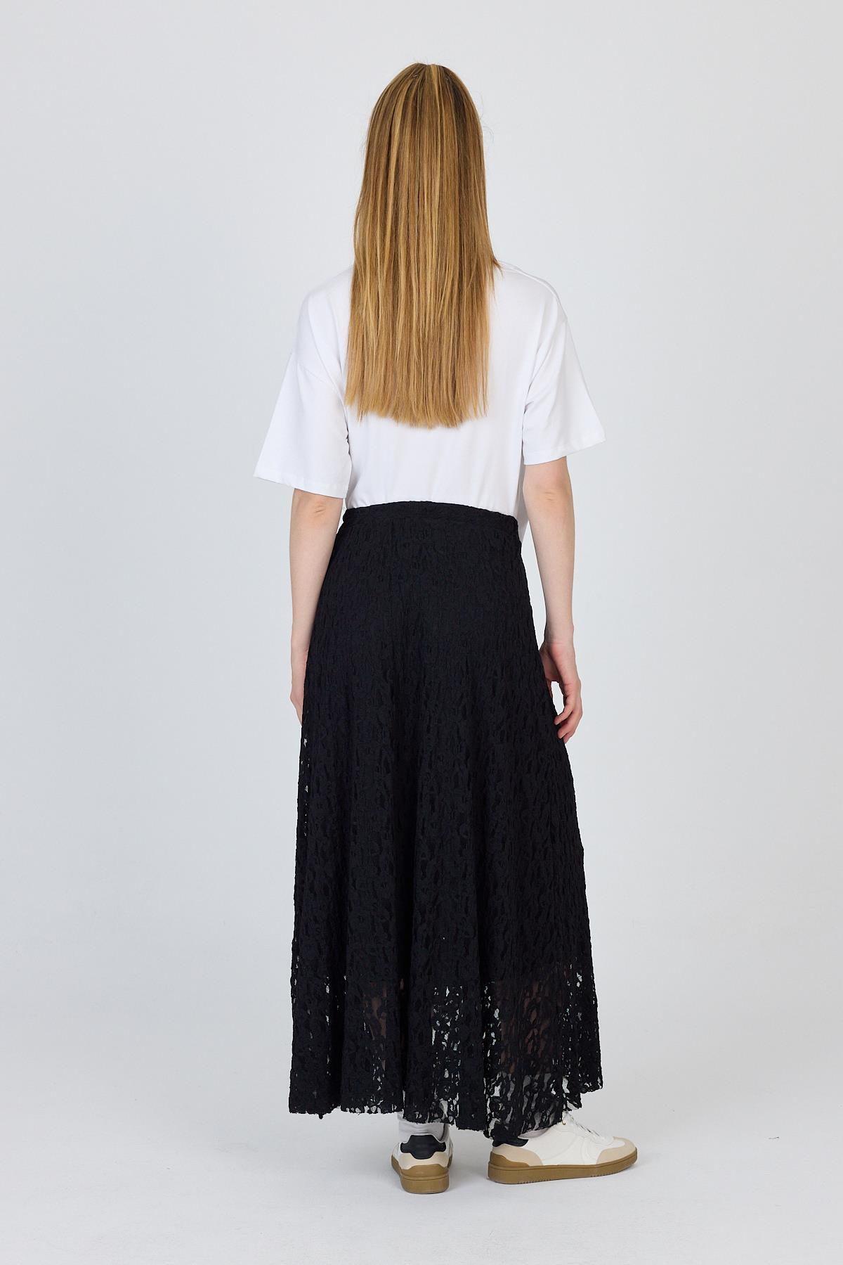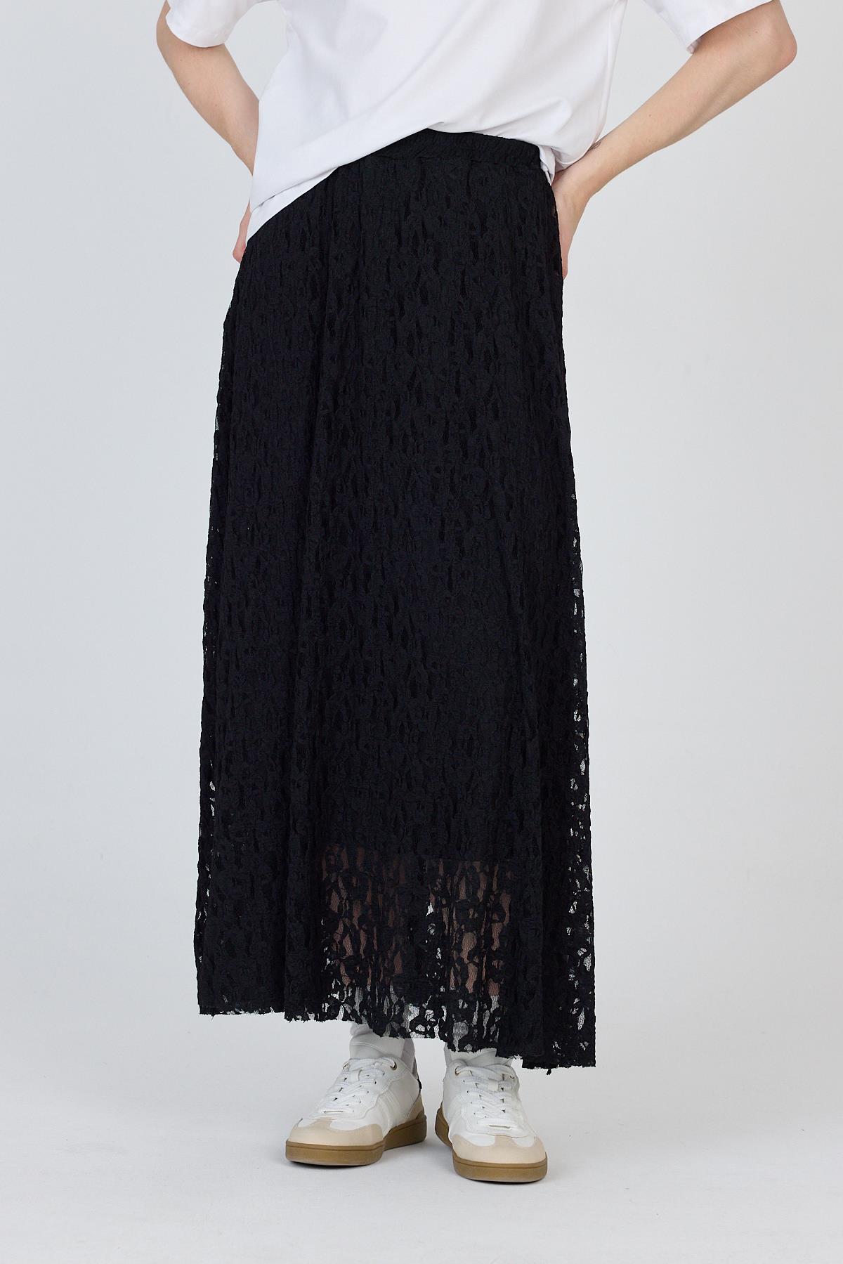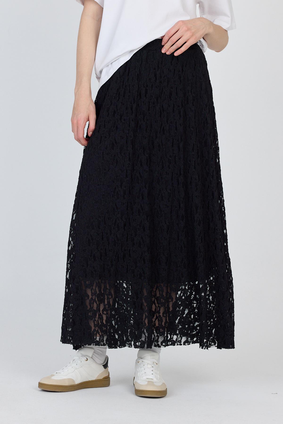Siyah Dantel Detaylı Astarlı Etek 2582
