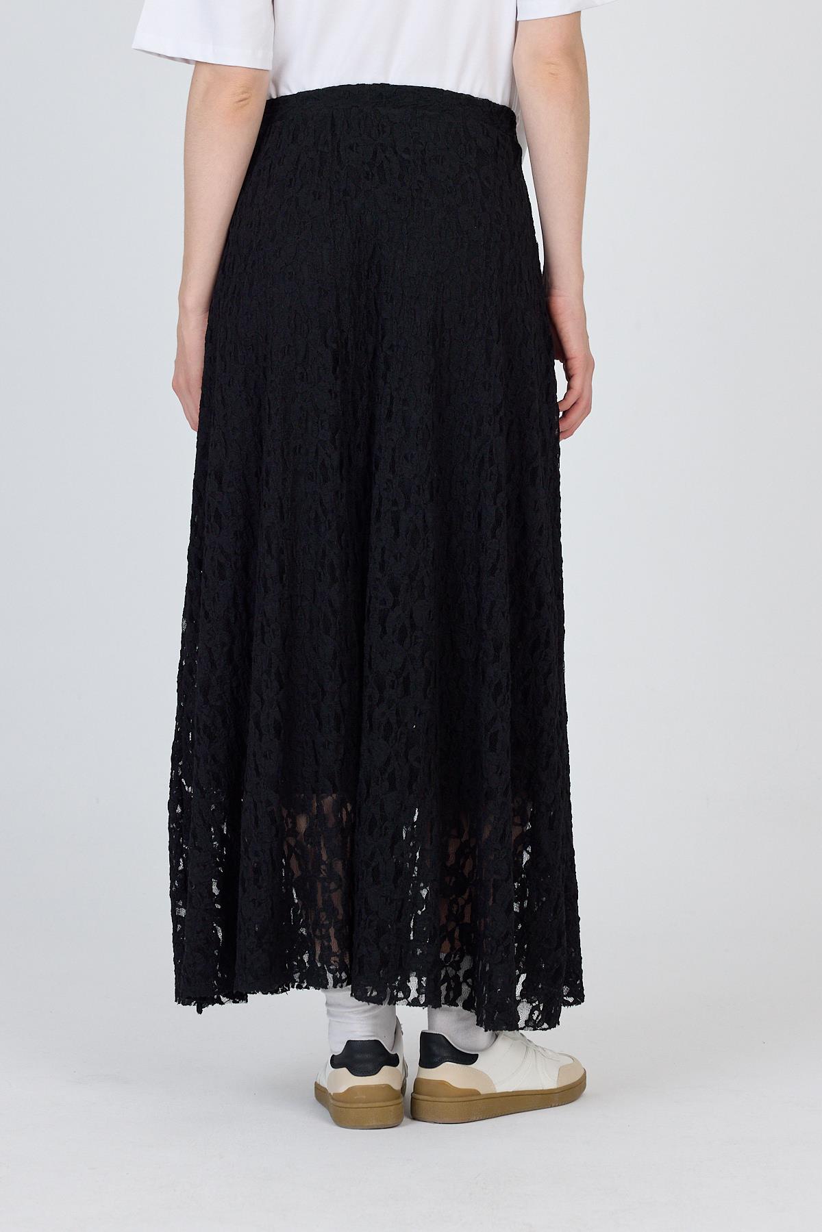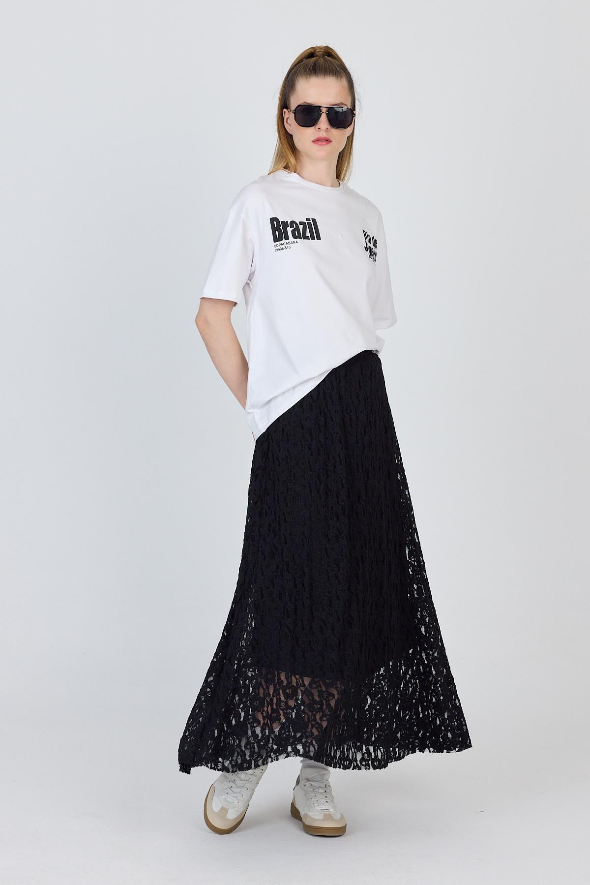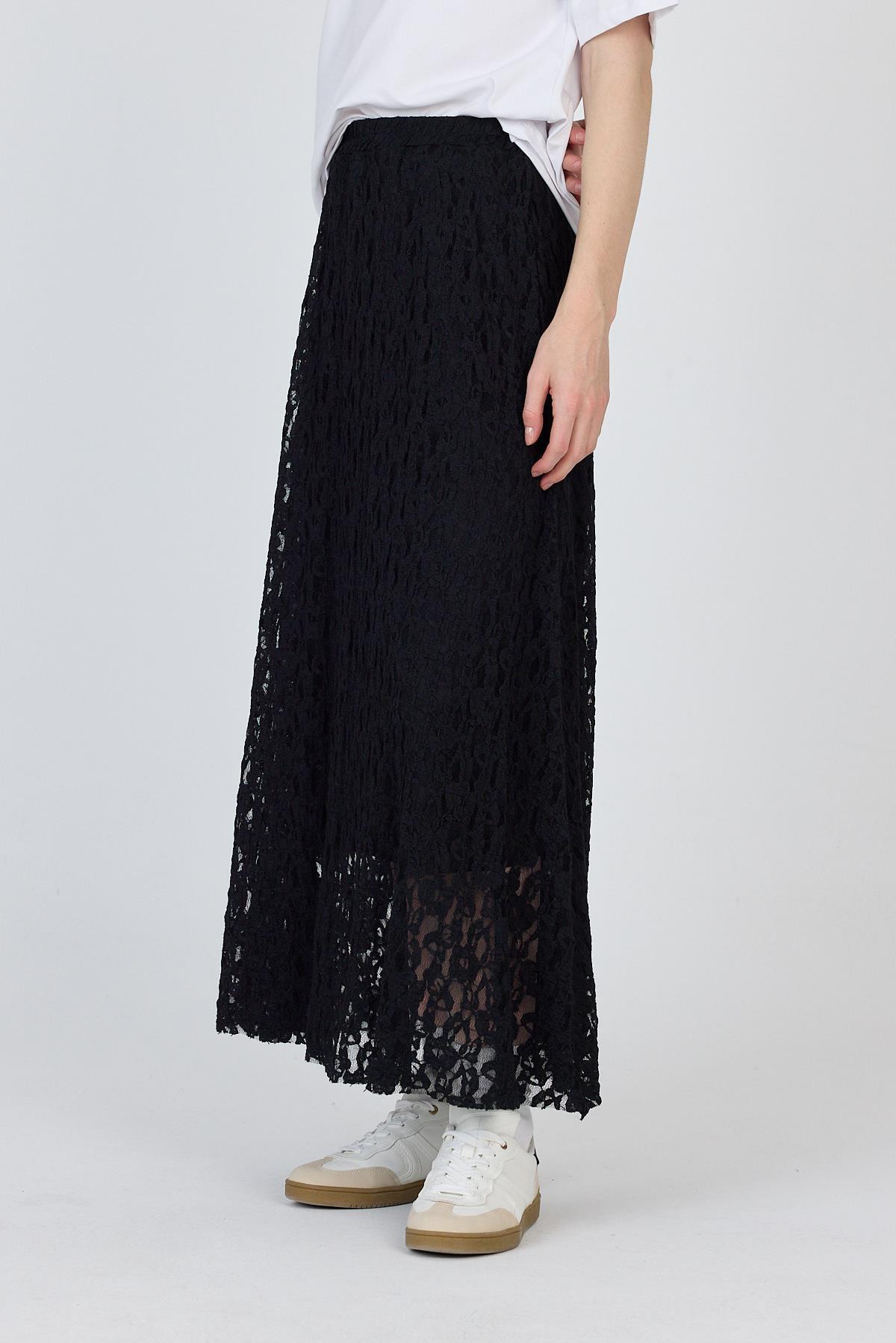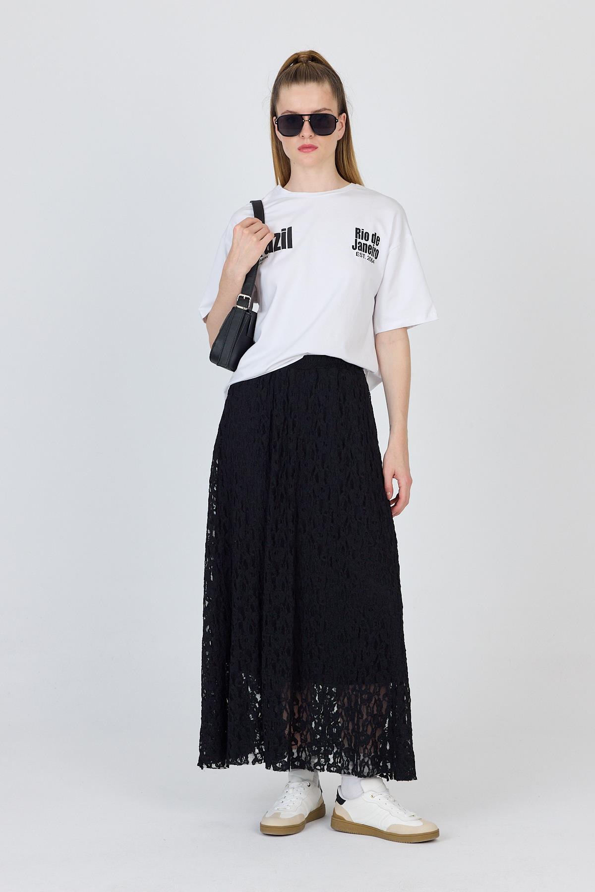 Siyah Dantel Detaylı Astarlı Etek 2582