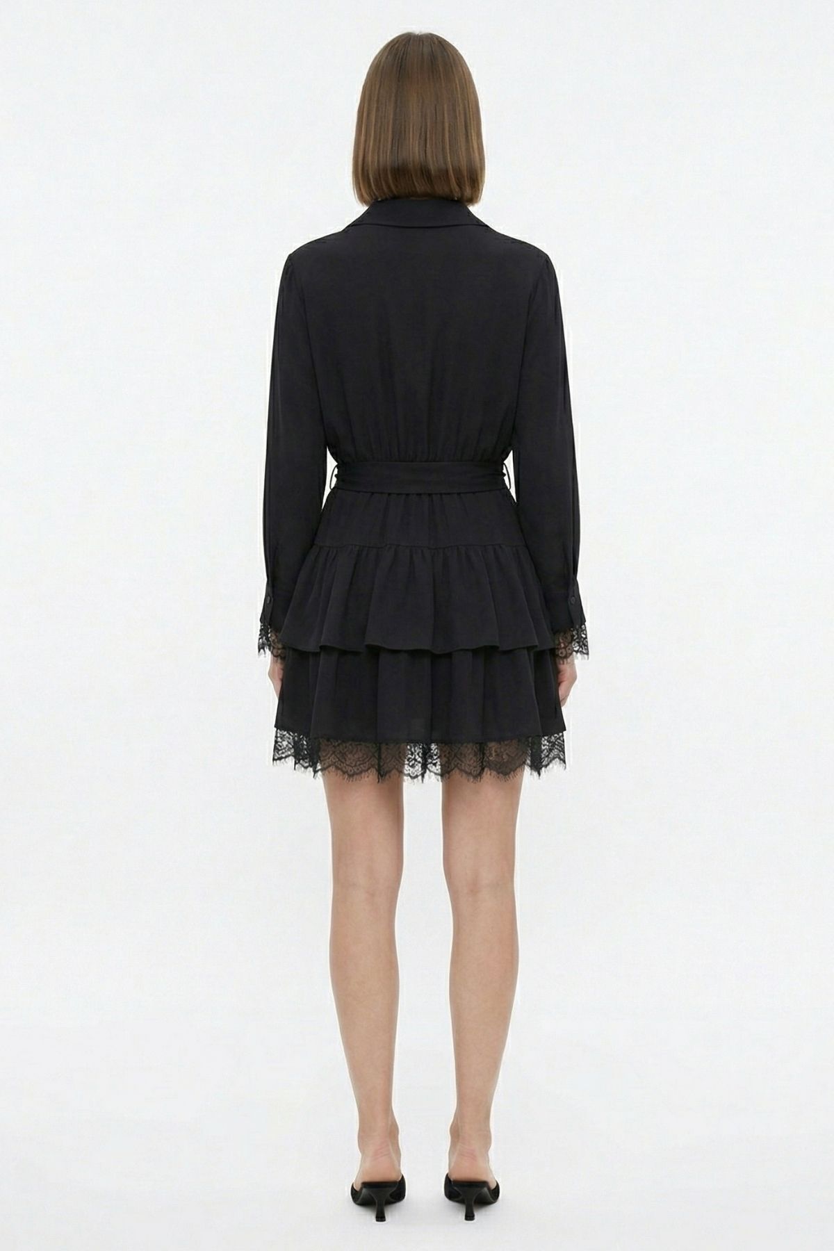 Siyah Dantelli Kemer Detay Elbise 35518