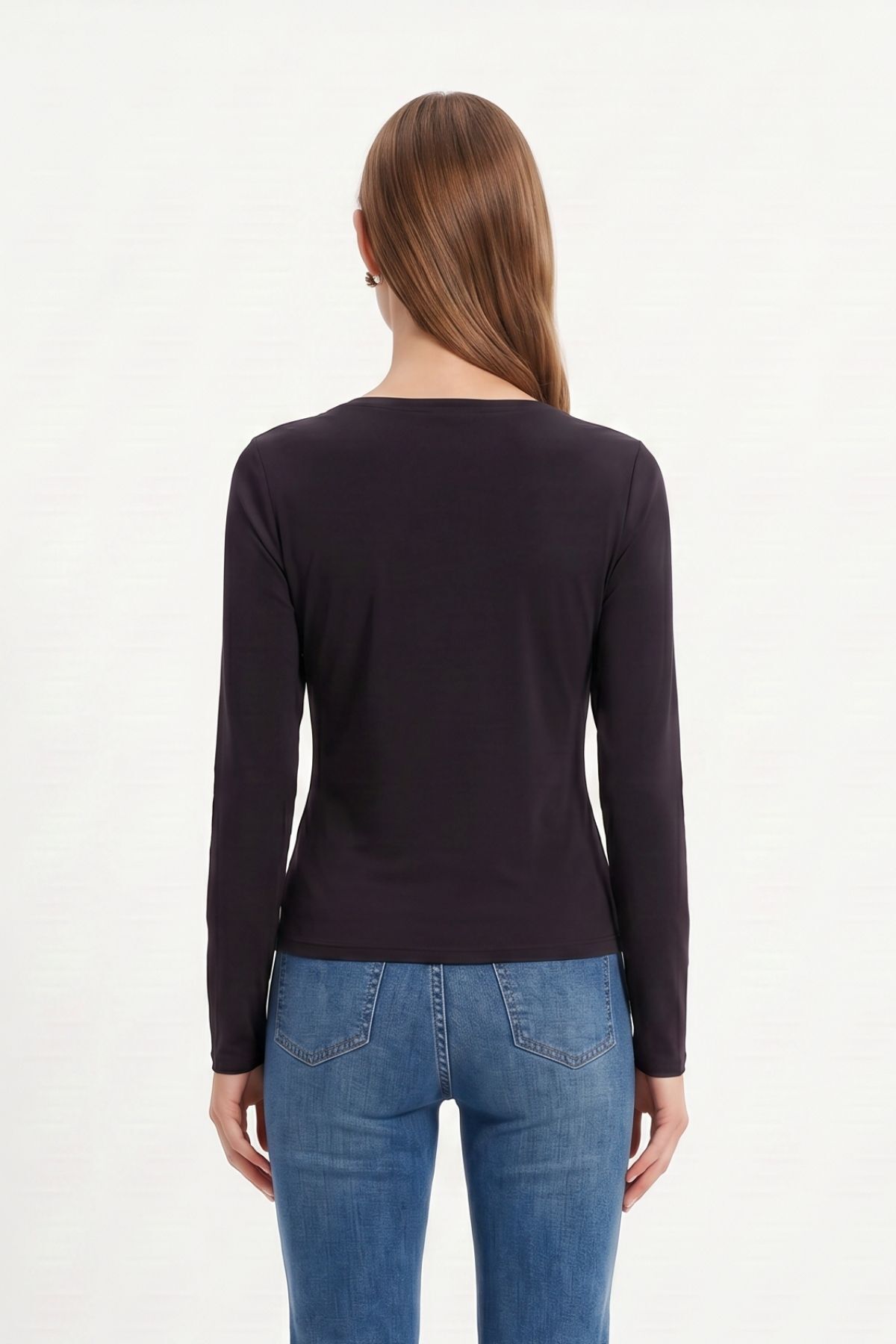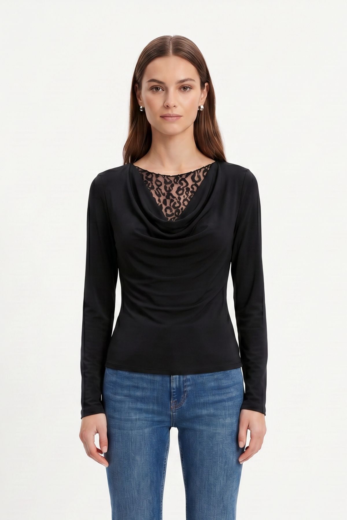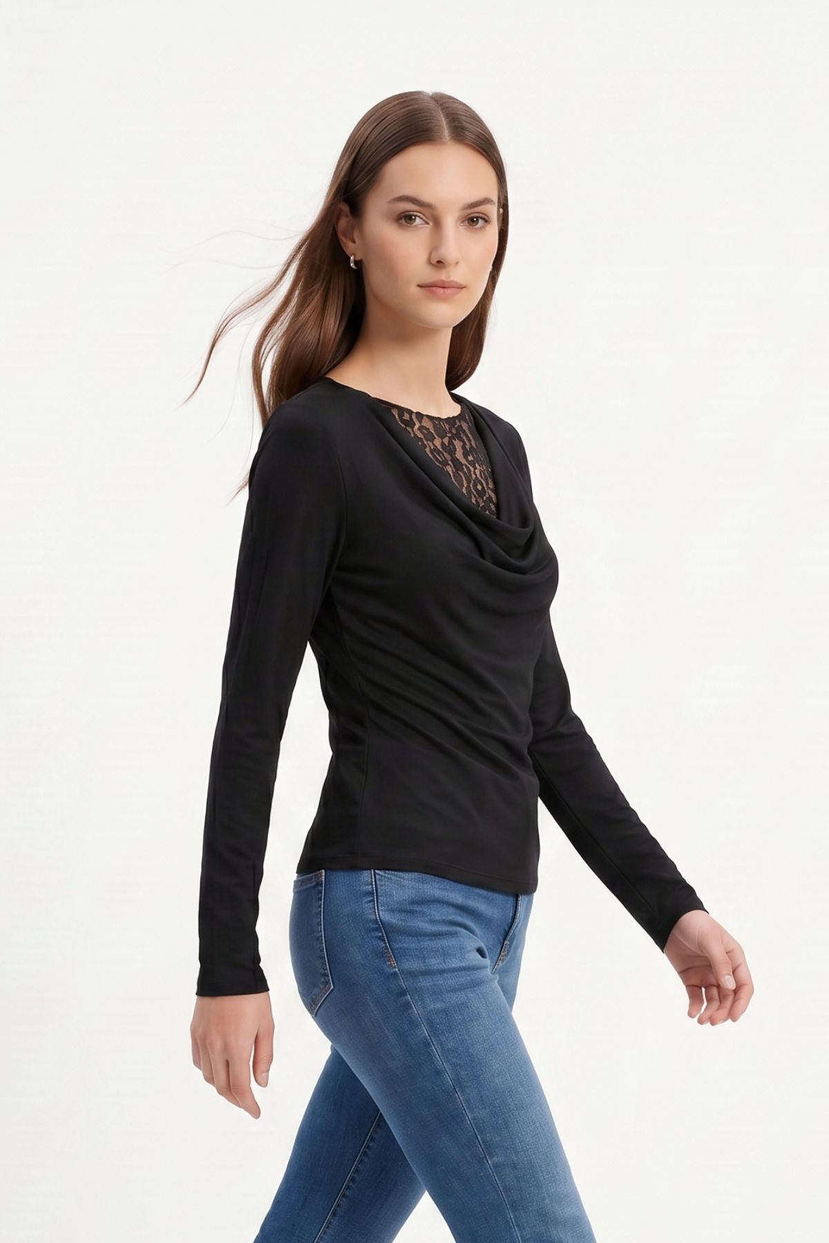 Siyah Degaje Yaka Dantel Detay Bluz 0469