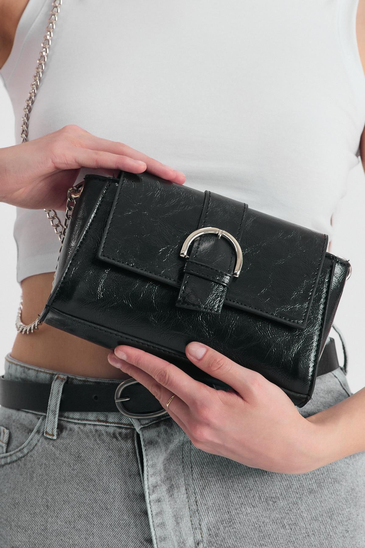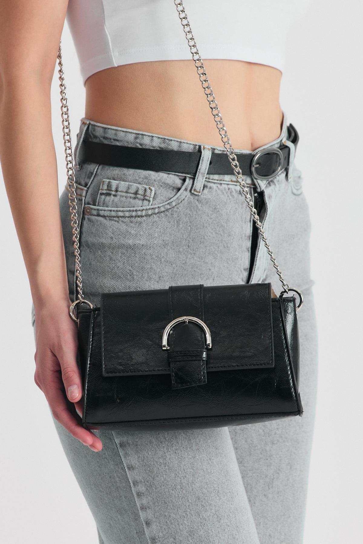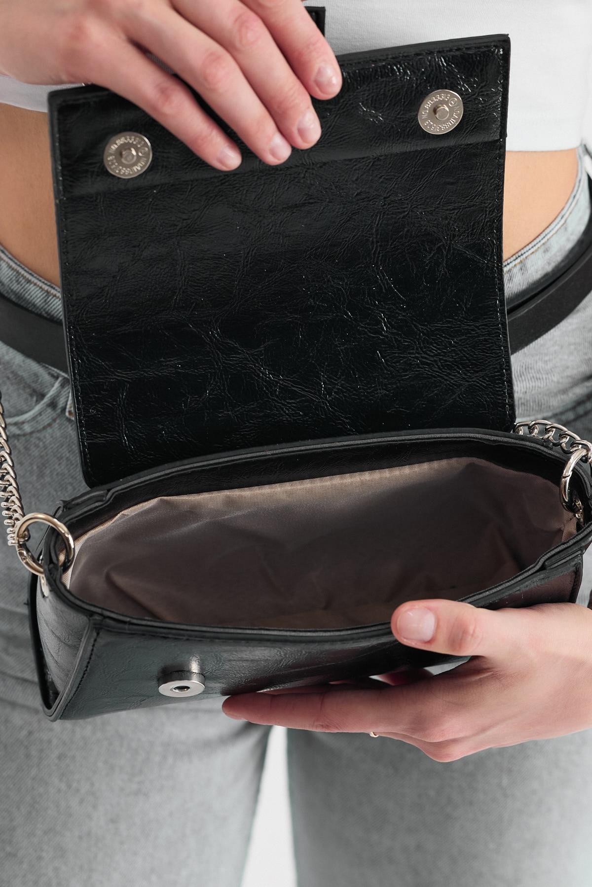 Siyah Deri Görünümlü Omuz Çantası 3023