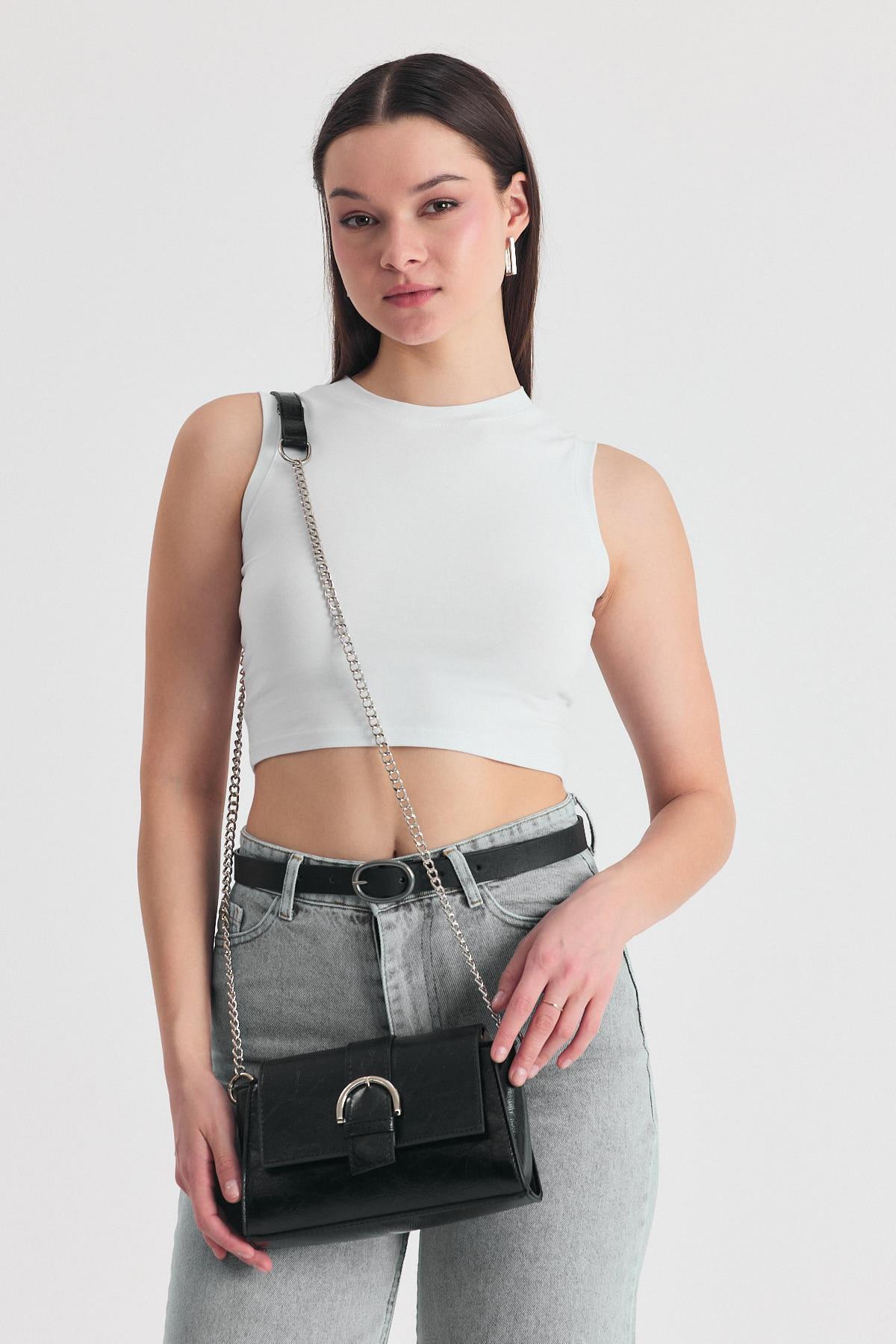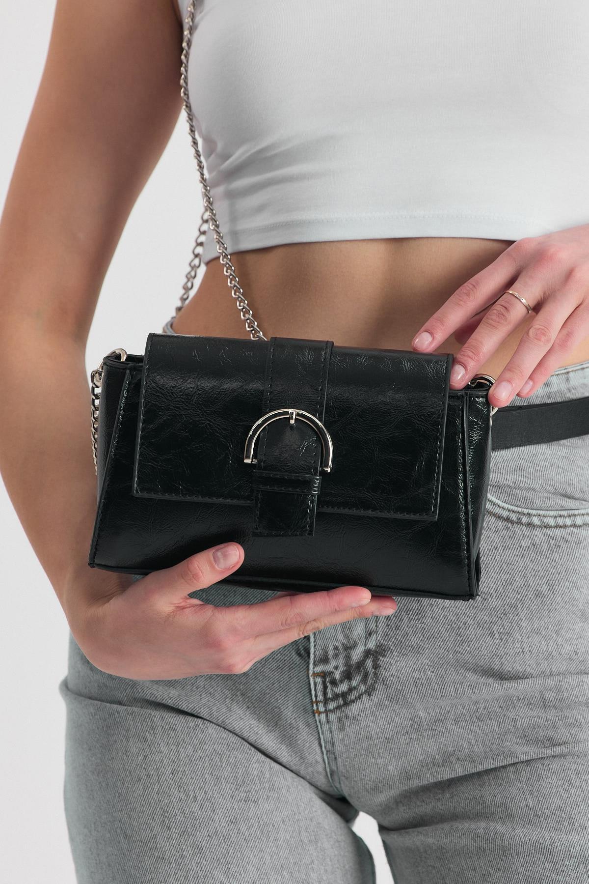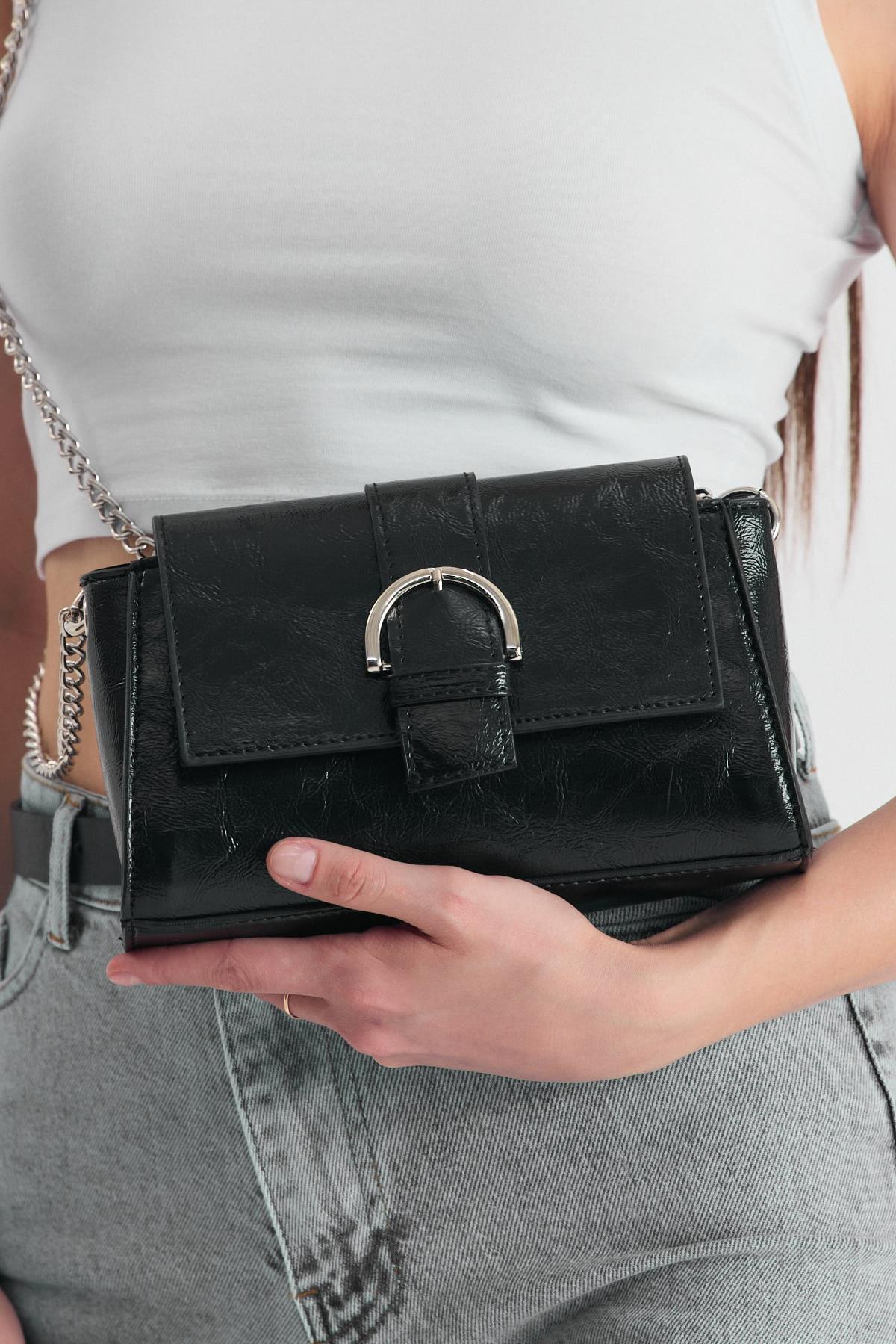 Siyah Deri Görünümlü Omuz Çantası 3023