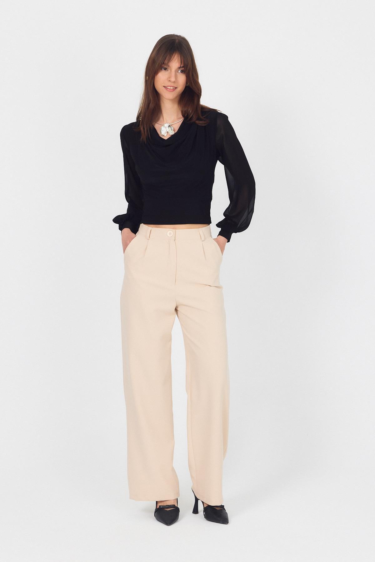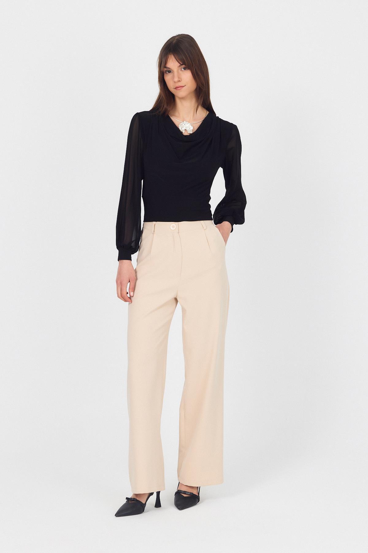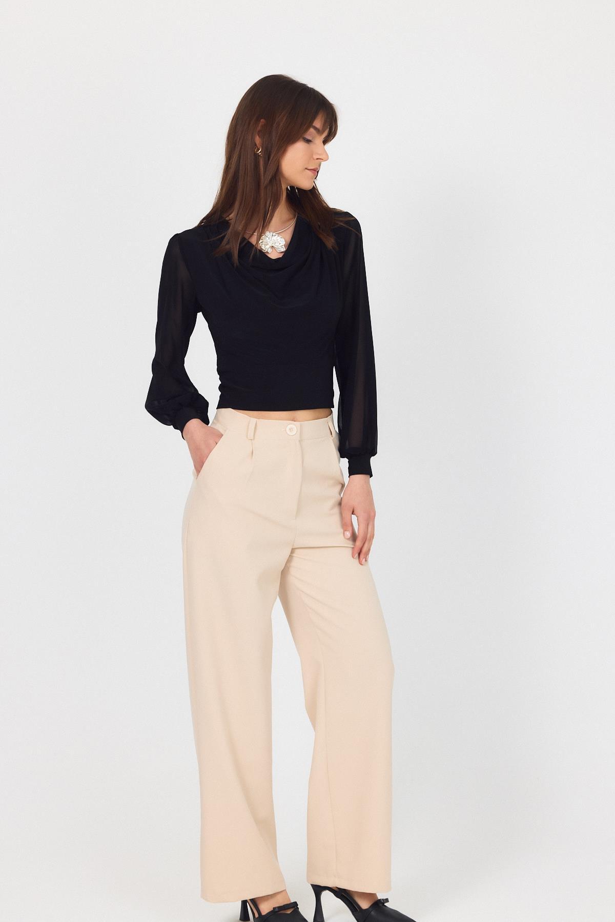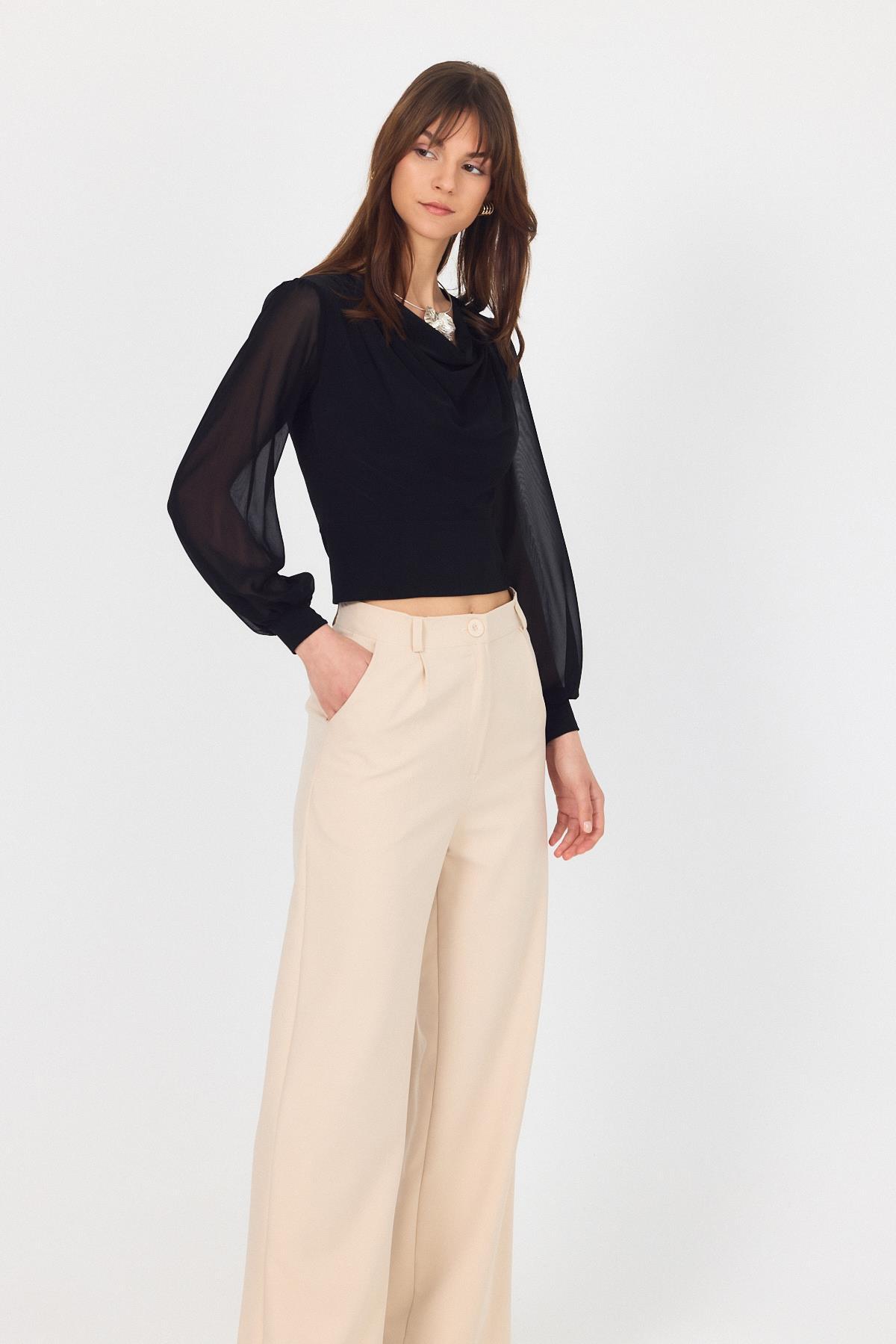 Siyah Drapeli Tül Kol Detaylı Bluz 9474
