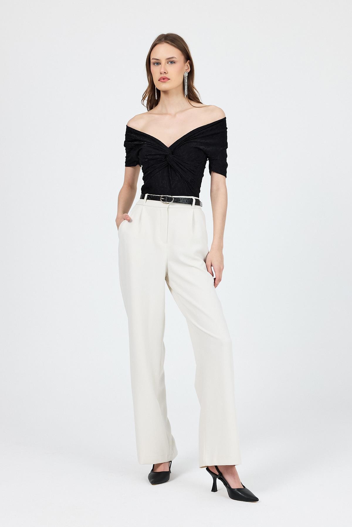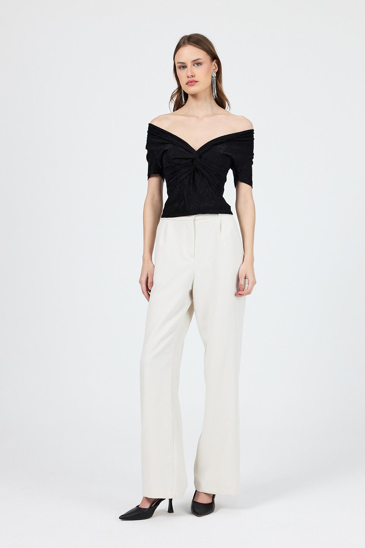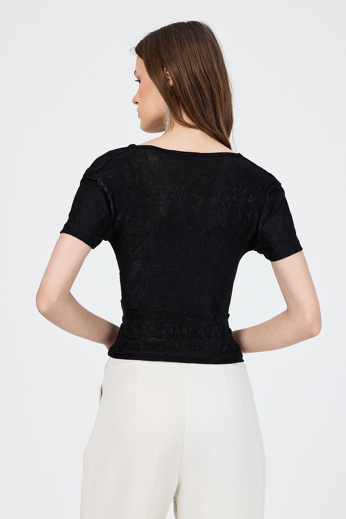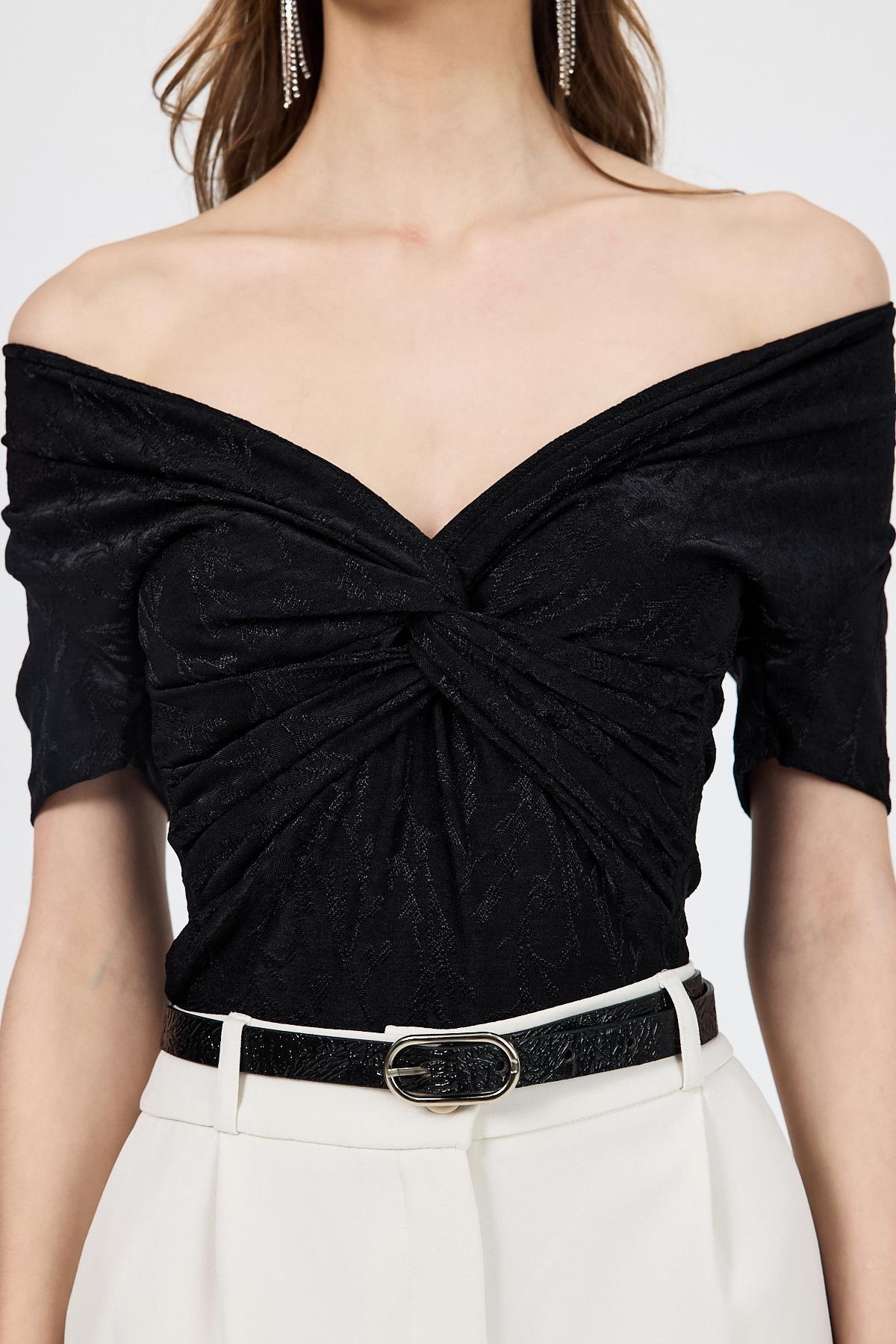Siyah Düşük Omuz Büzgü Detaylı Bluz 13325