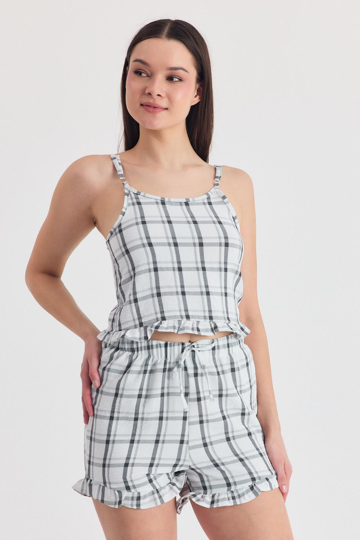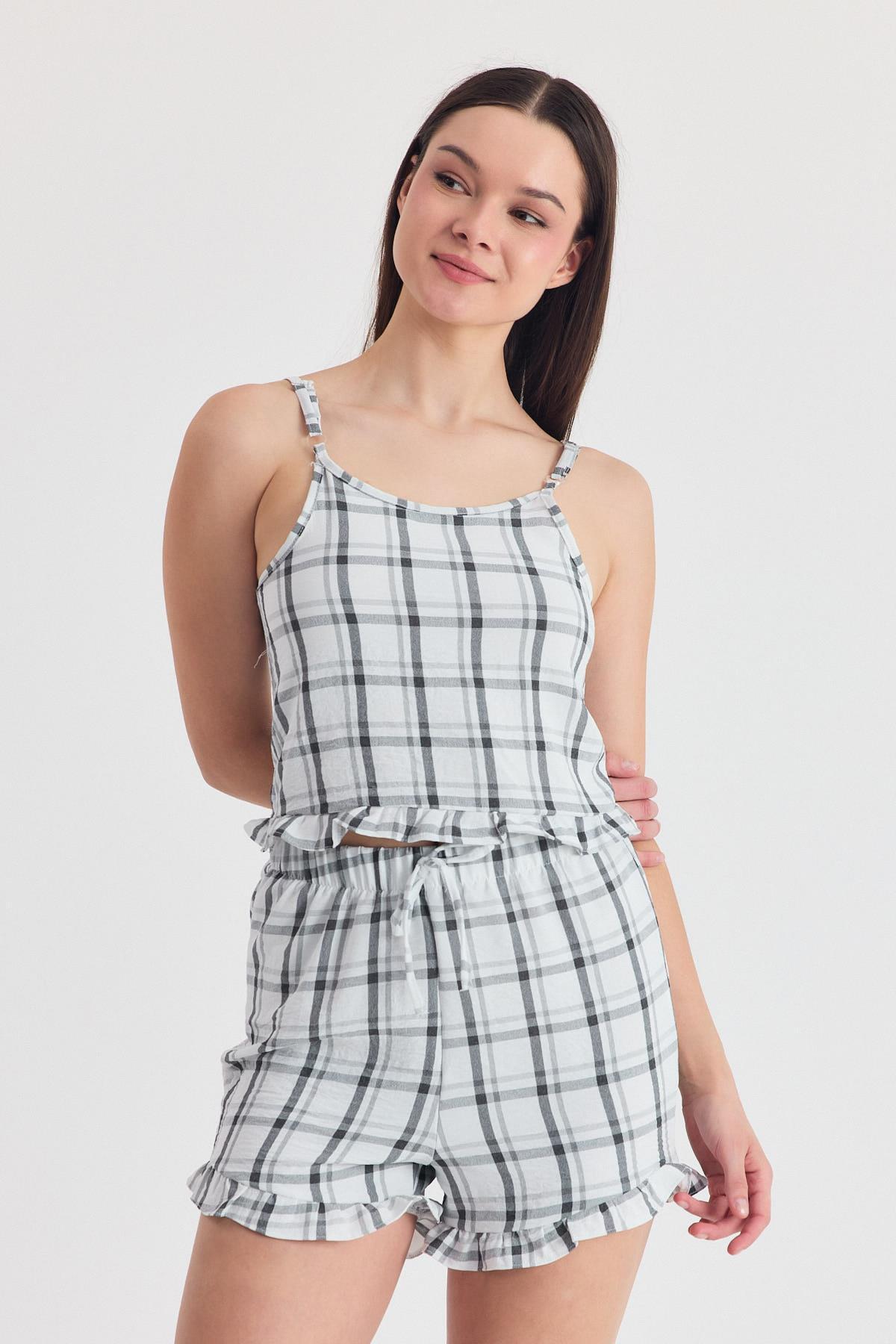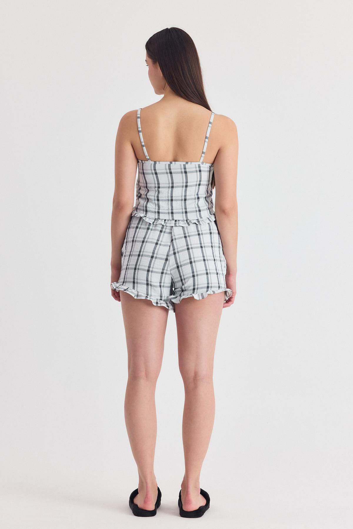 Siyah Ekose Desenli Fırfır Detaylı Şortlu Takım 4452