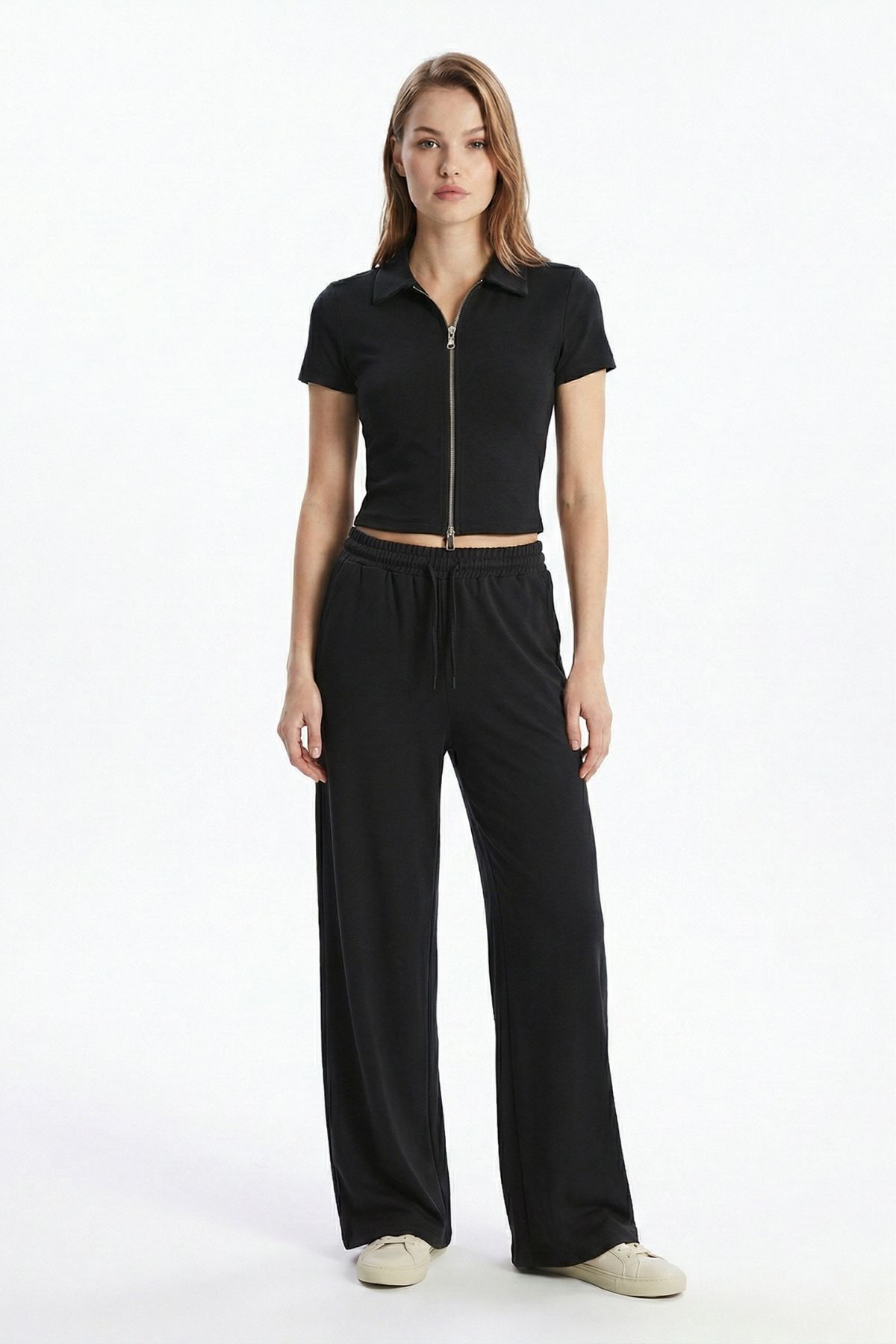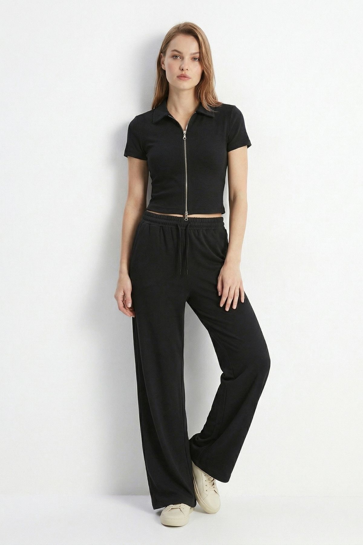 Siyah Fermuarlı Gömlek Yaka Eşofman Takım 0426