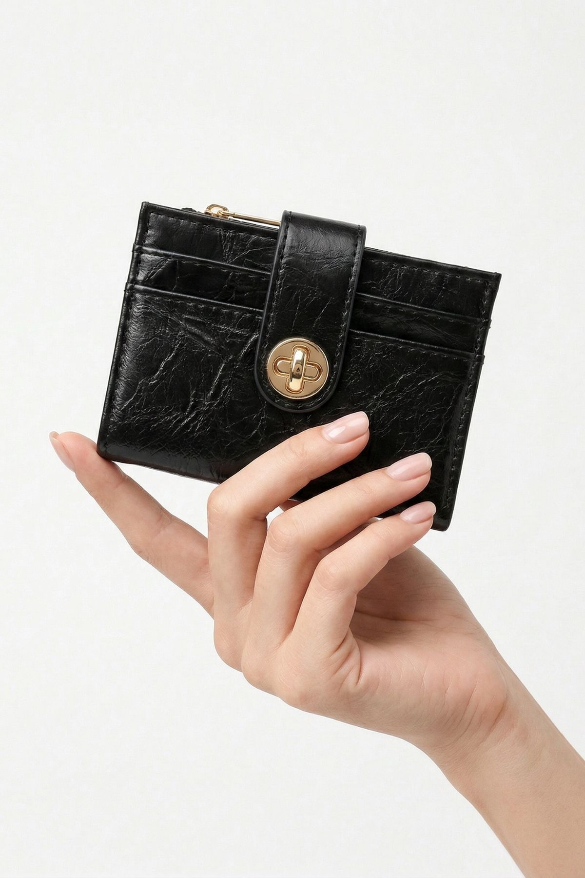 Siyah Fermuarlı Tokalı Kapama Cüzdan 211