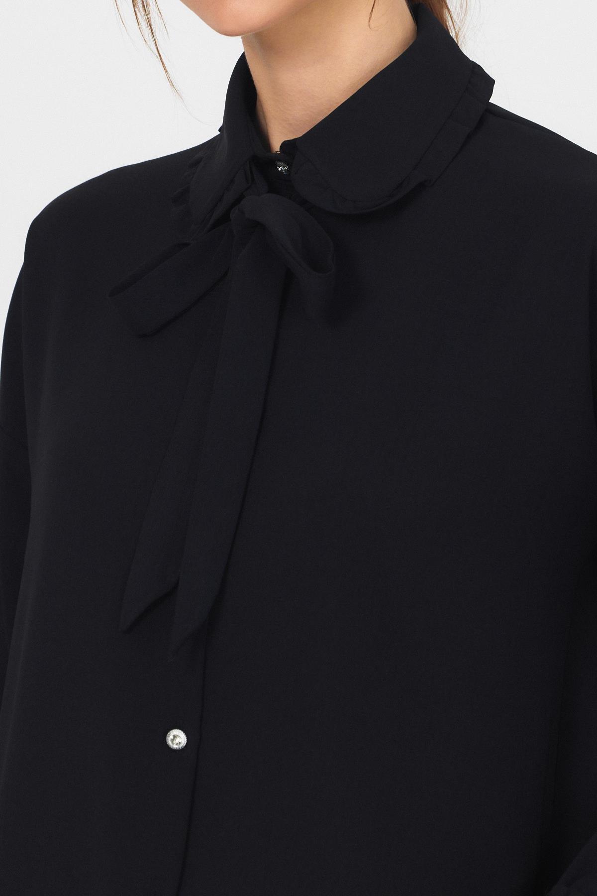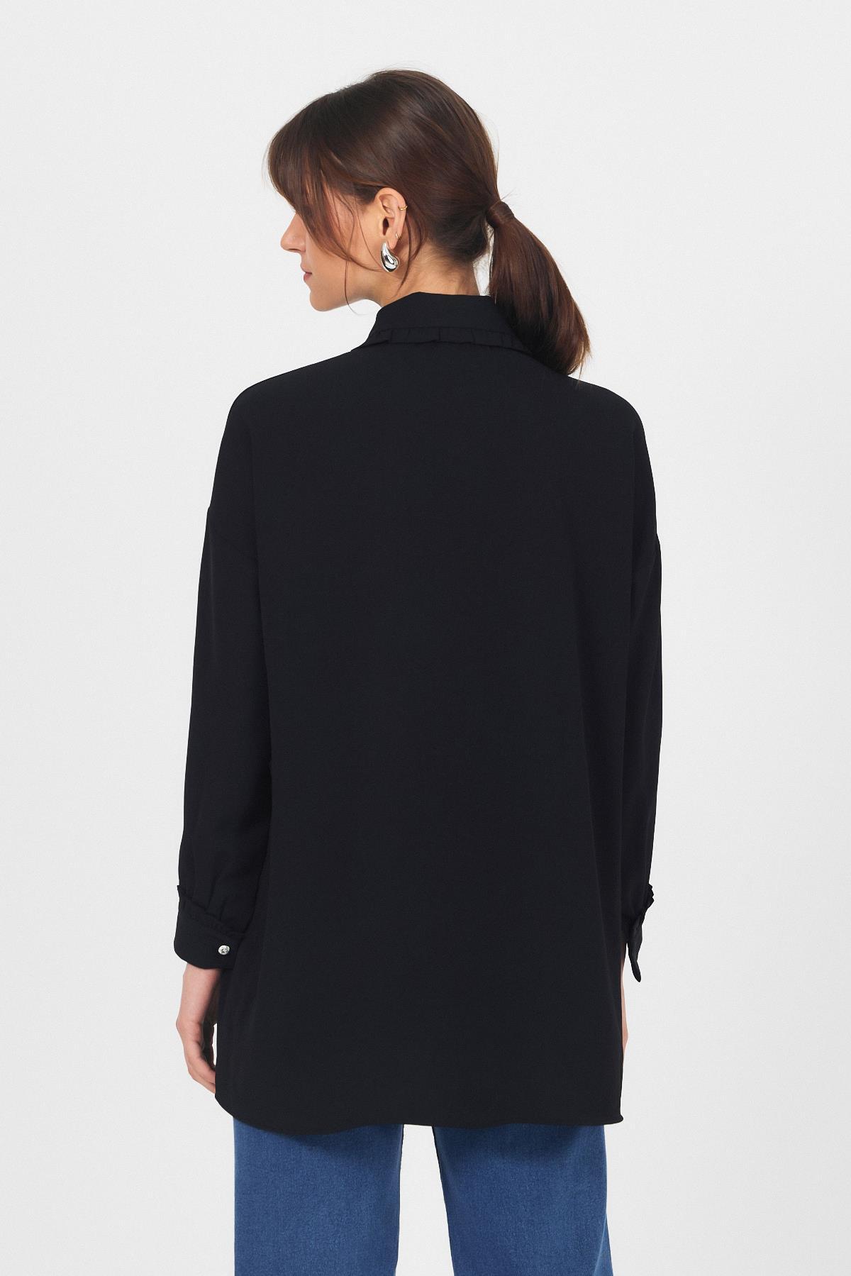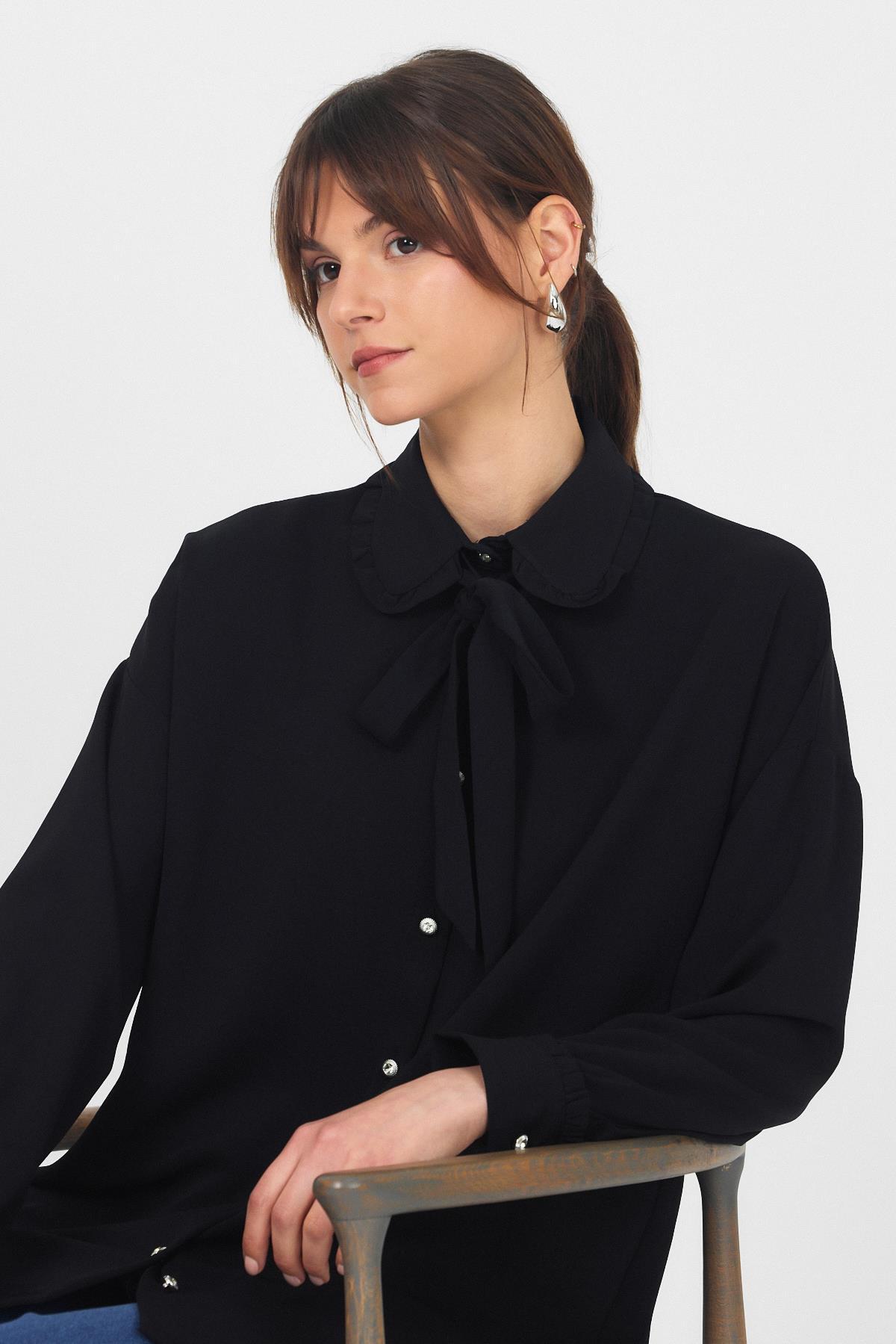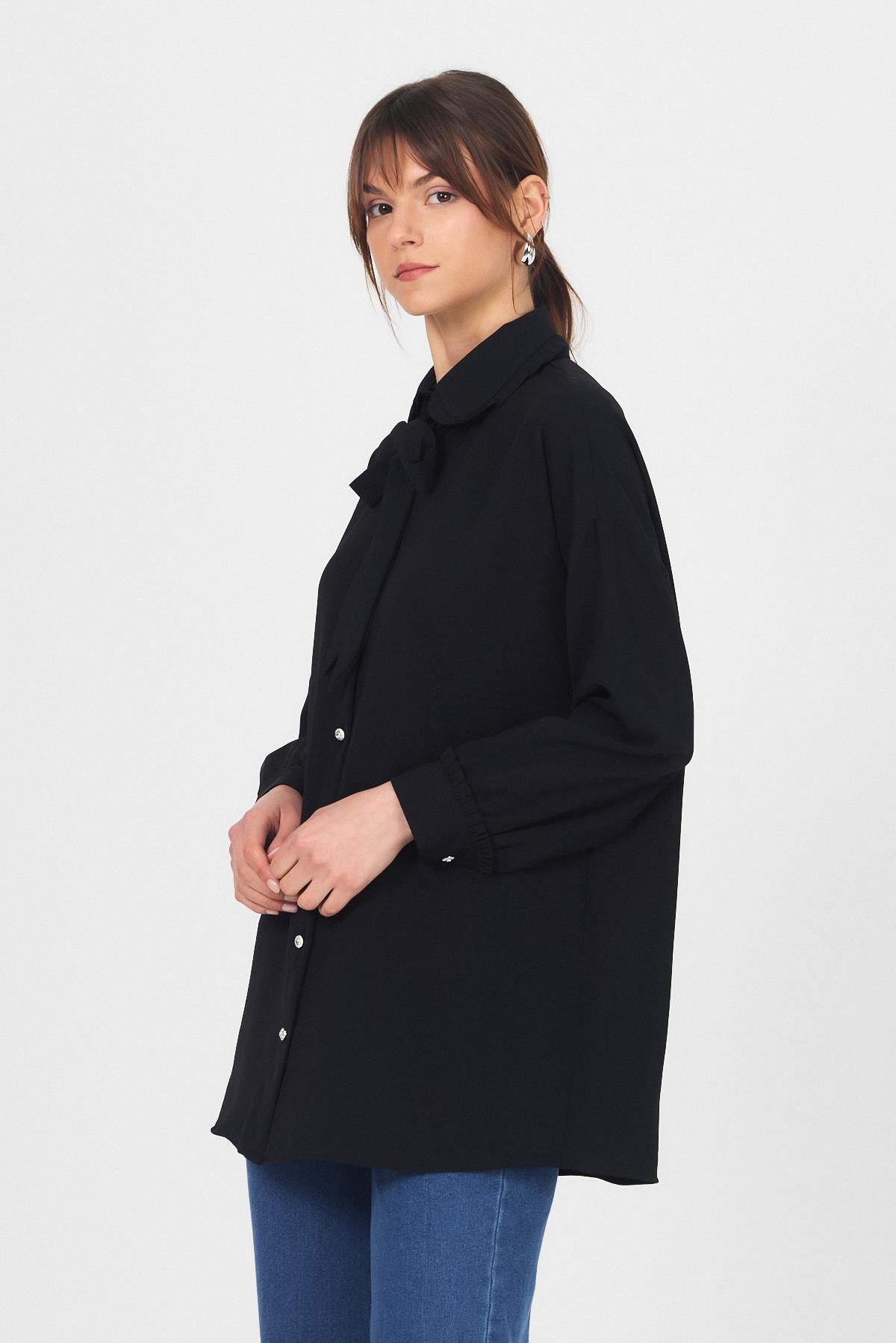 Siyah Fırfır Yaka Detaylı Bağlamalı Tunik 4586A
